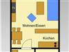 1 Wohn- und 1 Schlafraum, vollausgestattete Küche mit Küchenzeile.