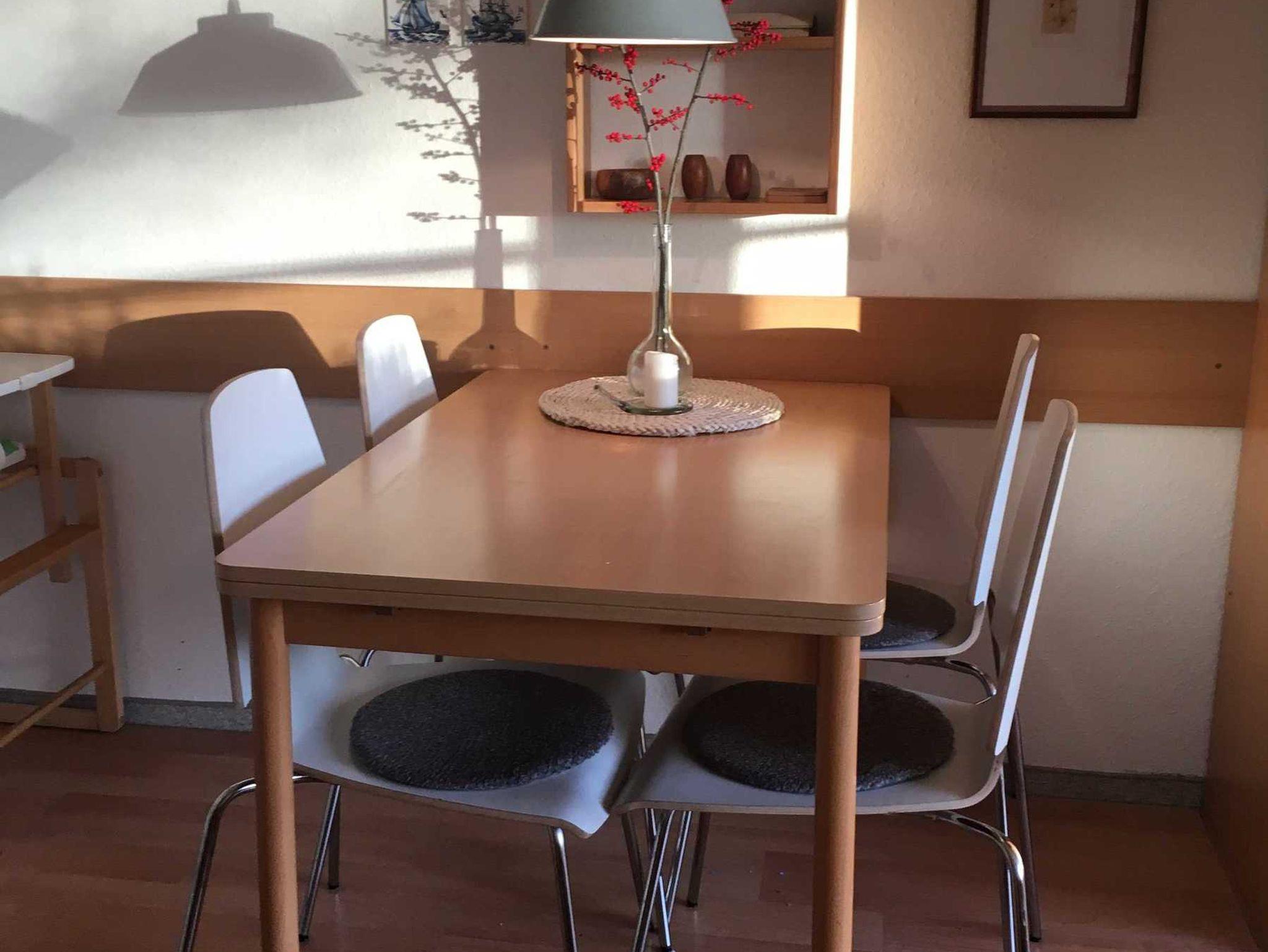 Für kleine Kinder sind ein Baby-Hochstuhl sowie ein Kinderessstuhl (ab 4 Jahre) vorhanden. Das Schlafzimmer verfügt über ein Doppel- und ein Etagenbett sowie geräumige Kleiderschränke; Platz für ein Baby-Reisebett ist vorhanden. Angrenzend zum Schlafbereich befindet sich ein Duschbad mit WC. Wäschepakete (Bettwäsche, Handtücher, Duschvorleger, Geschirrhandtücher) können für 14 EUR/Person auf Wunsch dazu gebucht werden.