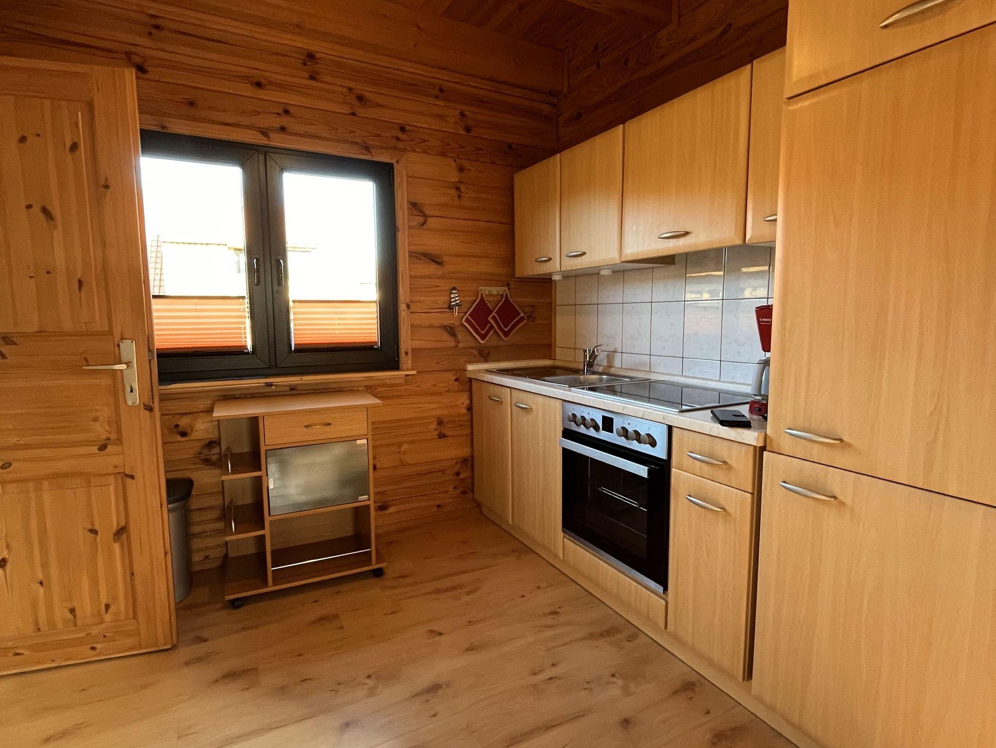 Holz-Ferienhaus Mechelsdorf nahe Ostseebad Kühlungsborn, 3-Raum-Holzhaus mit Gartenterrasse (70m², max 4 Personen)