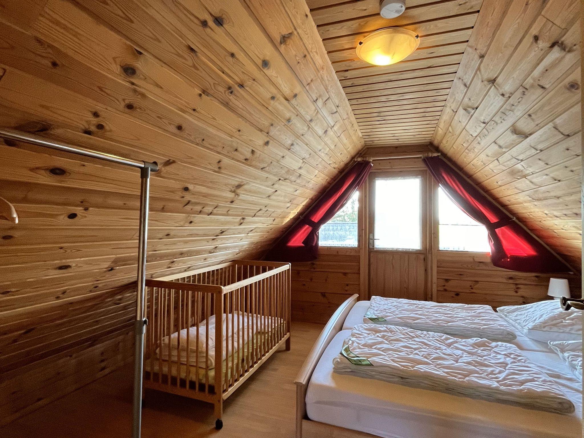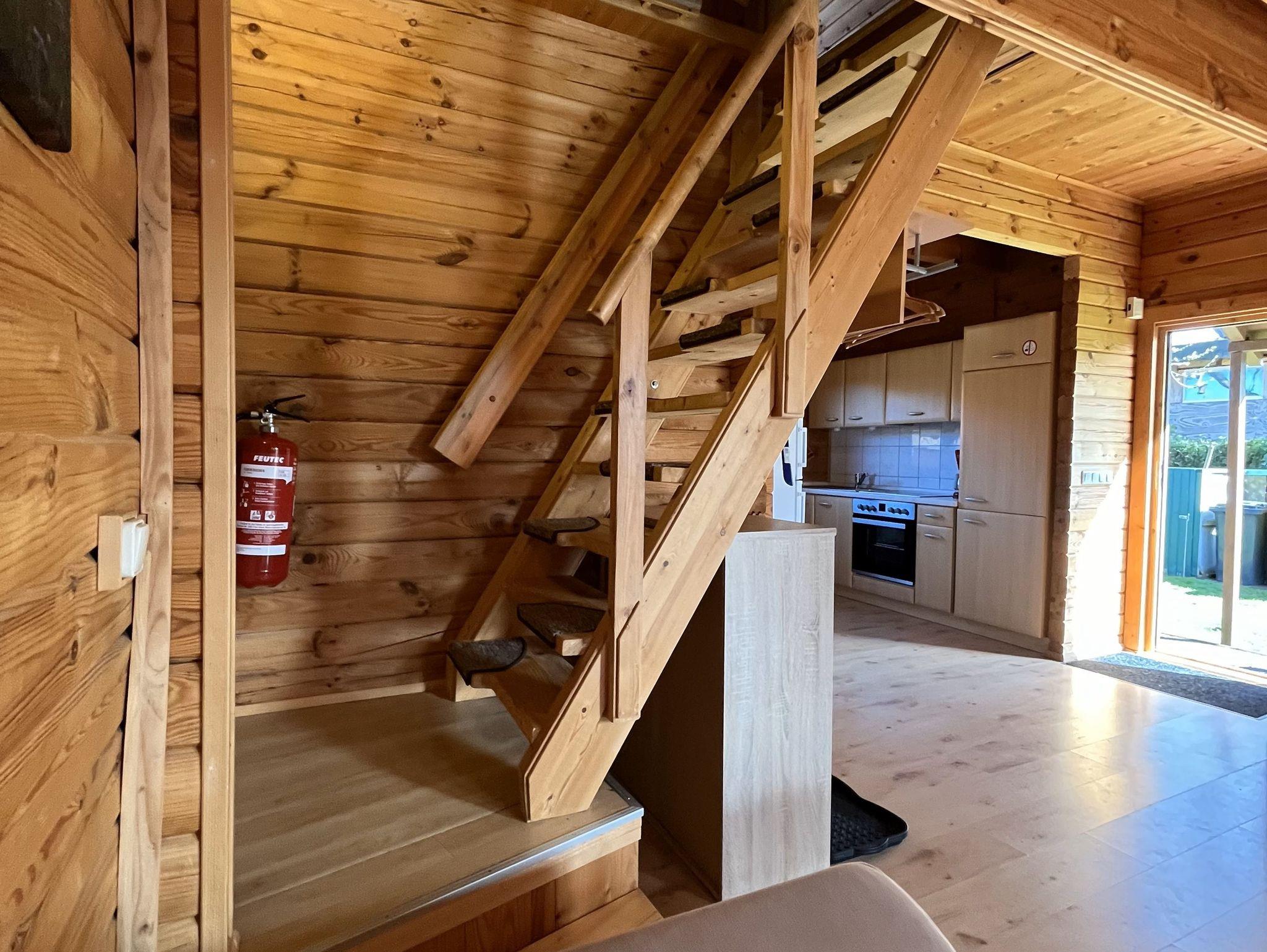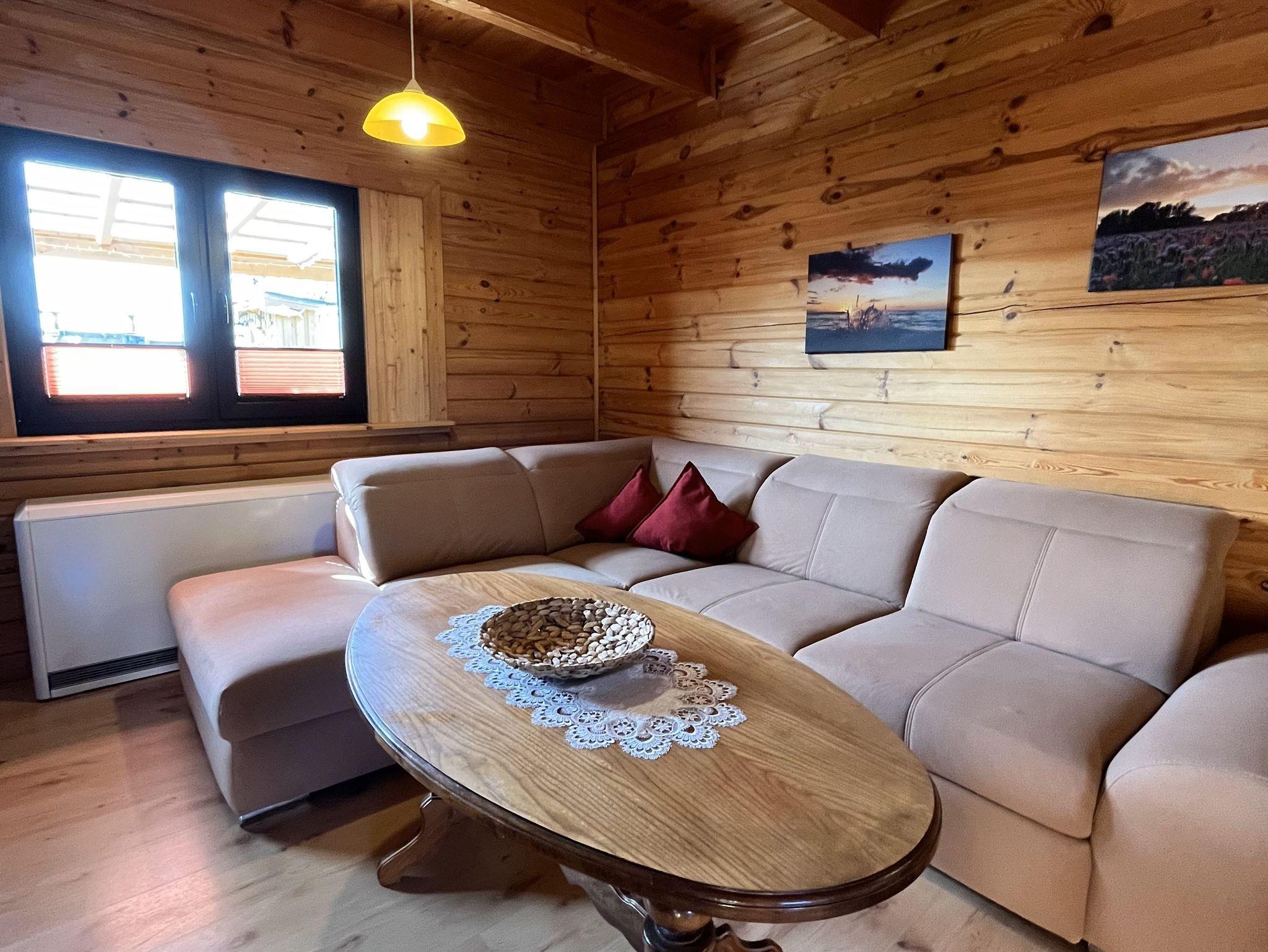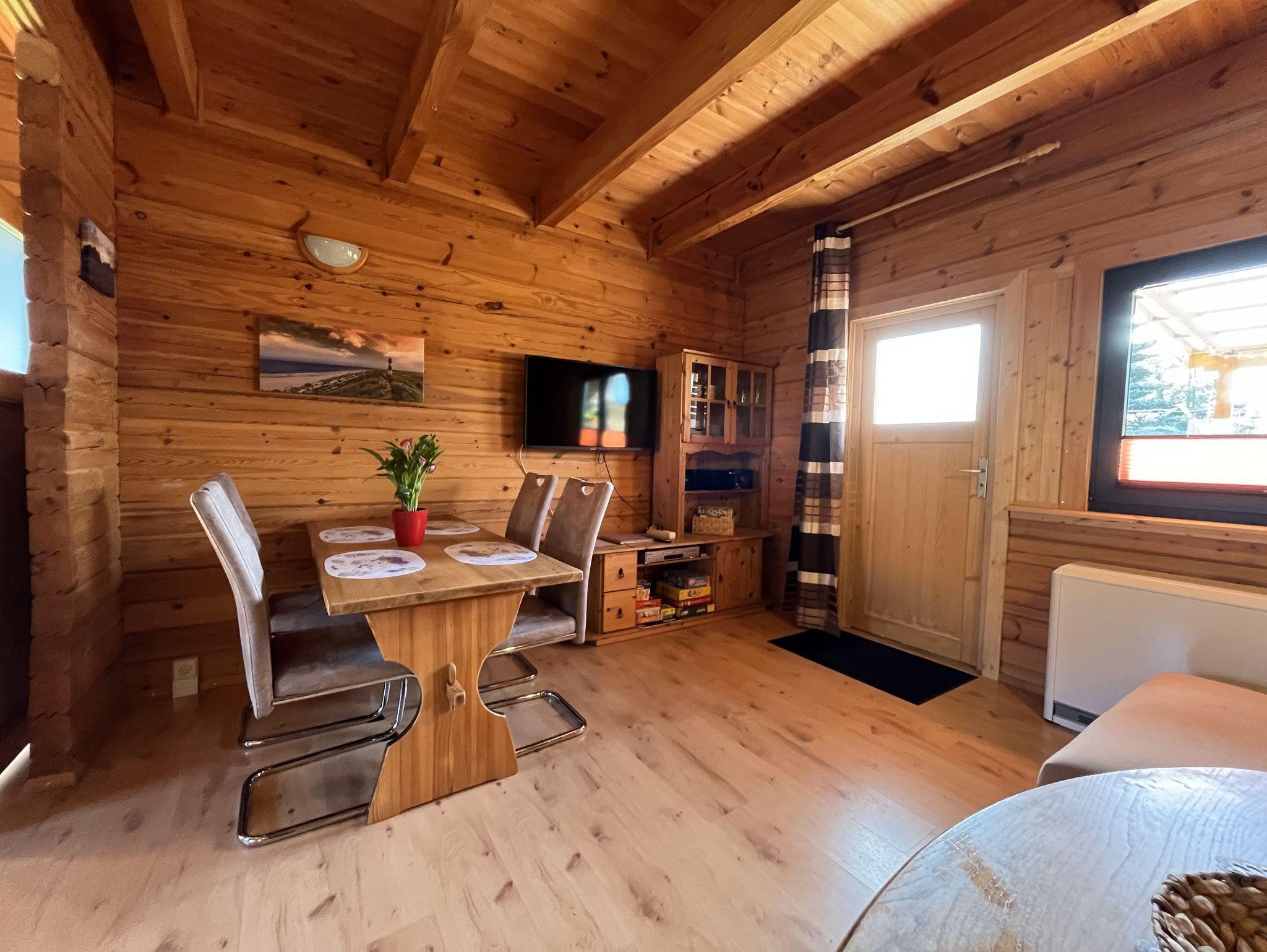 3-Raum-Holz-Ferienhaus (70m²; max. 4 Pers. + 1 Baby) mit Gartengrundstück.