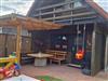 • Am Haus: Parkplatz, Fahrradunterstellmöglichkeit, überdachte Terrasse mit Sitzmöbeln und Grill.