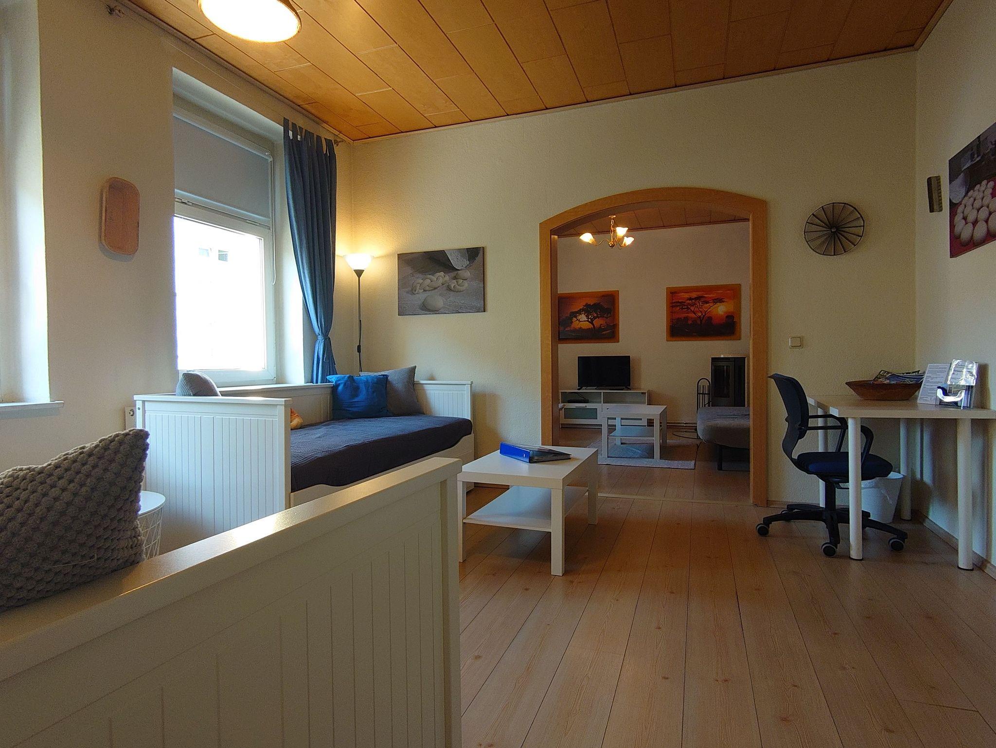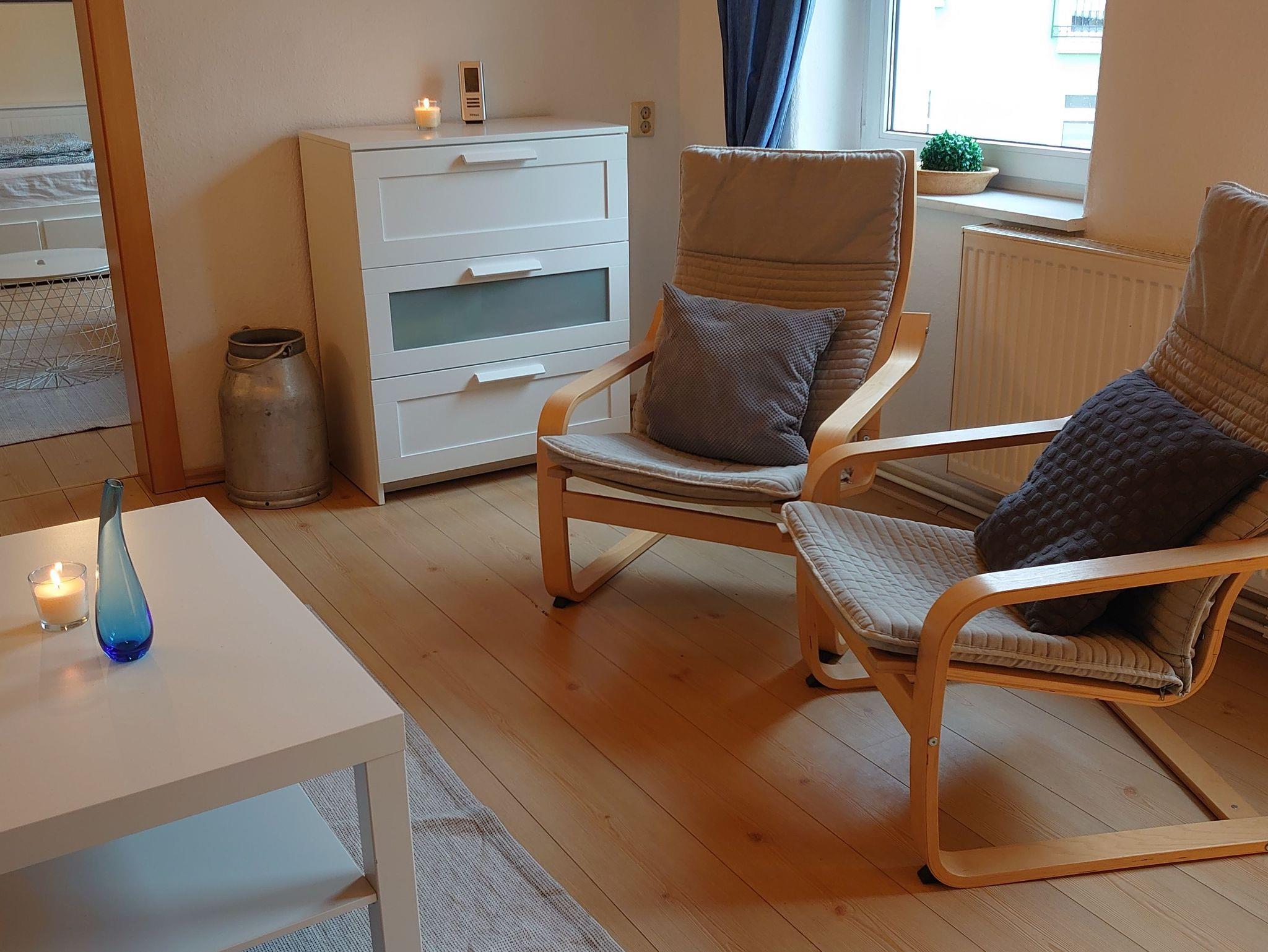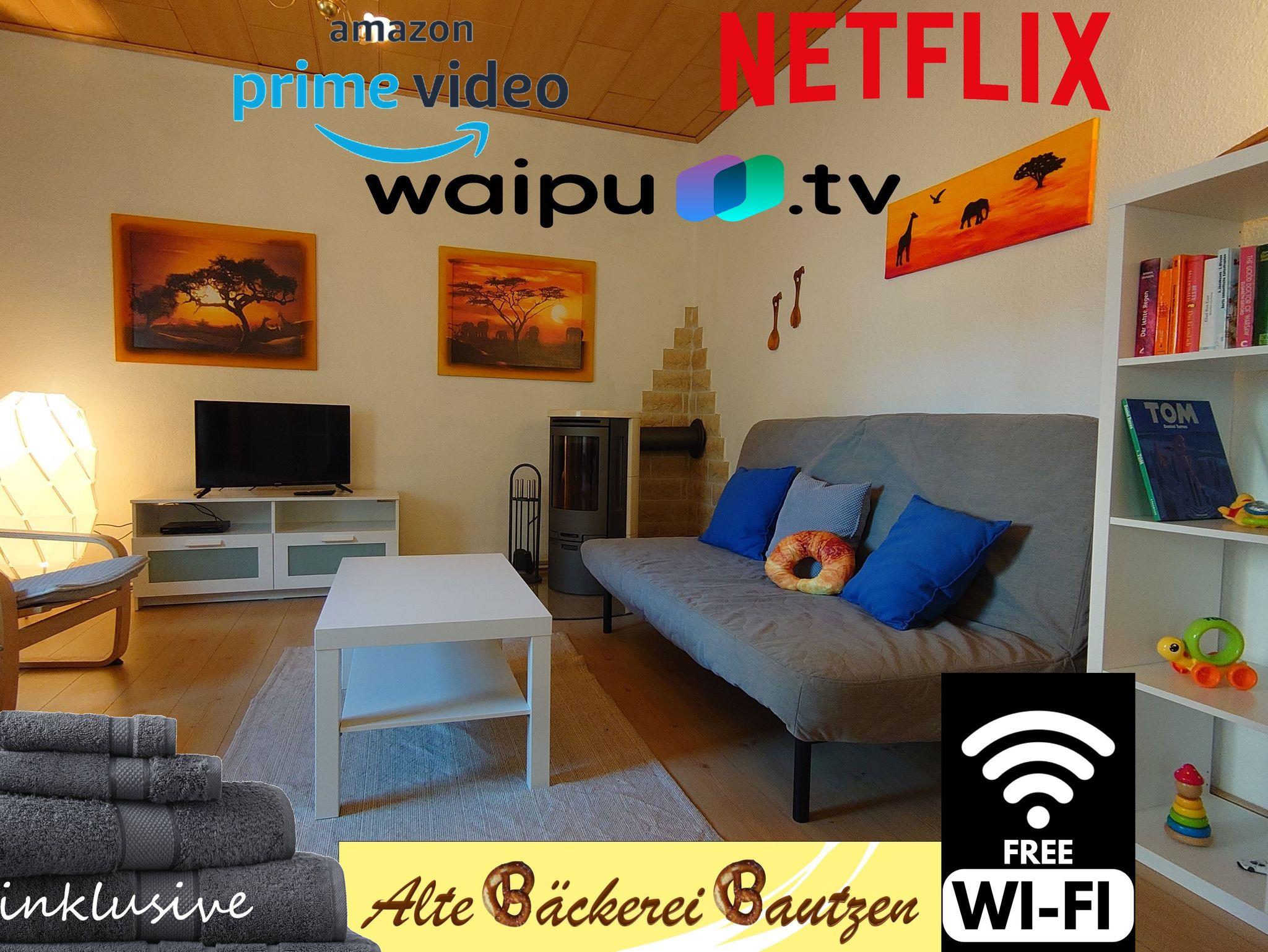 In der unserer modernen Wohnung gibt es eine Küche mit üblichen Geräten zur Selbstversorgung (Supermarkt gegenüber), ein Bad mit Duschwanne, Wohnzimmer mit TV mit Internet TV Amazon Prime & Radio, Schlafsofa und separates (Eltern-)Schlafzimmer, zweites Schlafzimmer mit 2 Funktionsbetten (Einzel/Doppelbetten). Im Wohnzimmer ist ein Holz-Kamin, für gemütliche Stunden.