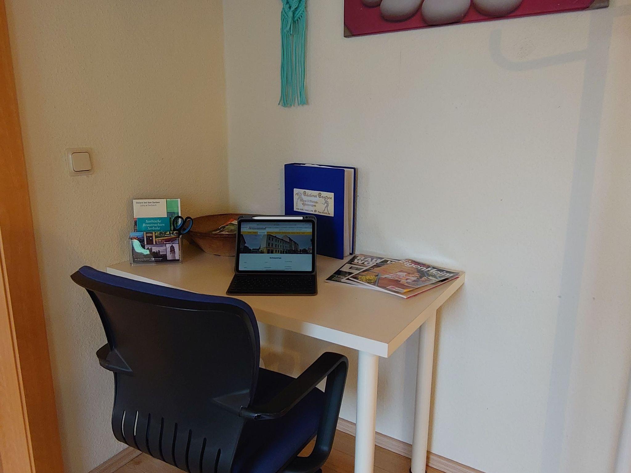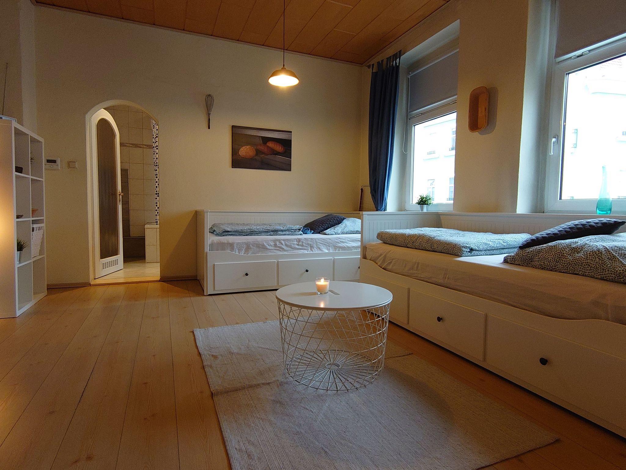 • zweites Wohnzimmer mit Arbeitsplatz und zwei Betten welche als Sofa, Einzelbett oder Doppelbett genutzt werden können