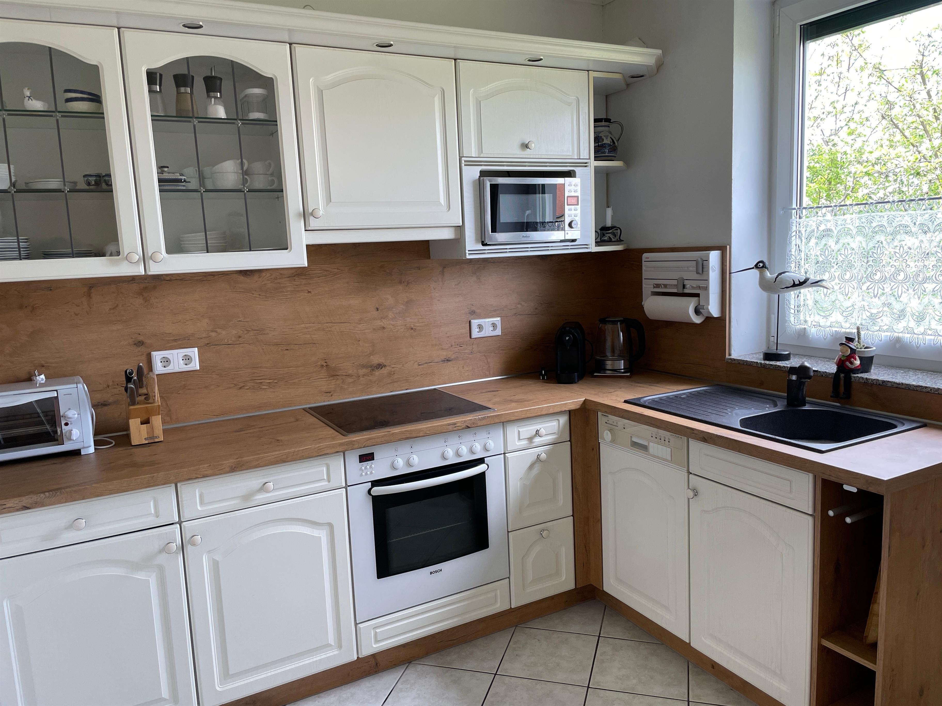 Mit viel Liebe haben wir unser schönes Ferienhaus eingerichtet. Das Haus ist barrierefrei, es gibt lediglich zwei flache Stufen am Eingang und der Terrasse. Das Bad ist modern ausgestattet mit einer Regendusche und einer Fußb0den/Wandheizung.