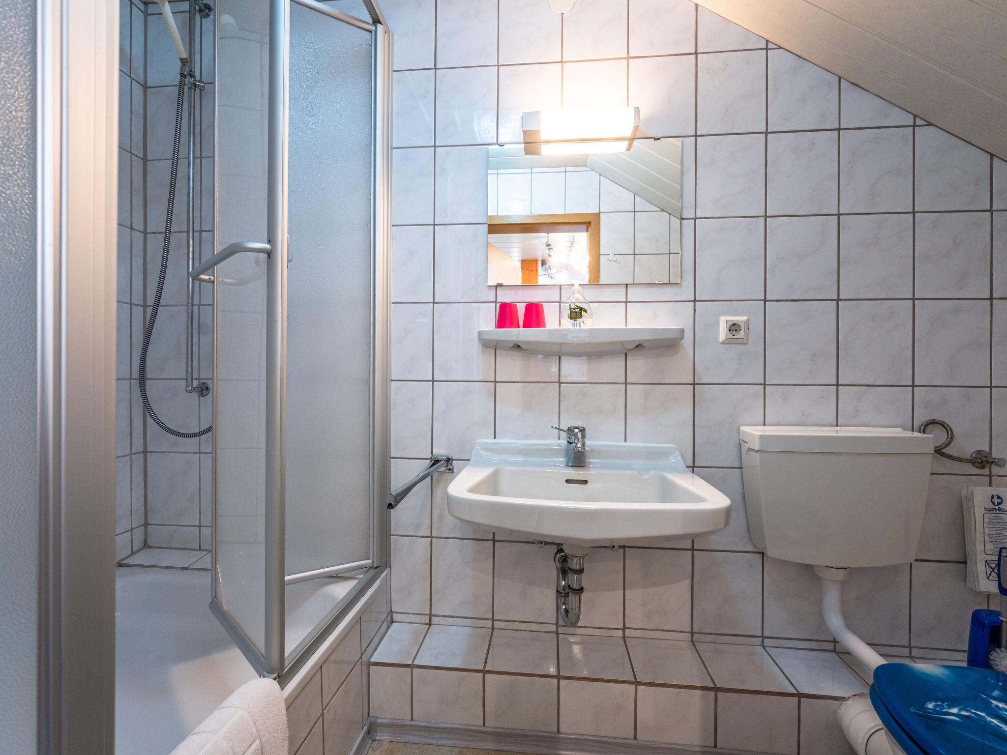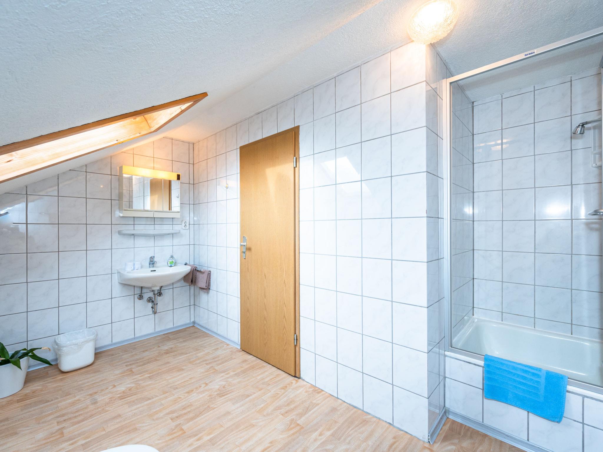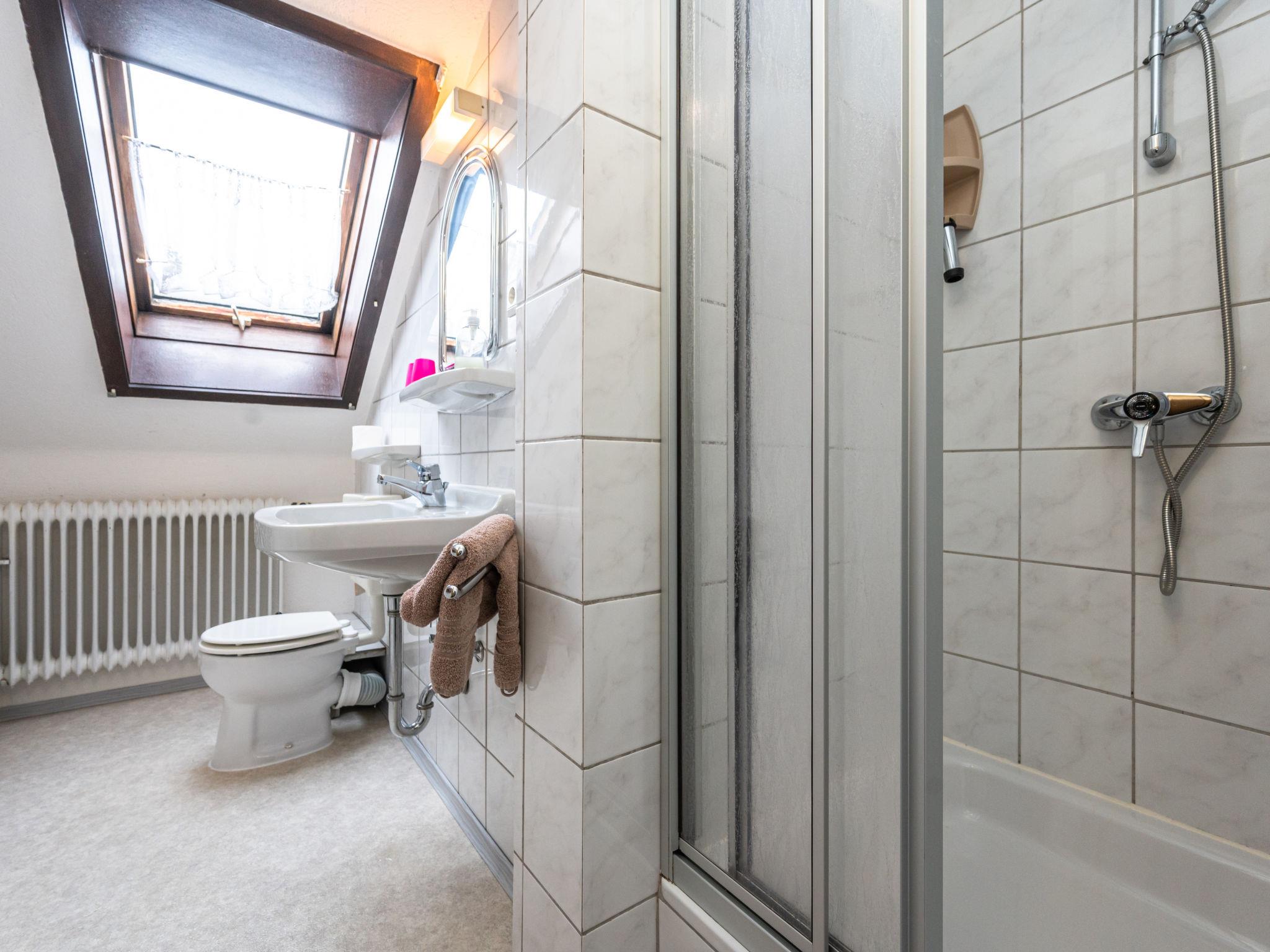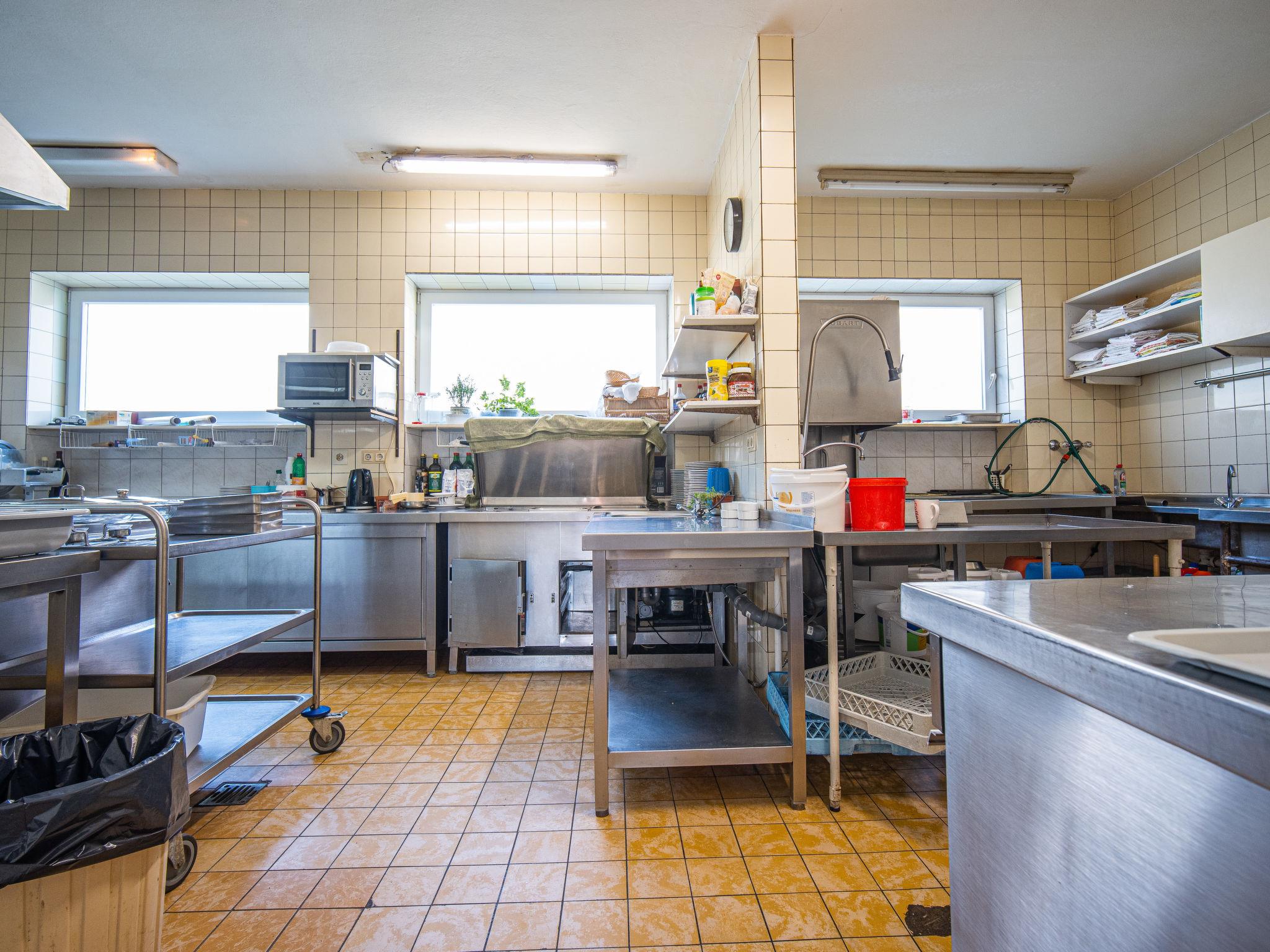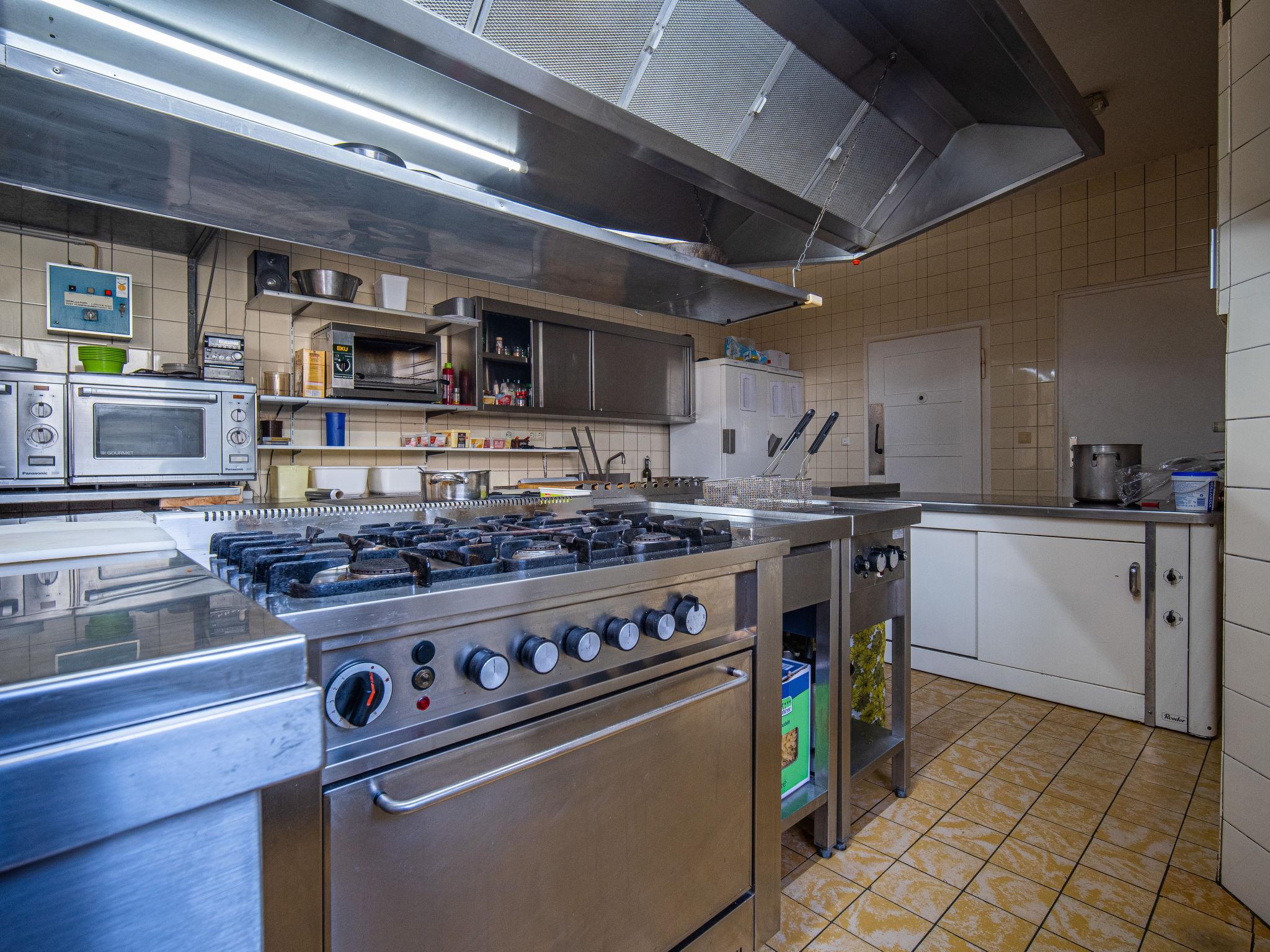 16-room house 404 m2 on 3 levels. Cosy furnishings: large living/dining room with satellite TV. Exit to the terrace. Large kitchen (oven, dishwasher, Gas stove, 4 gas rings, toaster, kettle, microwave, electric coffee machine). 3 showers/WC. Upper floor: 3 rooms, each room with 2 beds and shower/WC. Exit to the balcony. 2 rooms, each room with 2 beds and shower/WC. 1 room with 3 beds and bath/WC. Exit to the balcony. 1 room with 4 beds and shower/WC. 1 room with 2 beds and 1 x 2 bunk beds. Bath/shower, sep. WC. 2nd upper floor: 3 rooms, each room with 2 beds and shower/WC. Exit to the balcony. 1 room with 4 beds and shower/WC. 2 rooms, each room with 2 beds and bath/shower. 1 room with 3 beds and shower/WC. Large terrace partly roofed. Terrace furniture. Facilities: Internet (WiFi, free). Please note: non-smoking house. Smoke alarm, fire extinguisher.