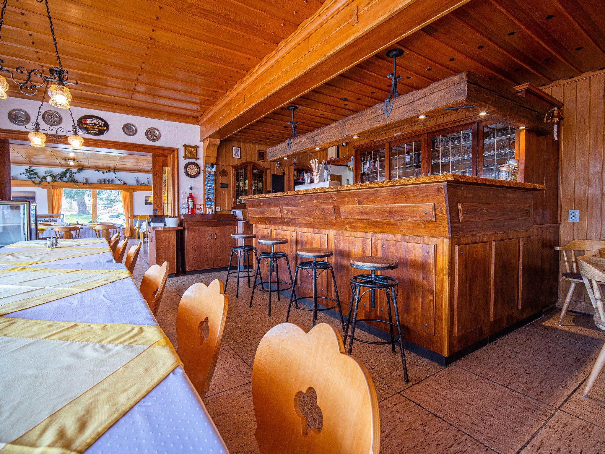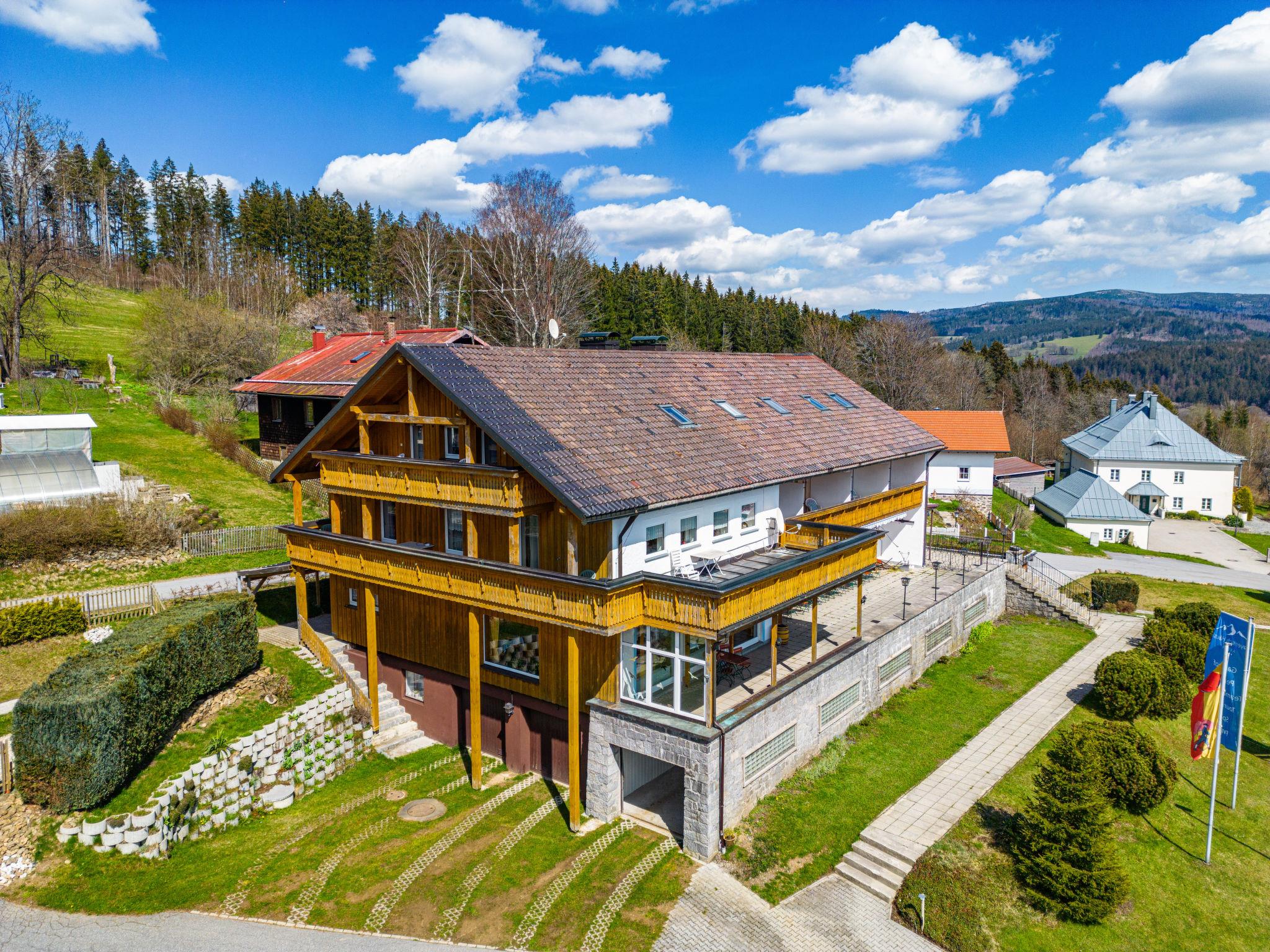 Large, comfortable house "Bayerisch Häusl", 3 storeys, built in 1960, renovated in 2000. On a slope. Private: table tennis. In the house: WiFi, storage room for bicycles, central heating system. Parking (for 14 cars), communal covered parking. Bus stop "Bayerisches Häusl" 100 m, railway station "Bayerisch Eisenstein" 1.6 km. Nearby attractions: Cross Country Trail 150 m, Železná Ruda 4 km, Bikepark Špicák (CZ) 6 km, Lipno Stausee (CZ) 100 km. Well-known ski regions can easily be reached: Großer Arber 7 km. Hiking paths: Großer Arber 7 km. The house is a former guest house with a large lounge, gastro kitchen, beer tap (€ 50), cold room, underground garage and large, partially covered terrace.