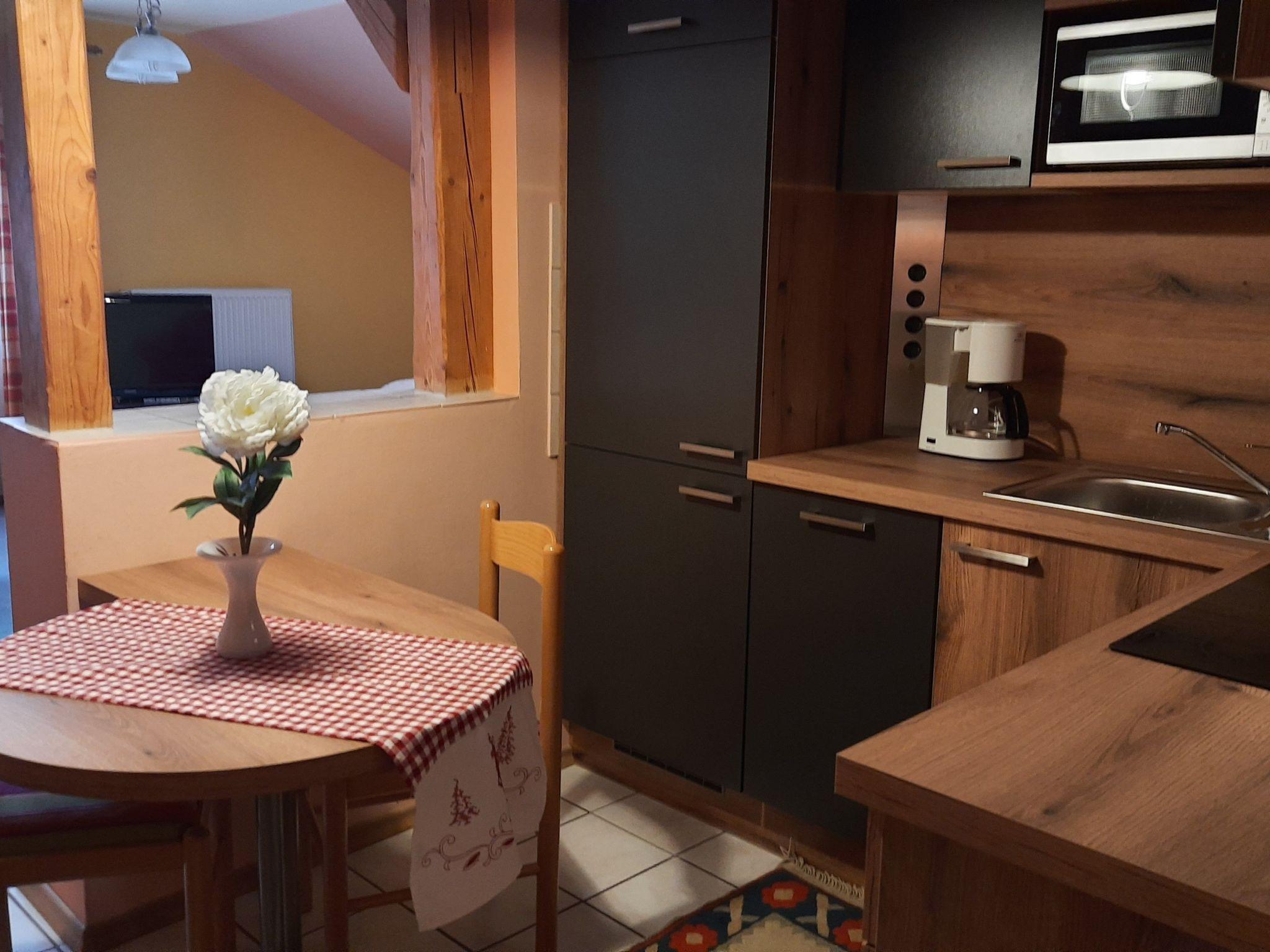 The holiday flat is tailored to your needs and offers everything you need for a comfortable stay. A practical kitchenette, equipped with a ceramic hob, coffee machine, filter coffee machine, dishwasher and kettle, allows you to prepare meals to your own taste. The integrated living room and bedroom are carefully furnished to offer you a cosy atmosphere.