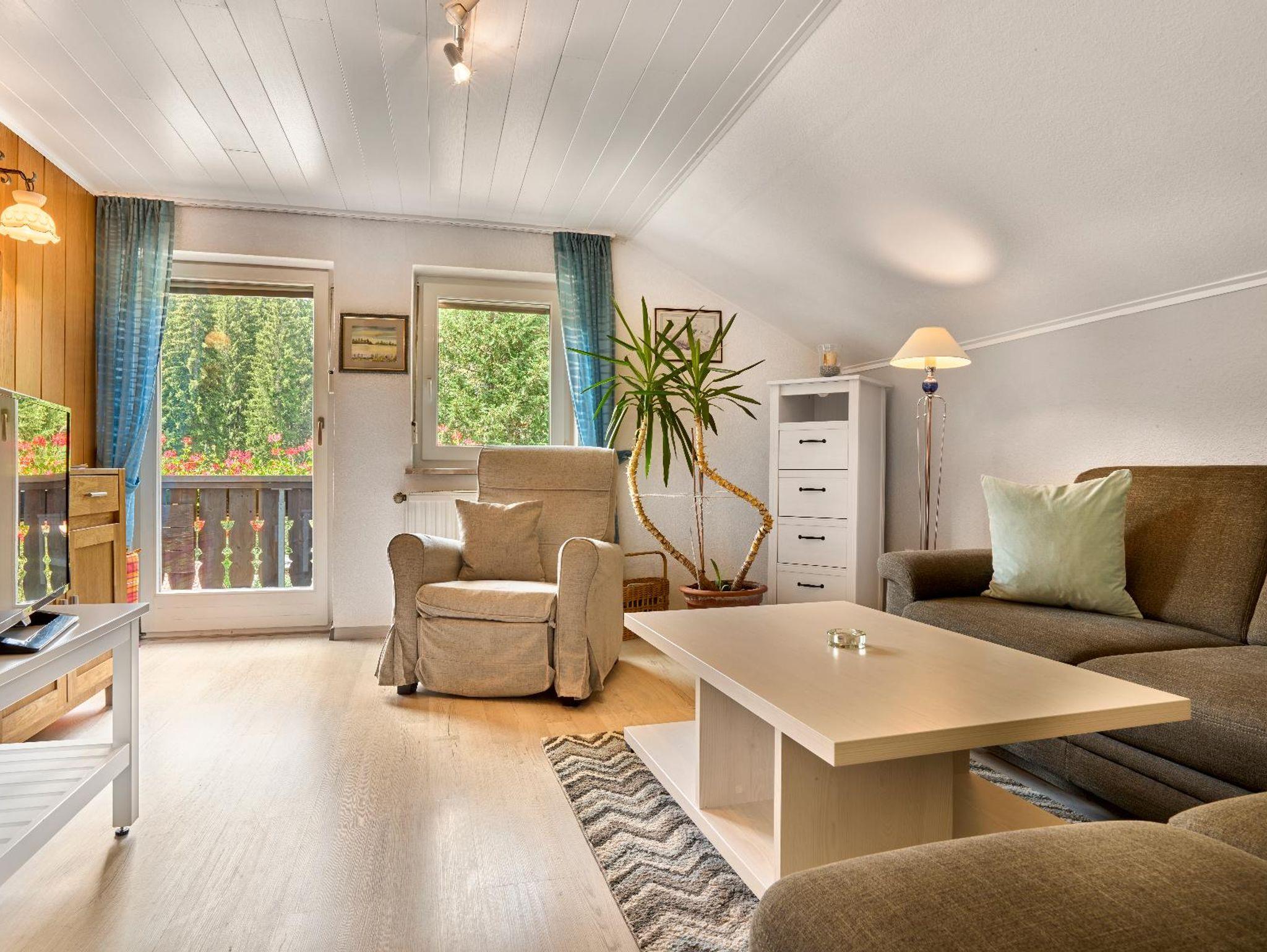 - großes Wohnzimmer mit Balkon, Sat-TV Flachbildschirm, Sitzgruppe, Leseecke