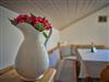 - Küche mit Essplatz, E-Herd, Kaffeemaschine, Wasserkocher, Mikrowelle, Allesschneider, großer Kühlschrank