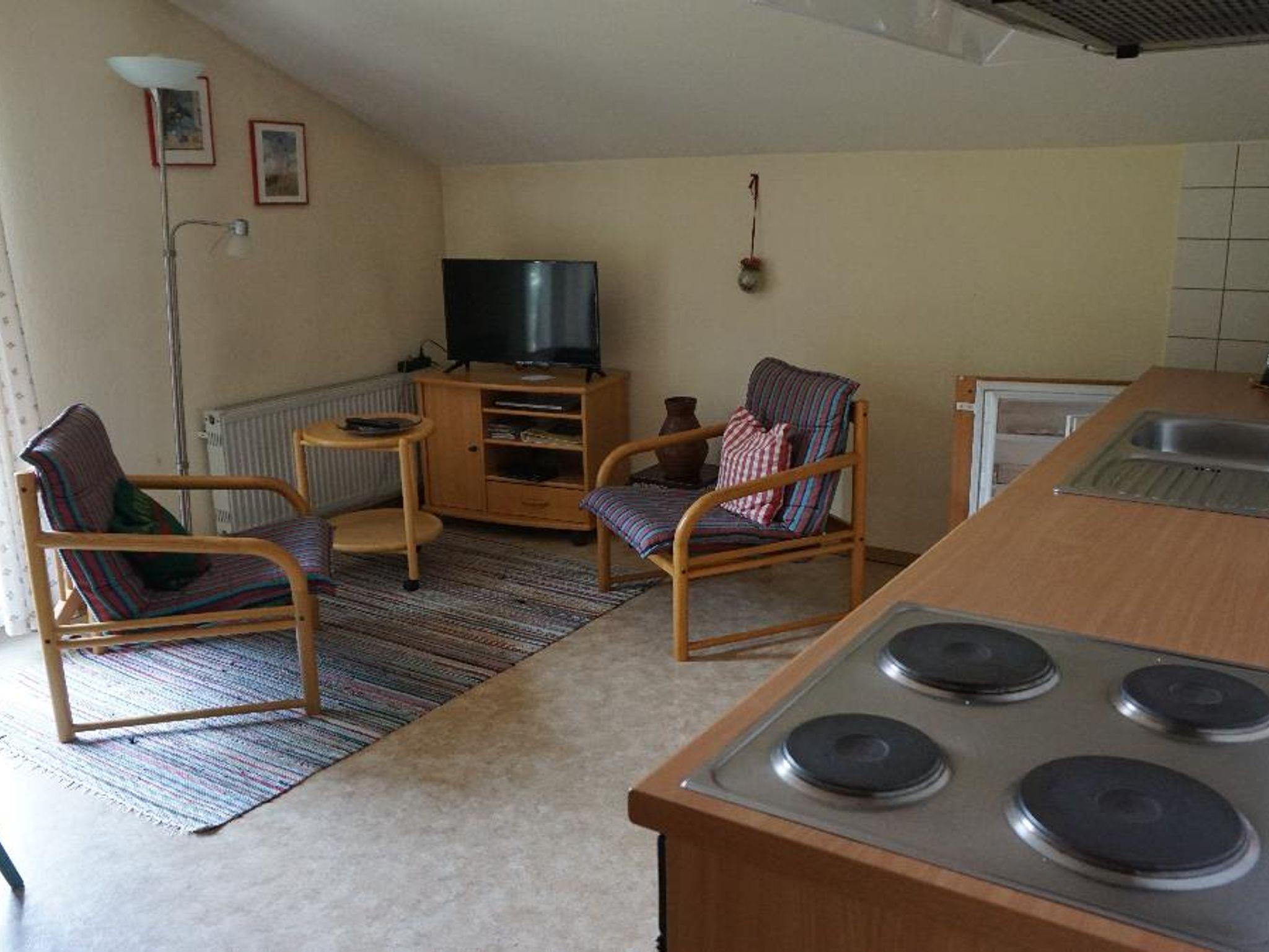 Die Ferienwohnung mit 70qm liegt im zweiten Stock und ist für bis zu 4 Personen ausgelegt. Im Wohn- und Essbereich befindet sich eine Küchenzeile, ein Esstisch mit Stühlen und ein Fernseher. Der Balkon ist über den Wohnbereich erreichbar. Jedes der beiden Schlafzimmer verfügt über ein Doppelbett und Sitzgelegenheiten. Das Badezimmer ist mit Dusche ausgestattet. Das WC ist separat.