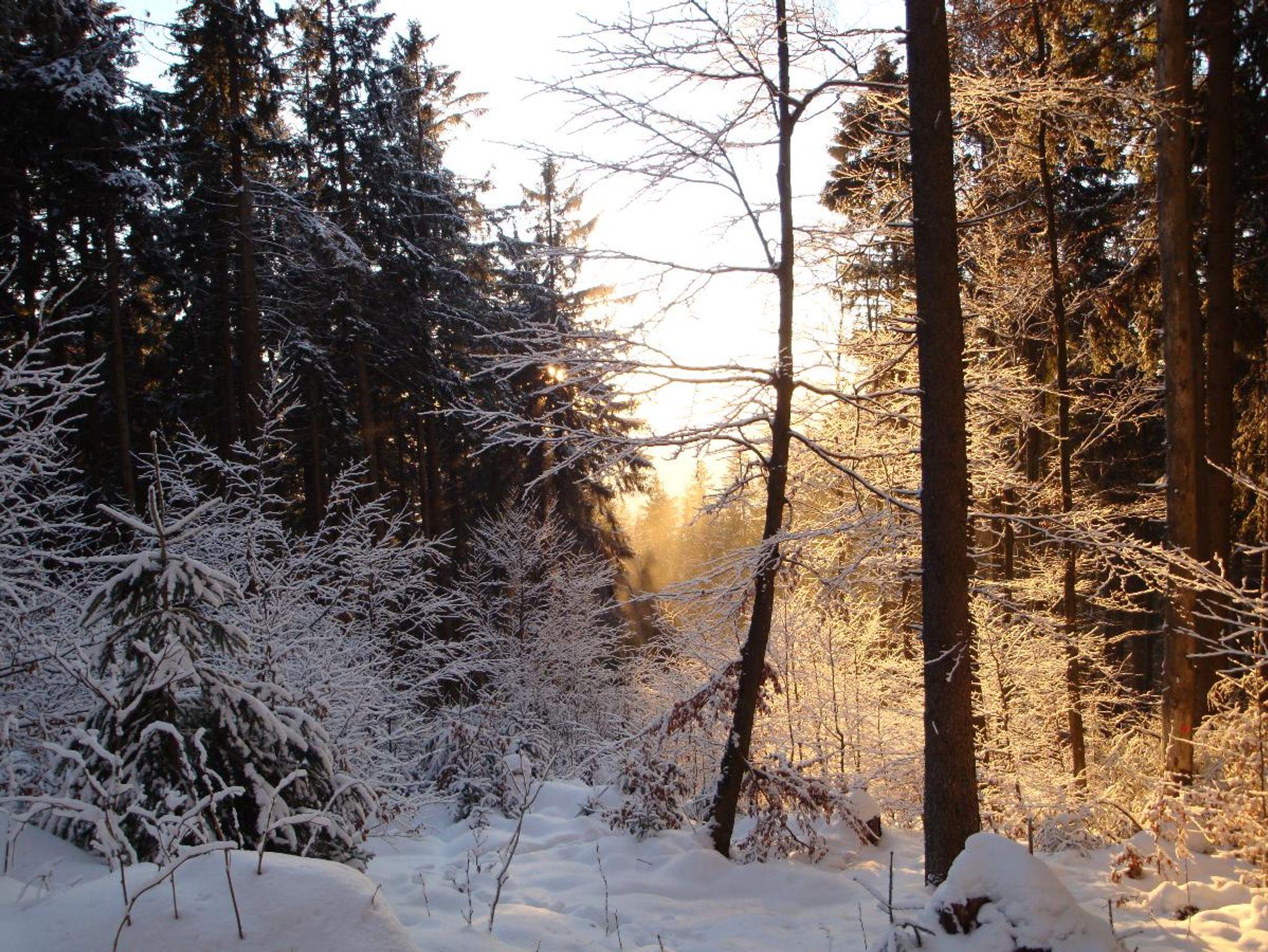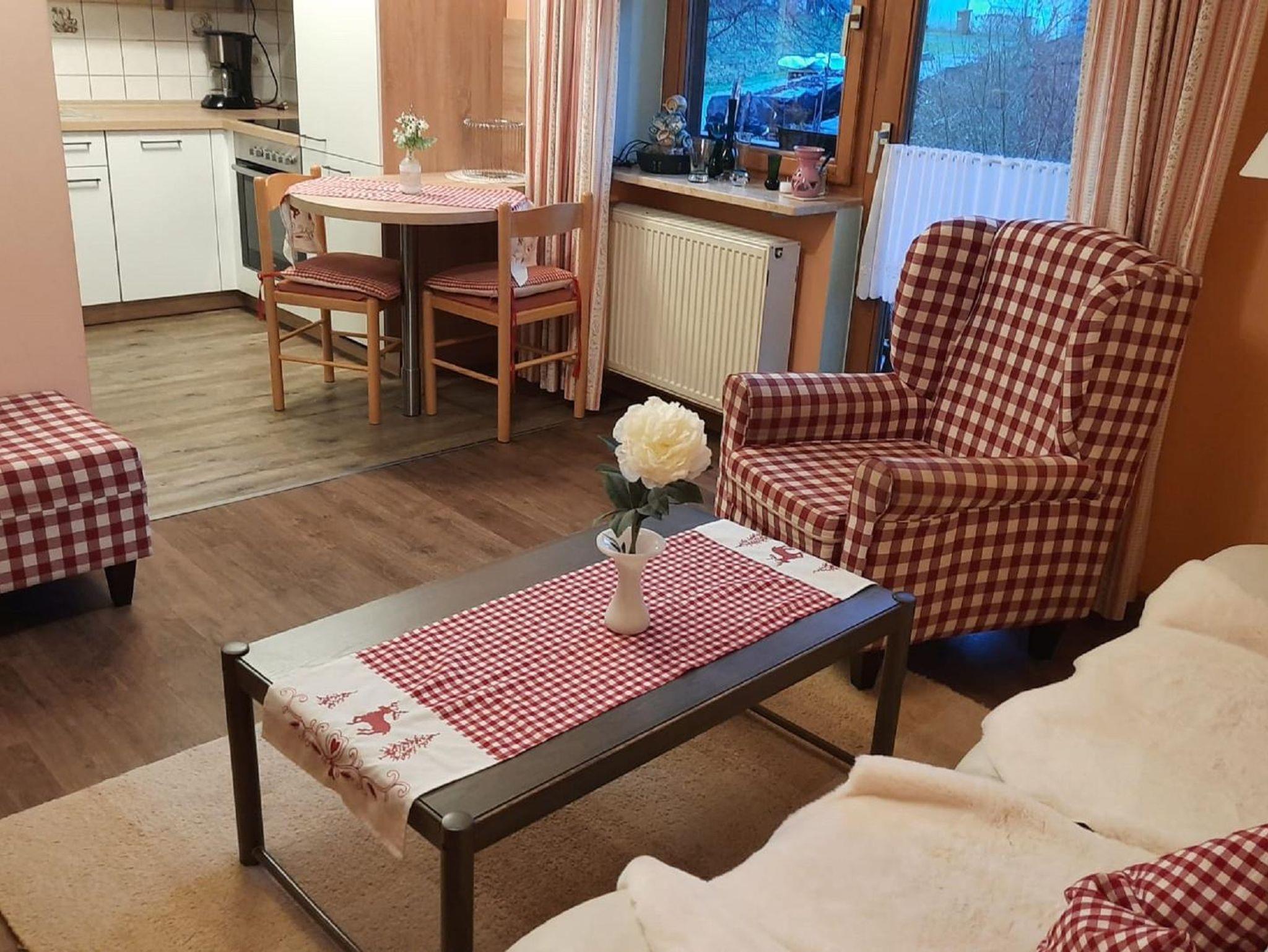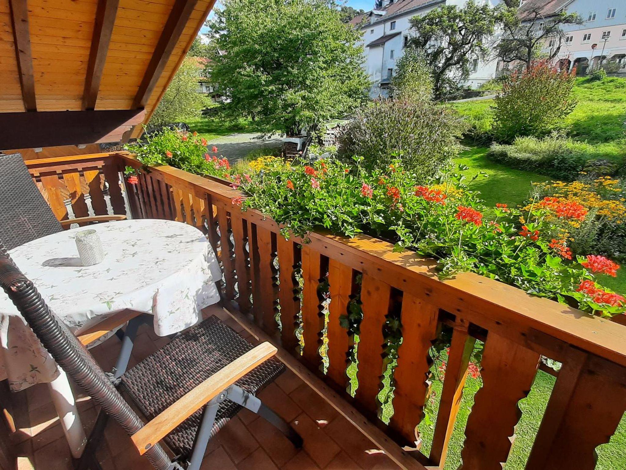 Wohnung für 2 Personen in Bayer. Eisenstein am Fuße des Gr. Arbers. Wohnzimmer mit Küche, 2 separate Schlafräume, Diele, DU/WC, großer Südbalkon, 58 qm, Sat-Flat-TV, Fön . W-Lan vorhanden.