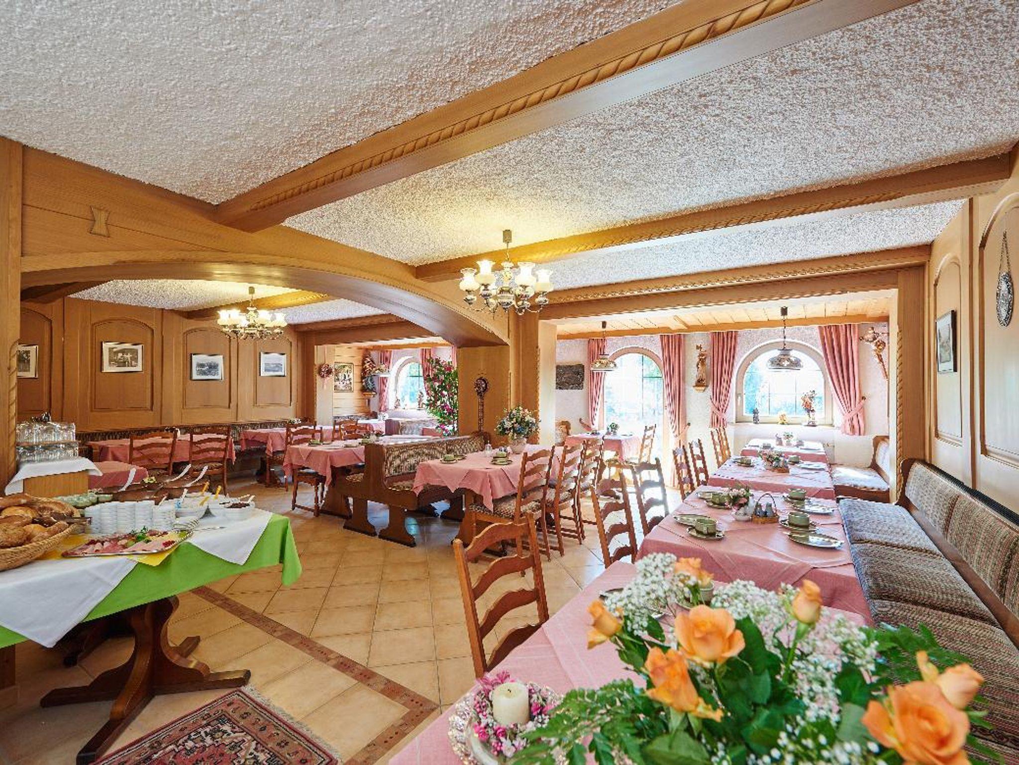 - einen Aufenthaltsraum mit offenem Kamin, Sonnenterrasse, Frühstücksraum (reichhaltiges Frühstücksbuffet mit Bioecke und Saftbar)