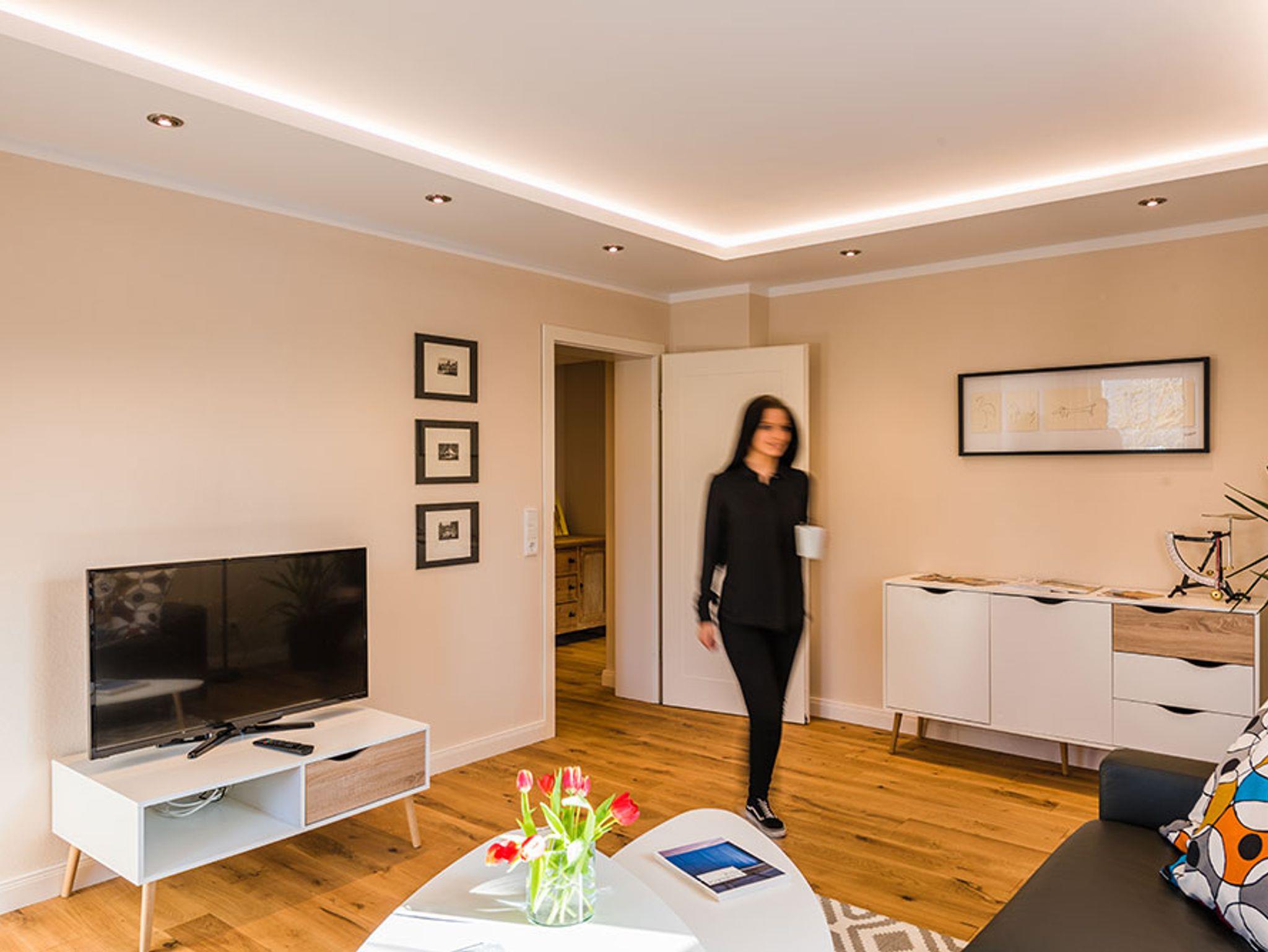 Das großzügige Wohnzimmer lädt zum Verweilen ein.
