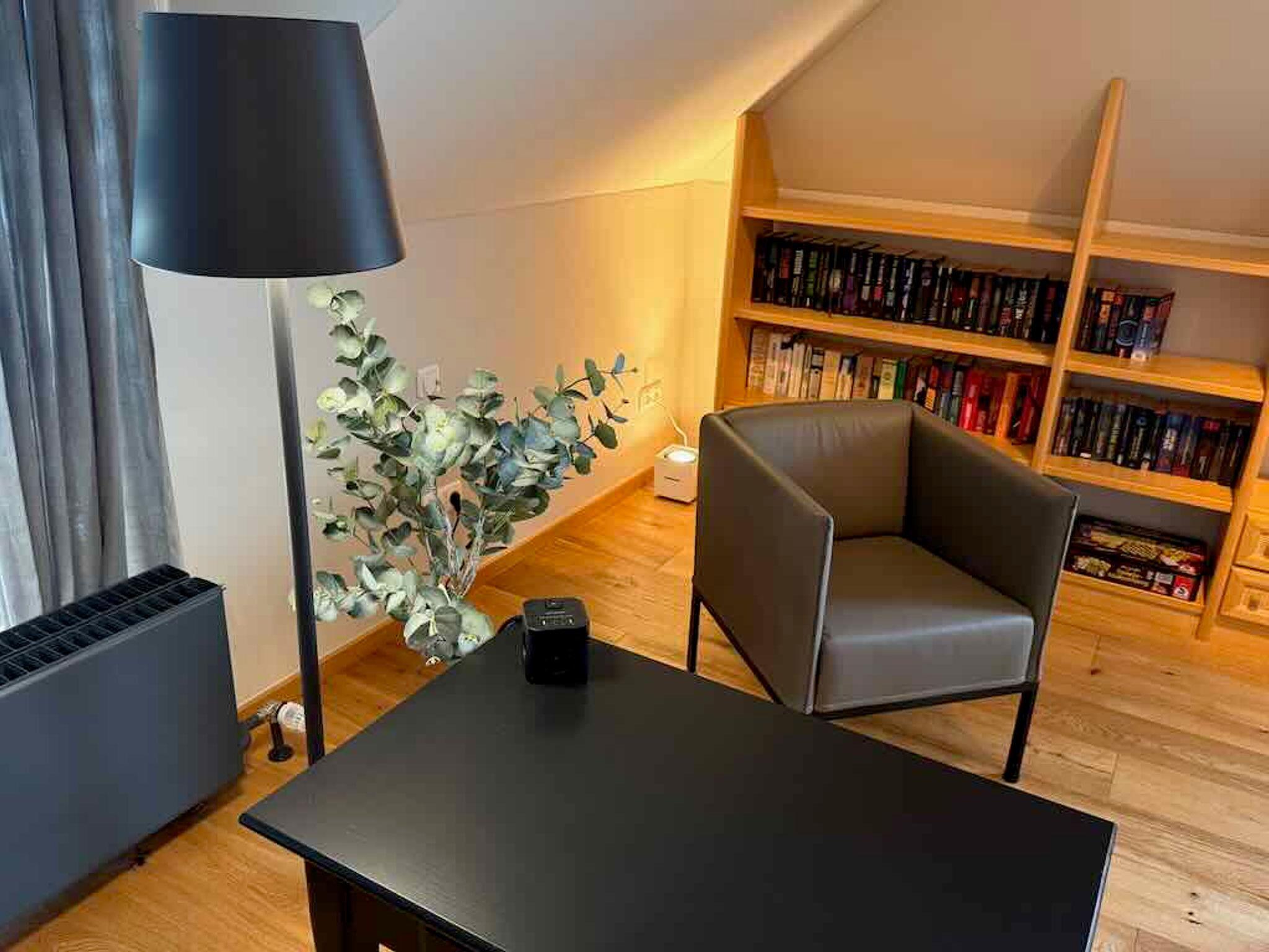Ihre Anreise zu unserer 5-Sterne Ferienwohnung Elsa ist denkbar komfortabel, da bequeme Parkmöglichkeiten direkt am Haus zur Verfügung stehen. Der elegante Eingangsbereich heißt Sie herzlich willkommen und gibt einen ersten Vorgeschmack auf die hochwertige Gestaltung im Inneren. Gleich beim Betreten finden Sie eine stilvolle Garderobe, die nahtlos in den großzügigen Wohnbereich übergeht. Hier können Sie Ihre persönlichen Dinge ordentlich verstauen und entspannt in Ihren Urlaub starten. Schon dieser erste Eindruck vermittelt das Gefühl, in einem luxuriösen und durchdachten Zuhause auf Zeit angekommen zu sein, wo jedes Detail zählt. Der Boden der gesamten Ferienwohnung besteht aus edlem Naturholzparkett, das eine warme und einladende Atmosphäre schafft.