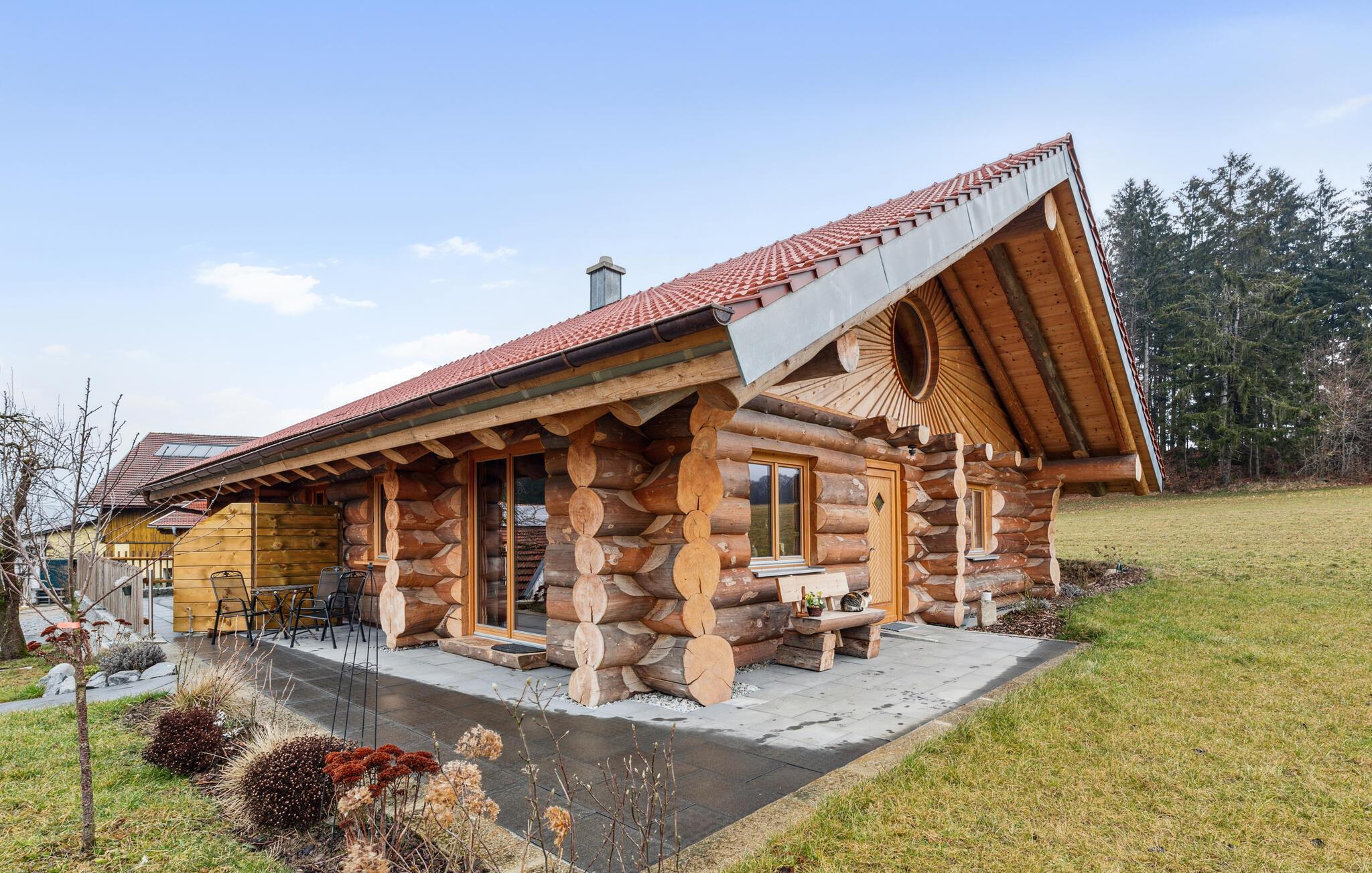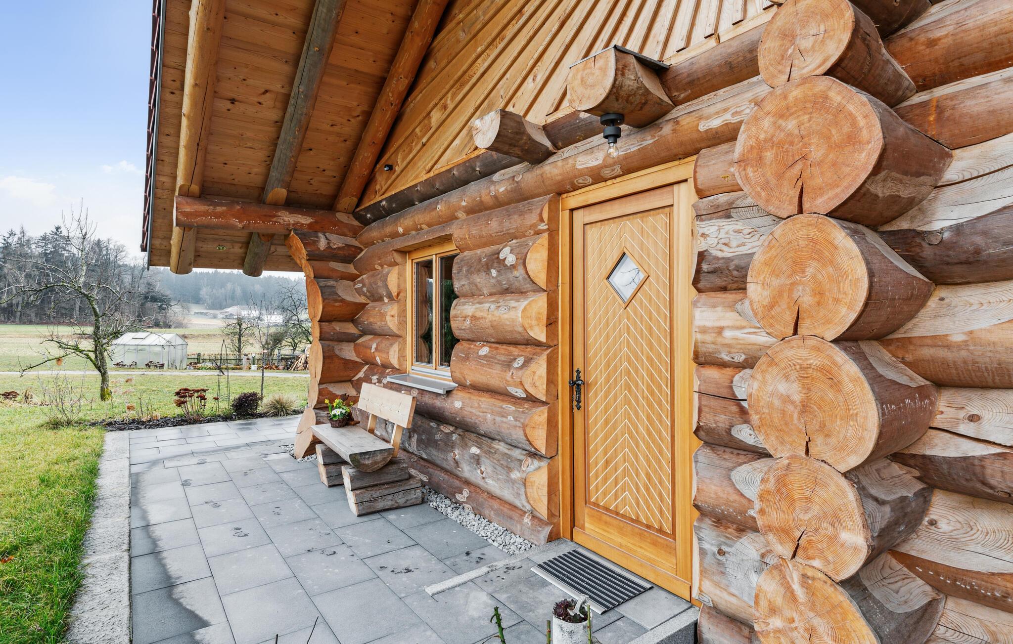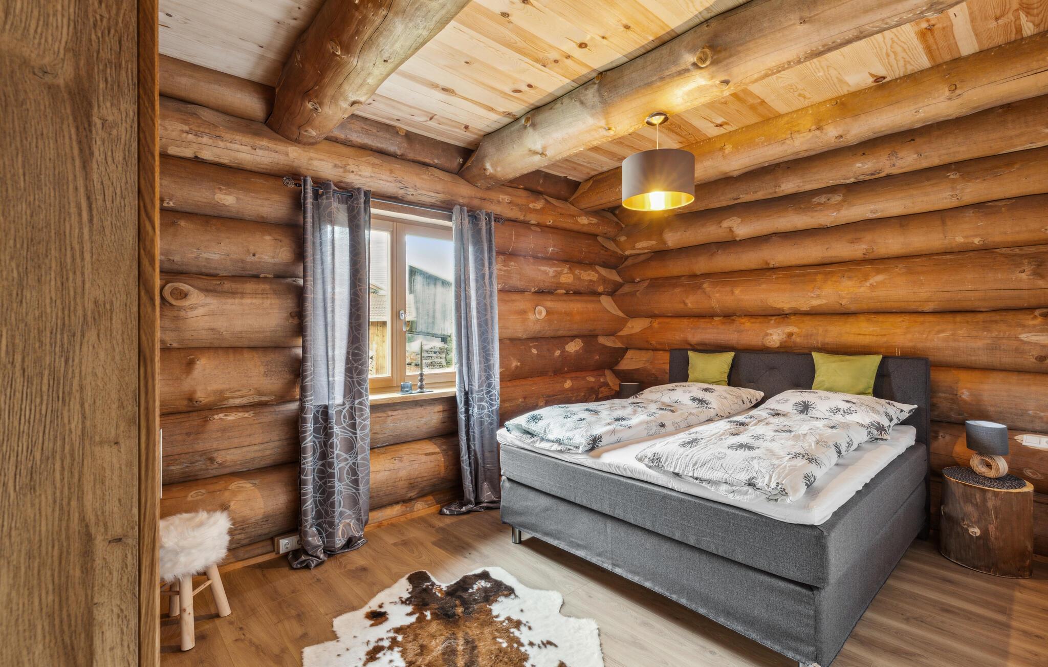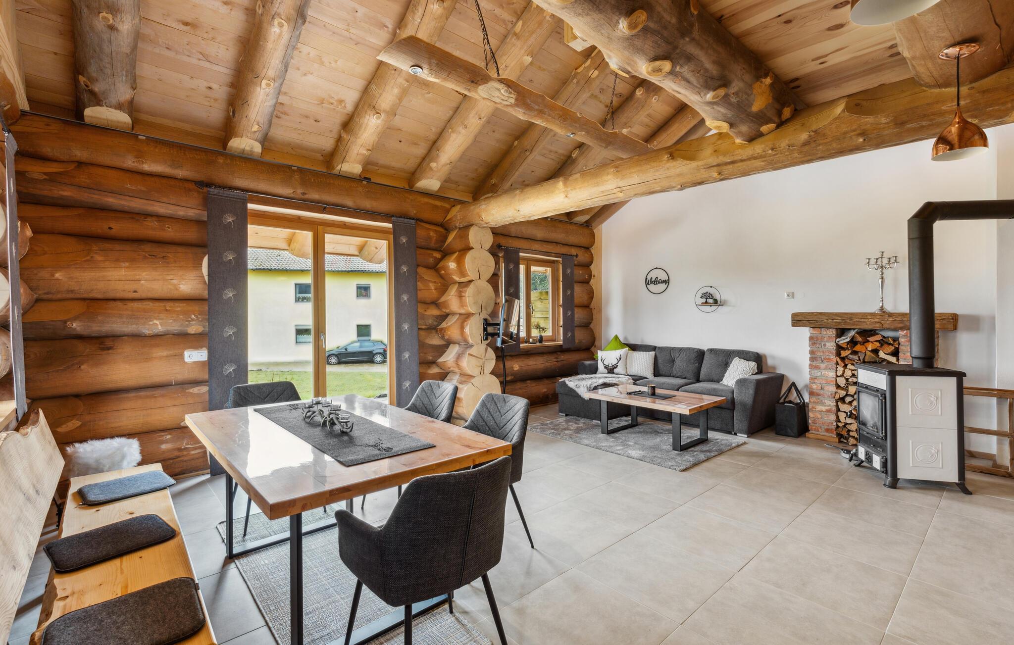 Glæd jer til ren afslapning i denne rustikke bjælkehytte med moderne indretning.