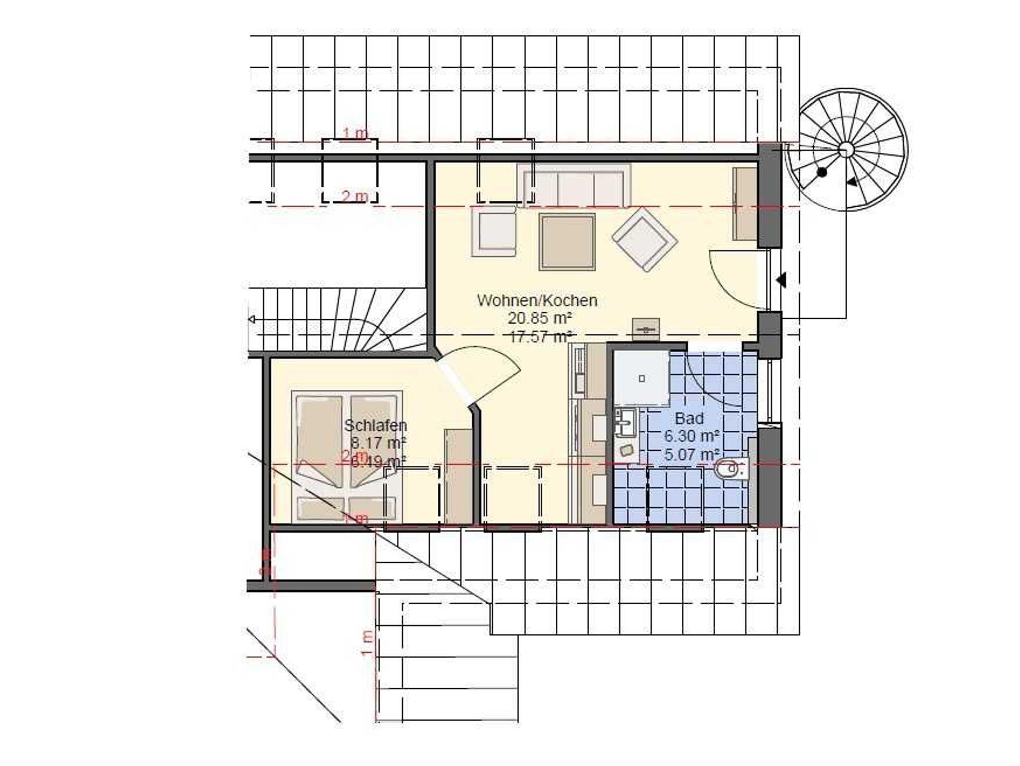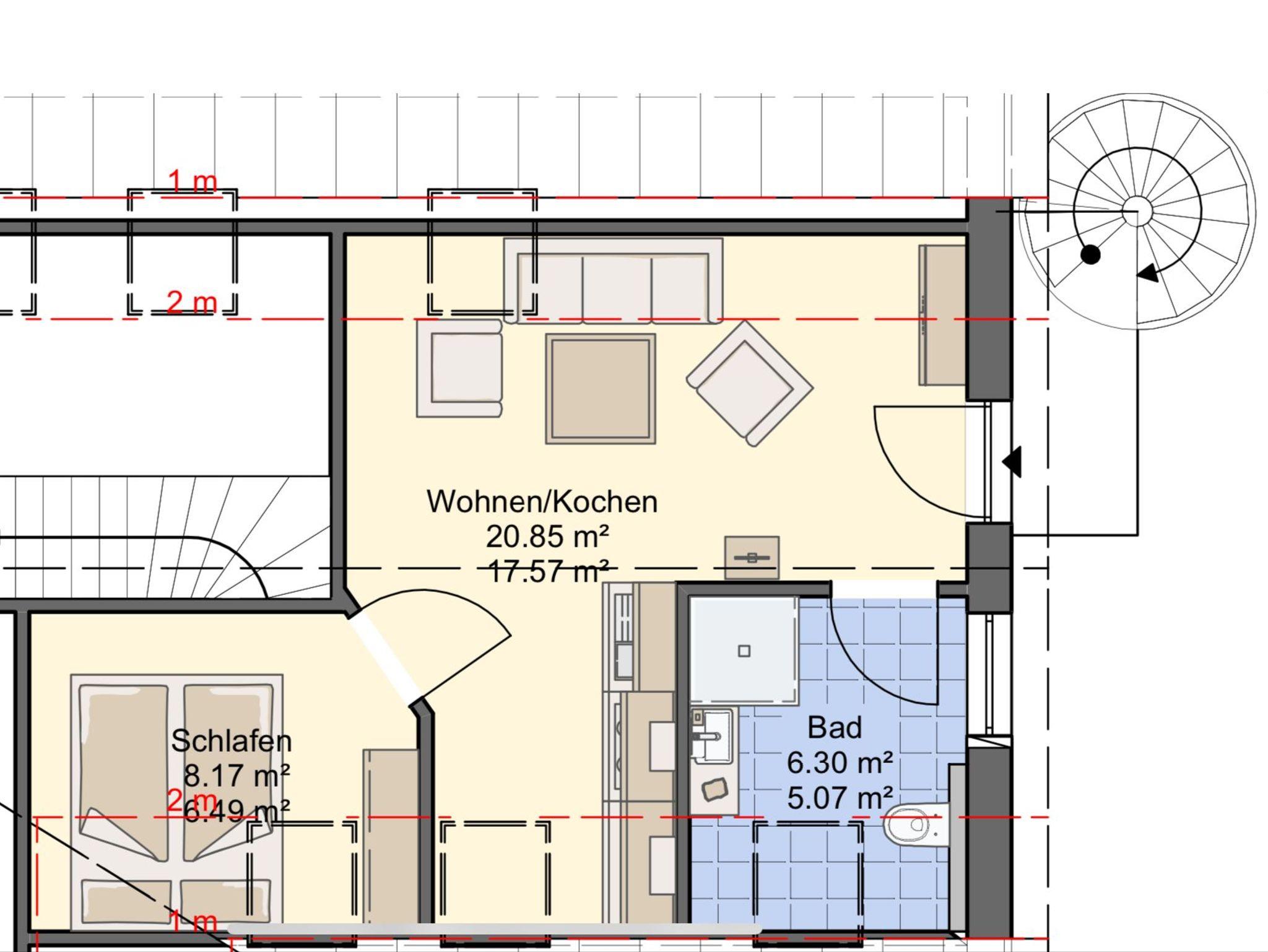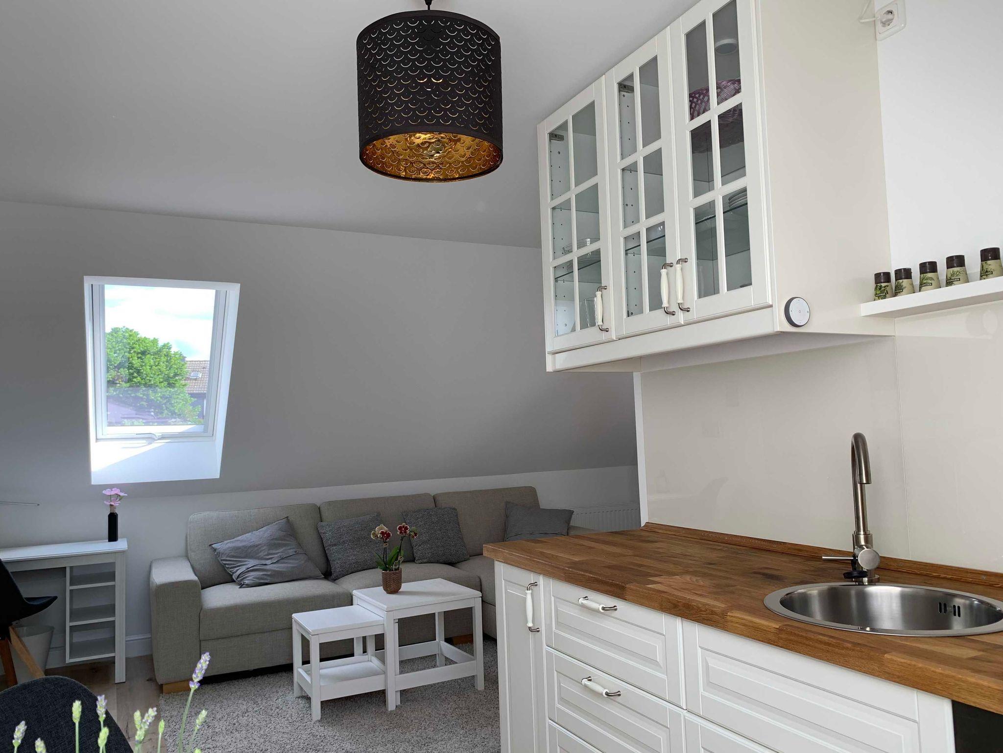 • neu renovierte (2021) helle Einliegerwohnung mit eigenem Eingang (Wendeltreppe) voll möbliert und komplett ausgestattet