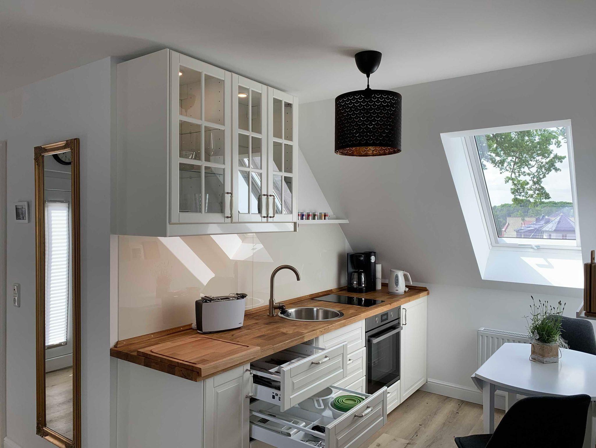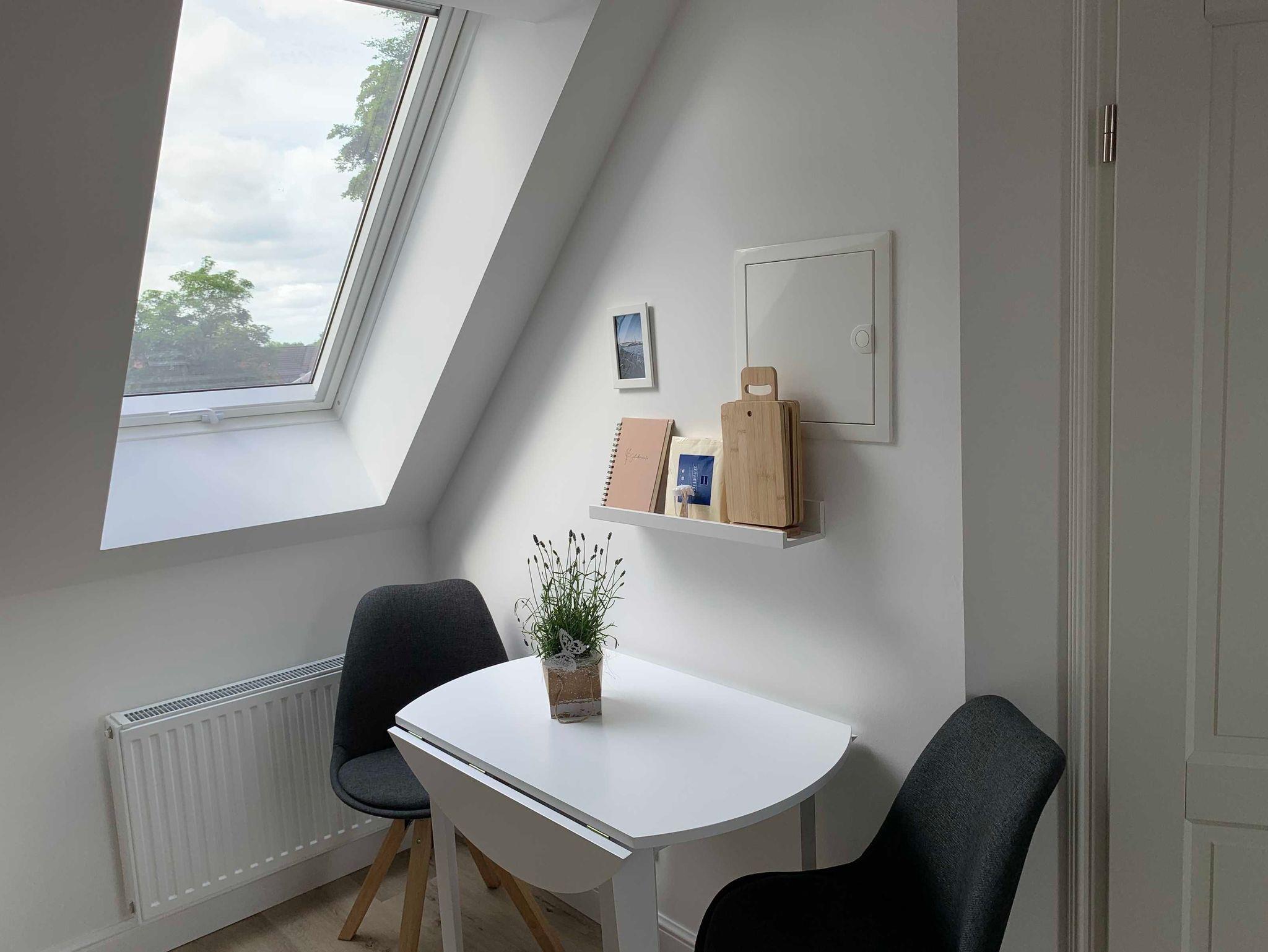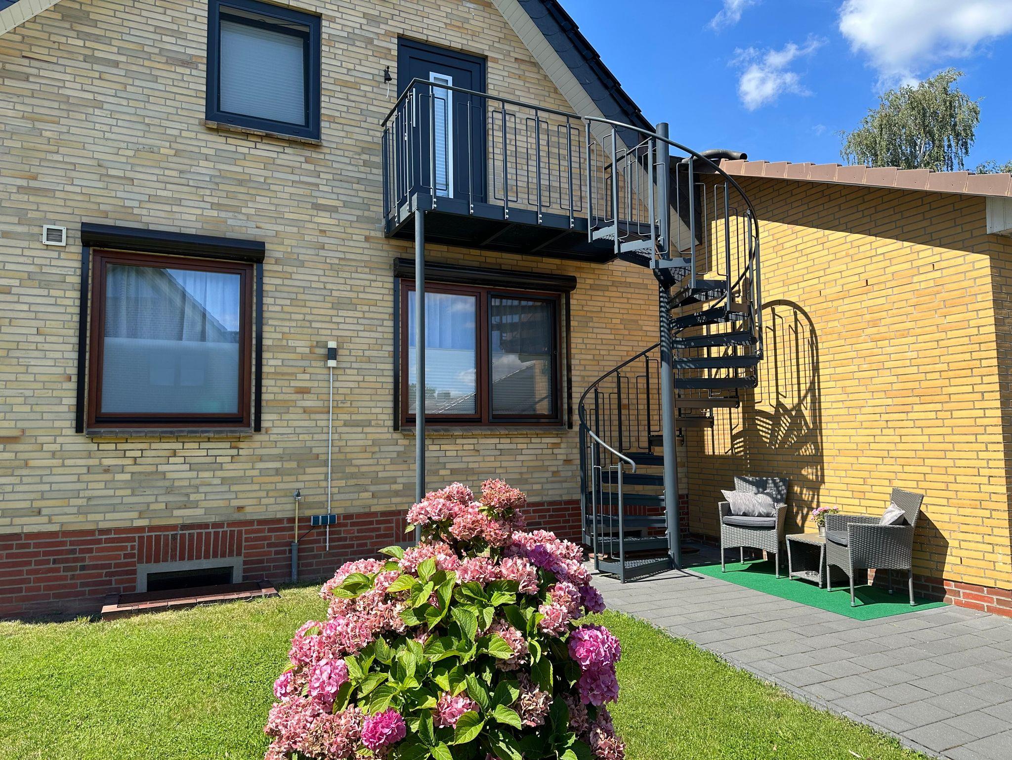 Die Ferienwohnung hat eine Wohnfläche von 30 Quadratmetern und ist im Jahr 2021 komplett neu renoviert worden. Der offene Wohn- und Essbereich, ein Schlafzimmer mit Doppelbett sowie ein Duschbad laden zu einem gemütlichen Aufenthalt ein. Sie erreichen die Ferienwohnung über eine außenliegende Wendeltreppe.
