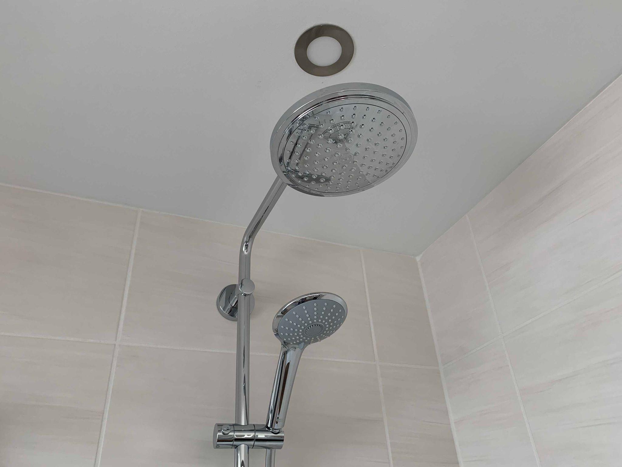 • ebenerdige Duschkabine (90x90) mit Regenduschkopf