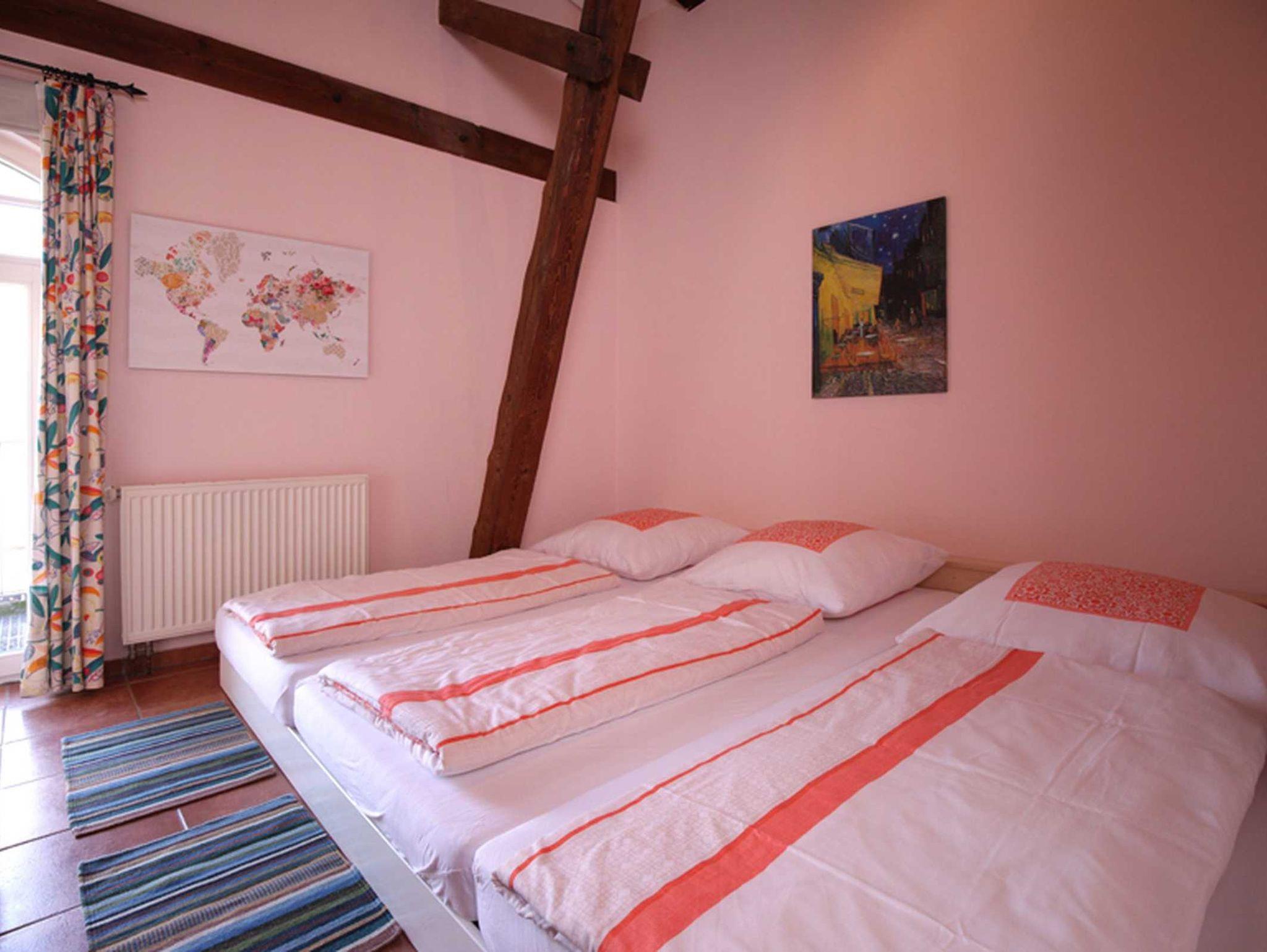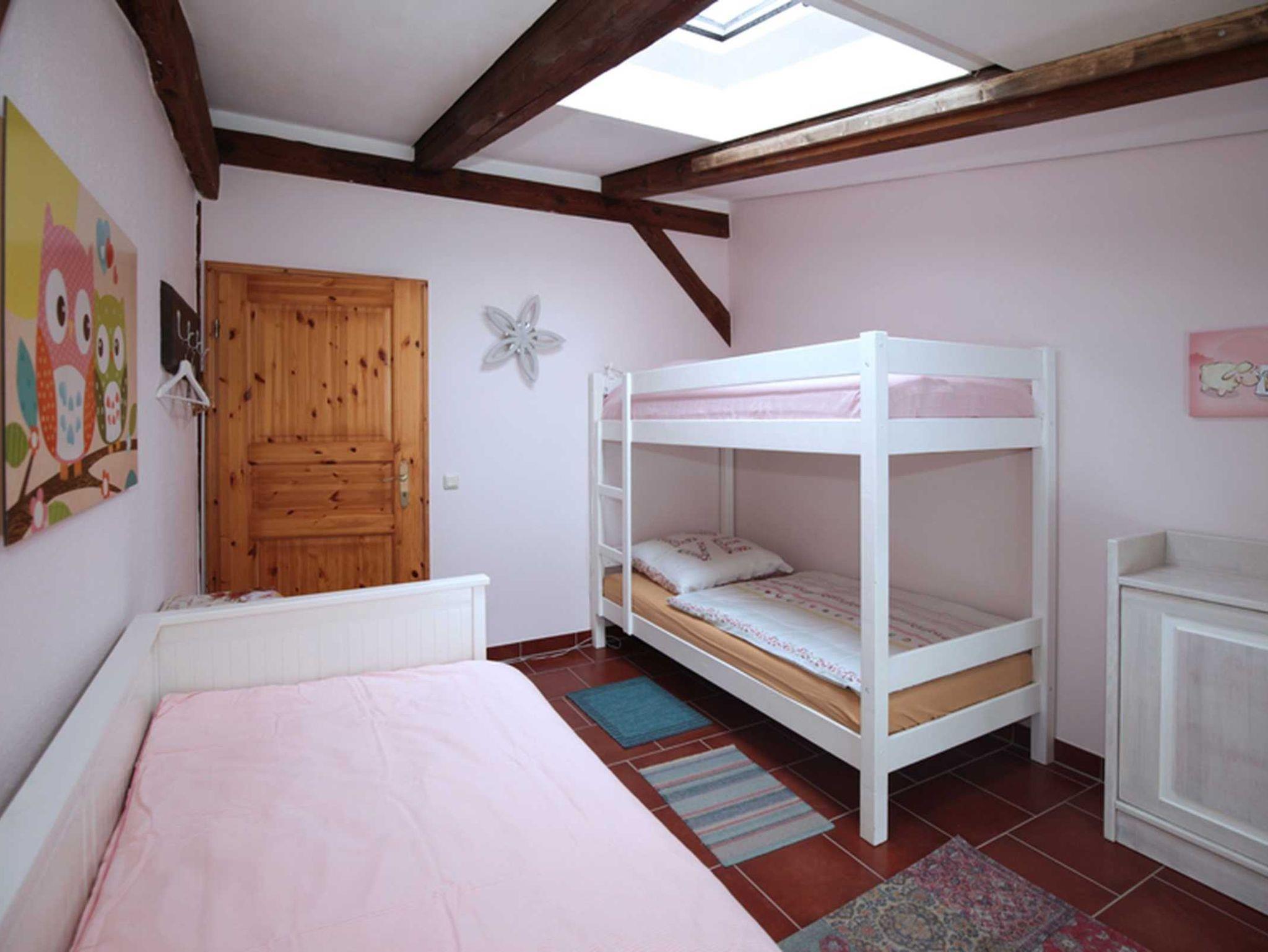 Die Ferienwohnung verfügt über 3 separate Schlafräume - ein Elternschlafzimmer mit Familienbett (2+2), ein weiteres Schlafzimmer mit Doppelbett und Einzelbett, ein Kinderschlafzimmer mit Etagenbett und Einzelbetten - sowie einen Wohnraum mit Aufbettungsmöglichkeit. Auf Wunsch kann ein Reise-/Kinderbett zur Verfügung gestellt werden. Die Wohnung hat jetzt 2 Bäder mit Dusche.