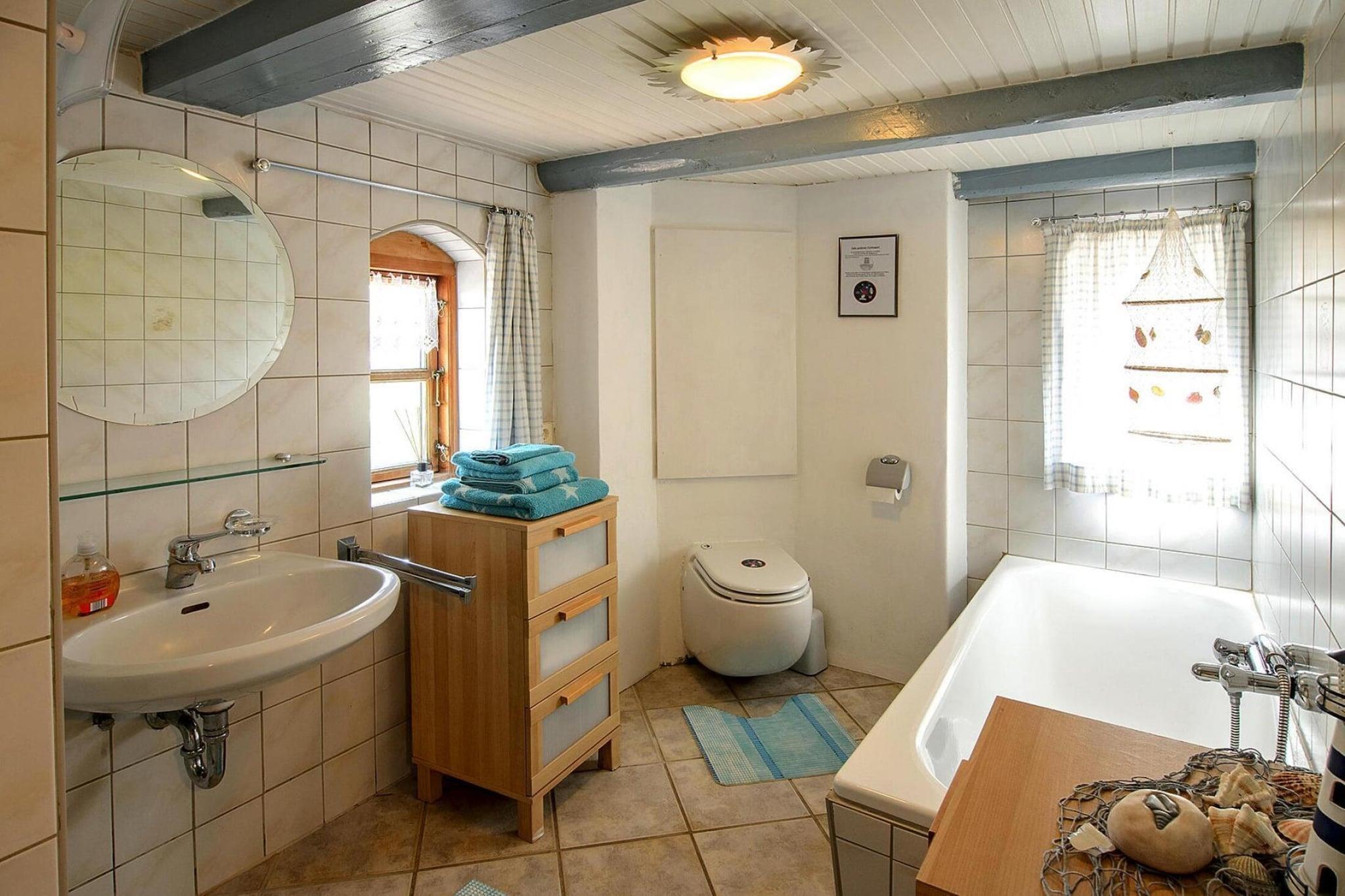 Stråtækt frisisk hus i udkanten af Behrendorf. Du vil bo her i rolige, landlige omgivelser og slappe af, mens du beundrer den store frisiske natur. Dit yndlingssted vil helt sikkert være den store solterrasse med dens smukke udsigt, hvor du kan slappe af med en kop kaffe og lade blikket vandre. På bare 20 minutter i bil kan du nå den smukke by Husum og Vadehavet. Højdepunkter inkluderer: Alle forbrugsafhængige energiomkostninger Sengelinned og håndklæder (første levering) Aktiviteter i nærheden: Husum er et besøg værd. Gå en tur gennem den hyggelige Krämerstraße, eller oplev de små, smukke trappehuse i Norderstraße. Den indre havn, der ligger i byens centrum, tilbyder et særligt sydstatspræg med sine både og motoryachter samt restauranter med fiskespecialiteter. En dag på digerne ved Nordsøen, hvor en frisk, afslappende brise altid blæser, er umagen værd. De nærliggende nordfrisiske øer Pellworm, Föhr og Sild kan også hurtigt nås. I sommermånederne anbefaler vi udflugter til Halligen-øerne i Vadehavet, der er opført på UNESCOs verdensarvsliste. Følgende destinationer kan nås inden for en halv time: Husum, Nibüll, Flensborg, Nordstrand, St. Peter-Ording og Büsum.