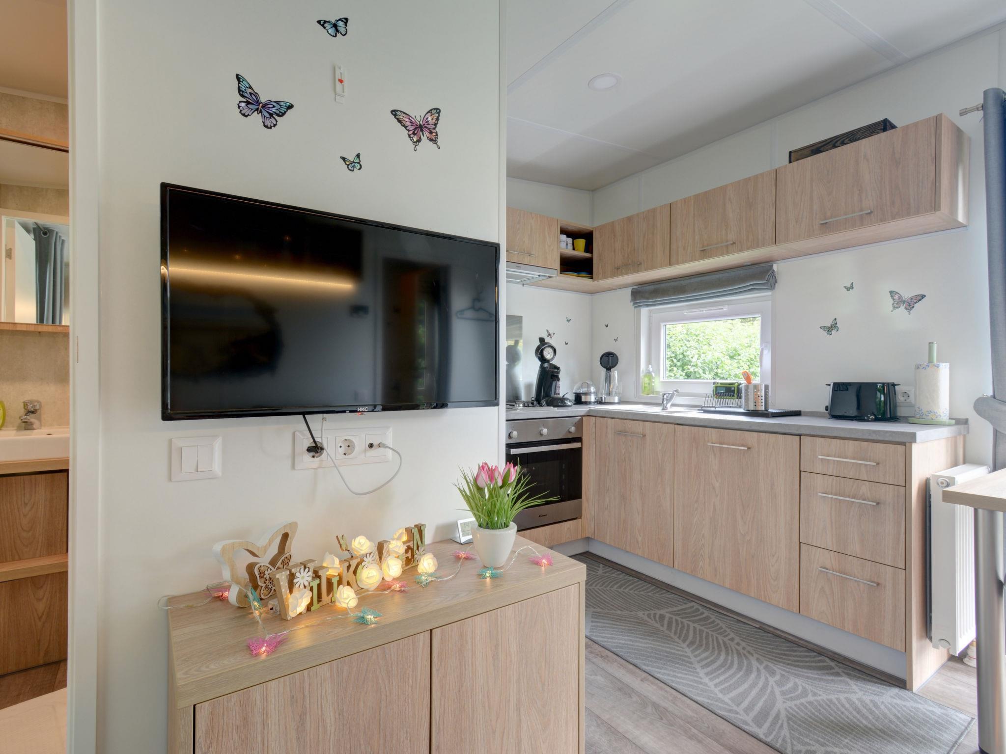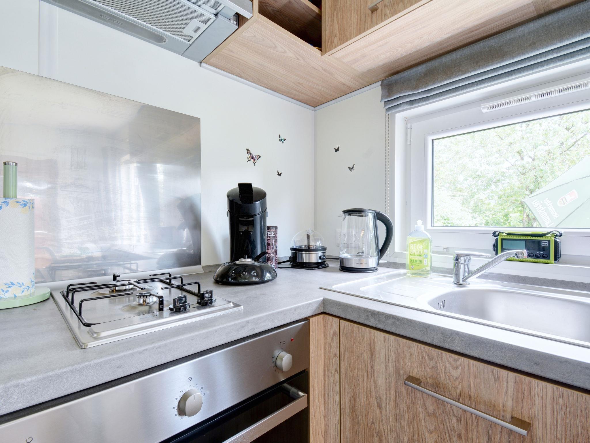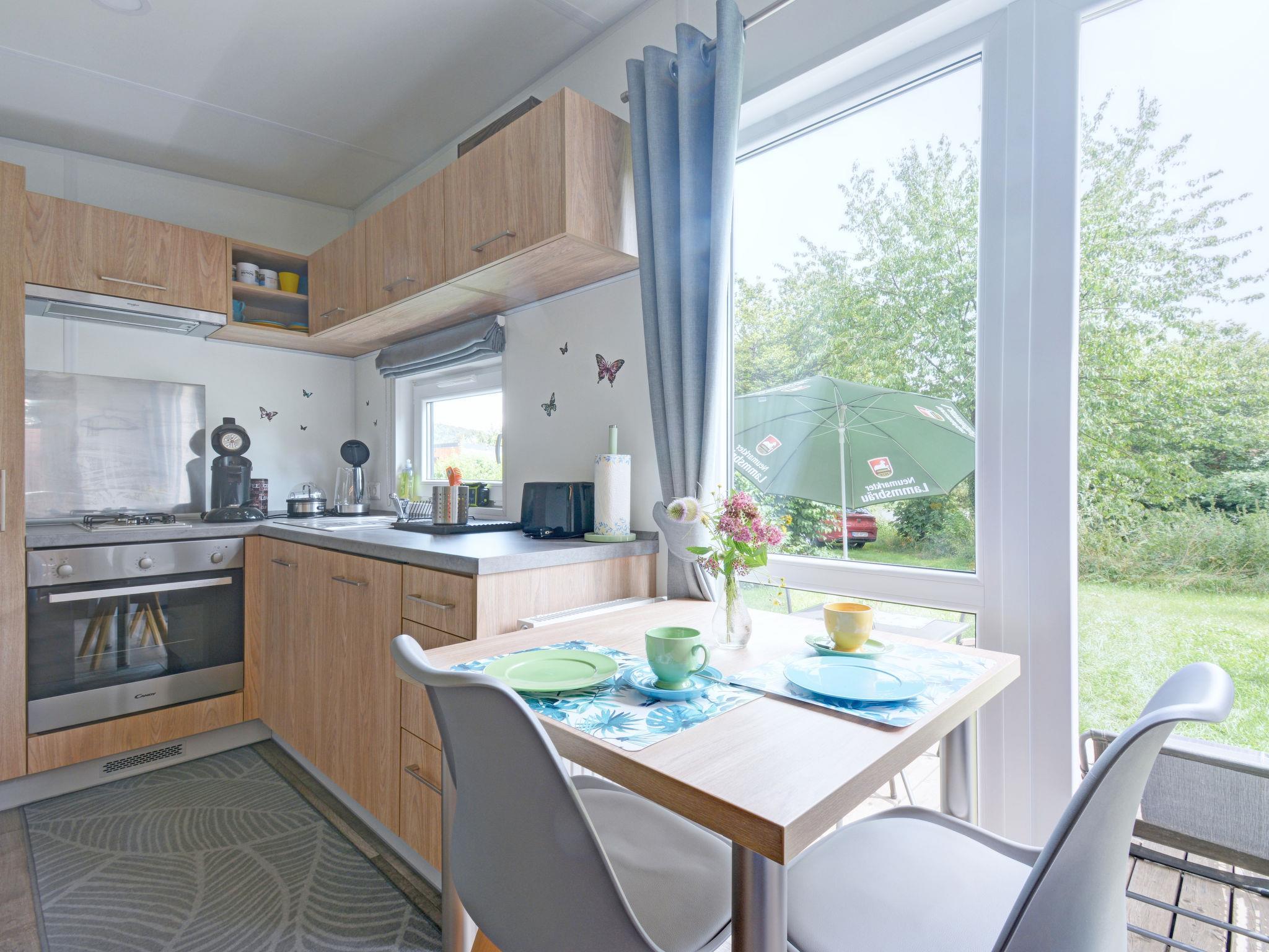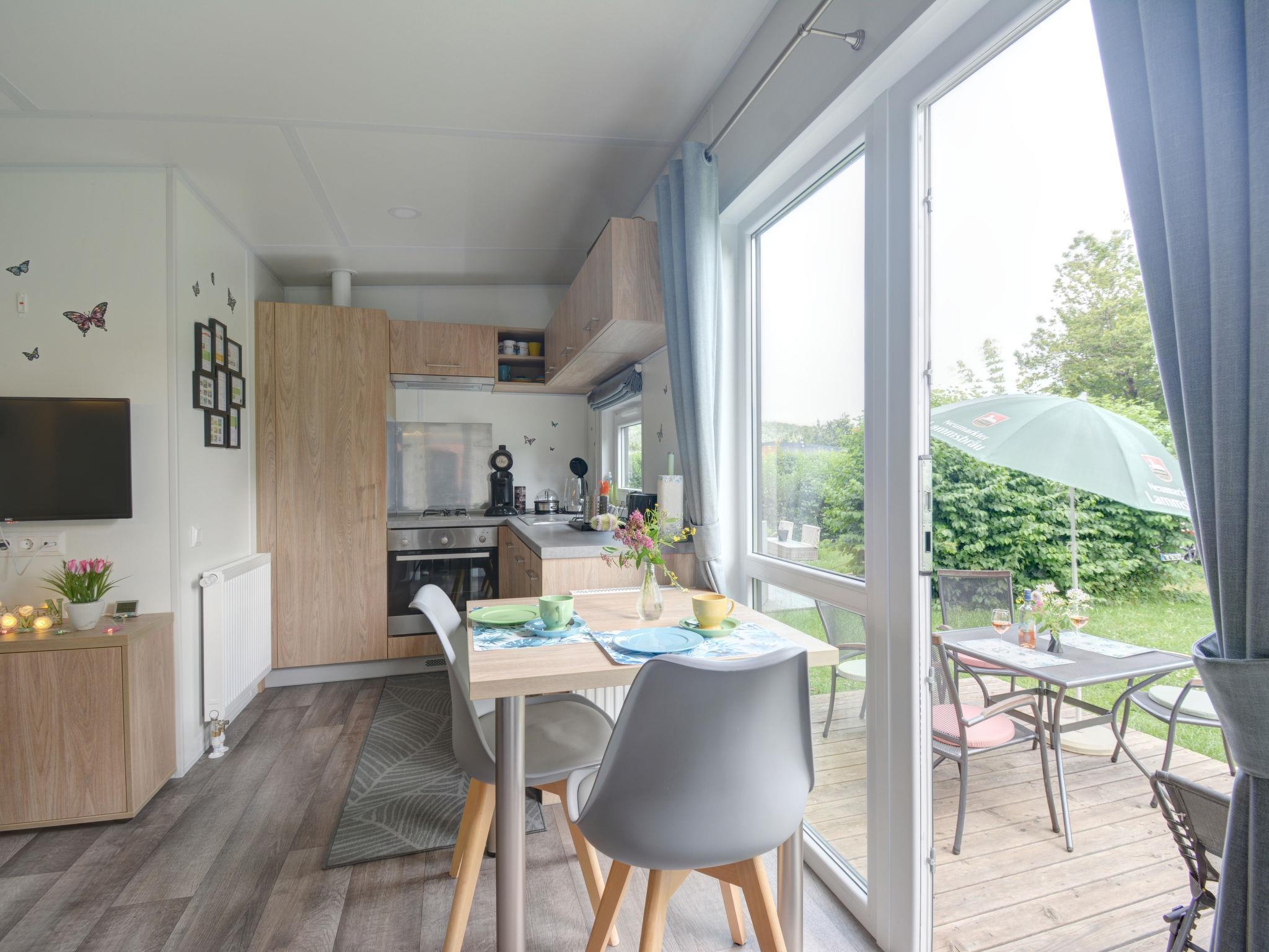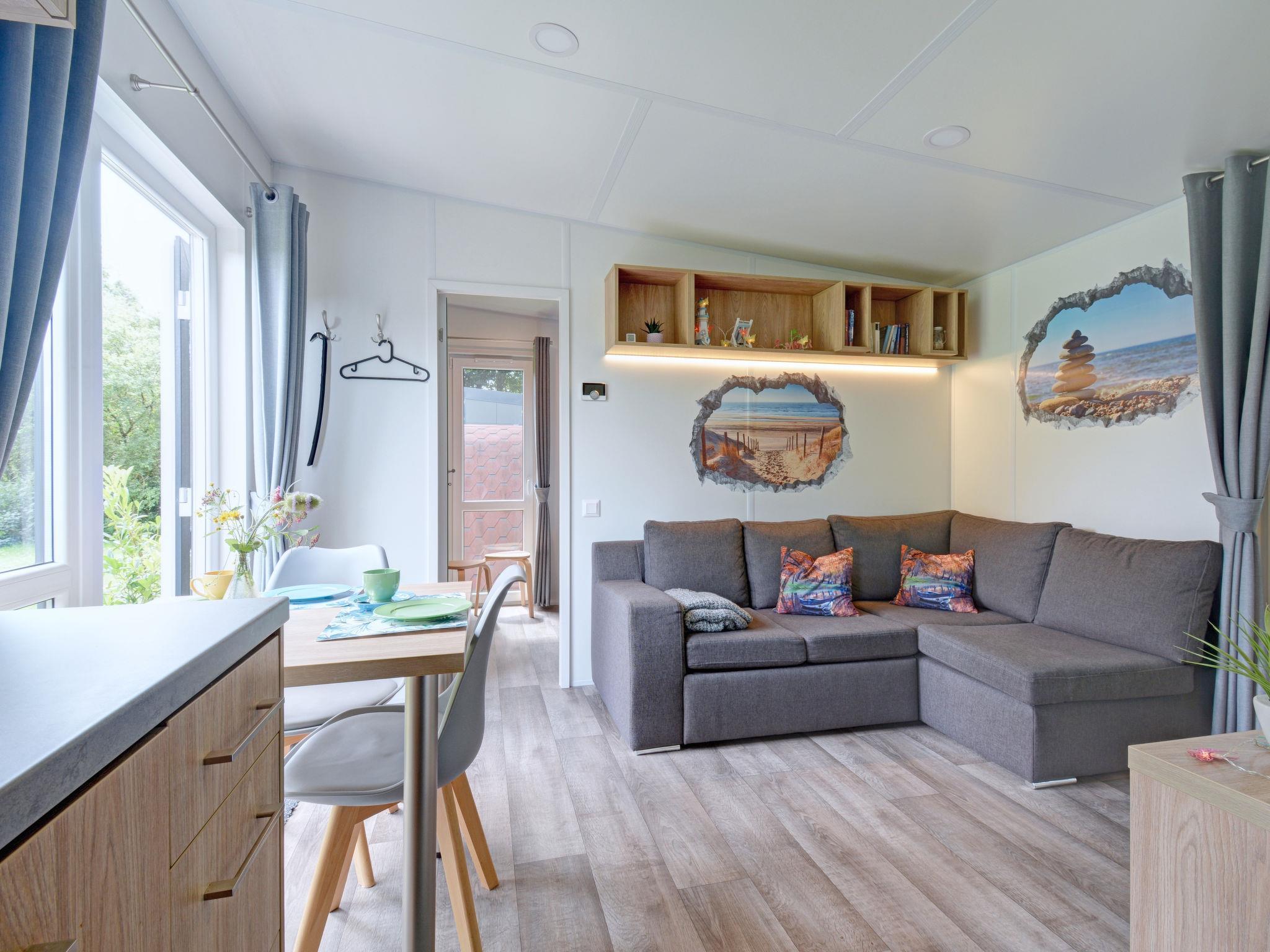 "Tiny Haus Anita", 2-room mobile home 25 m2. Object suitable for 2 adults + 2 children. Cosy furnishings: living/sleeping room with 1 sofabed (120 cm, length 170 cm), satellite TV. 1 room with 1 french bed (140 cm, length 200 cm). Open kitchen (oven, Gas stove, 2 gas rings, toaster, kettle, electric coffee machine). Shower/WC. Gas heating. Small terrace. Terrace furniture. Parking at 50 m. Please note: non-smoking house.