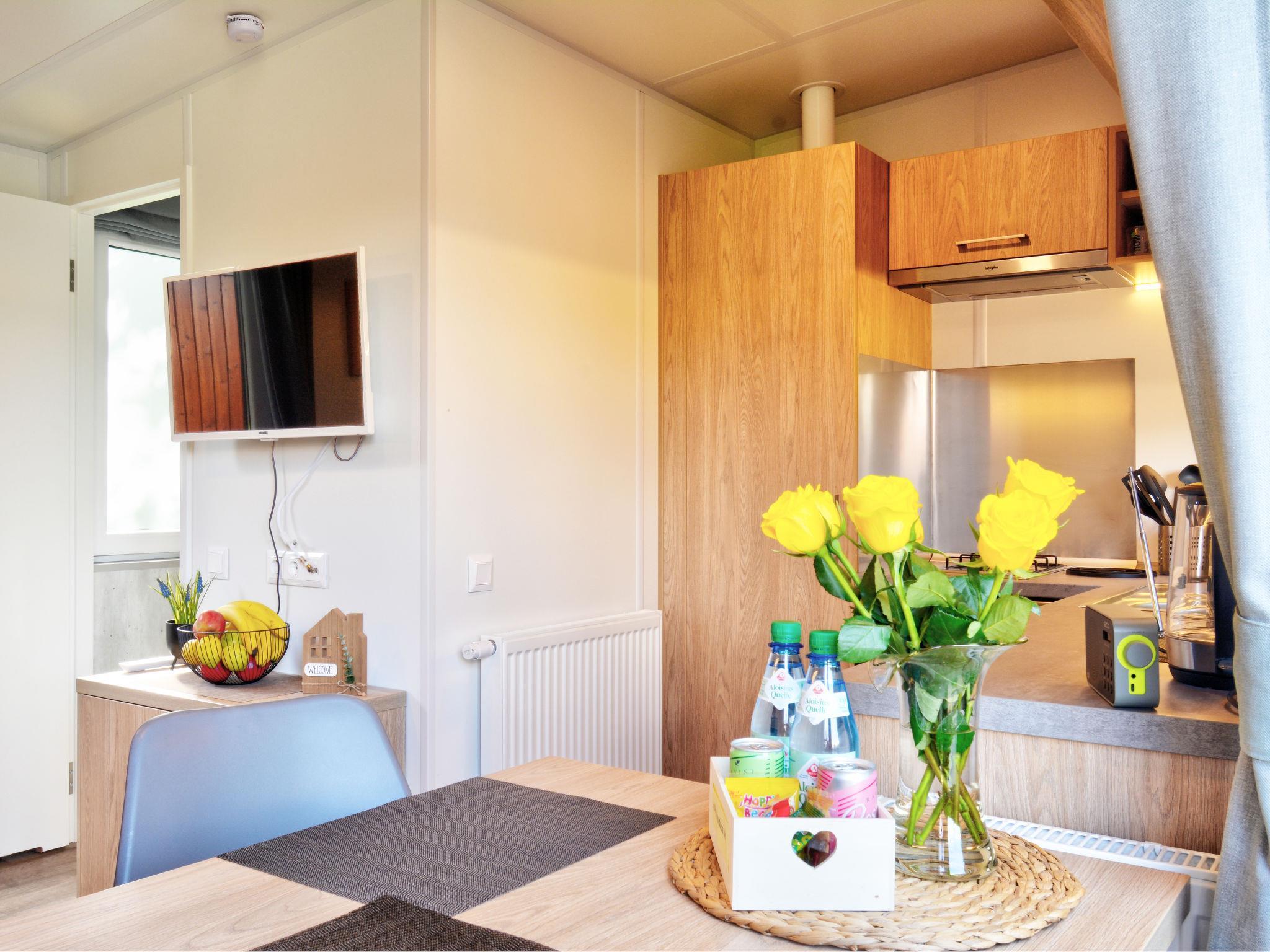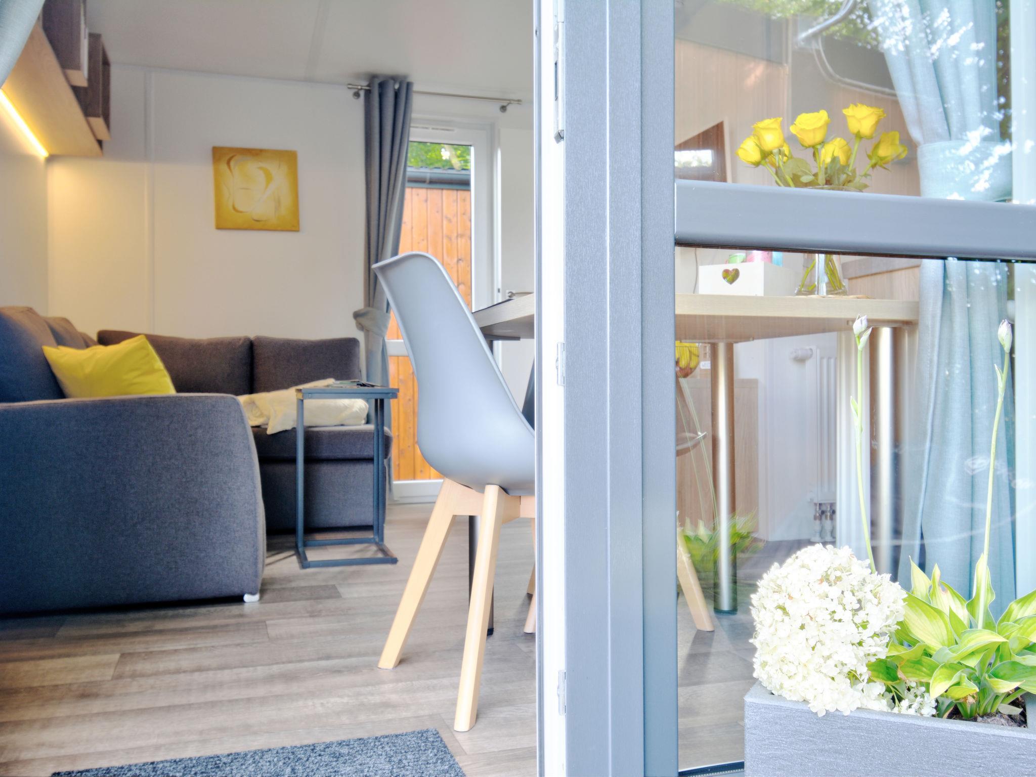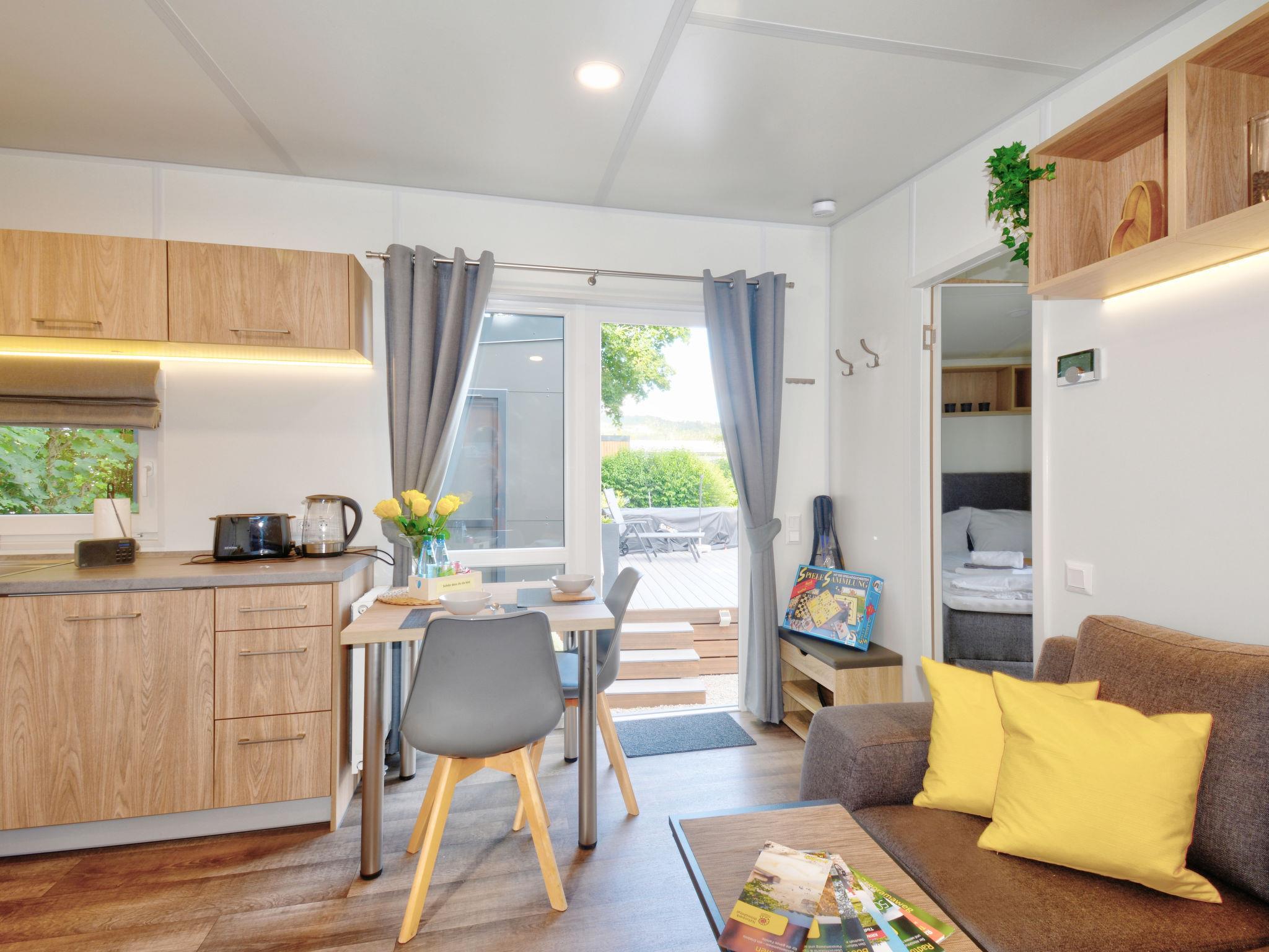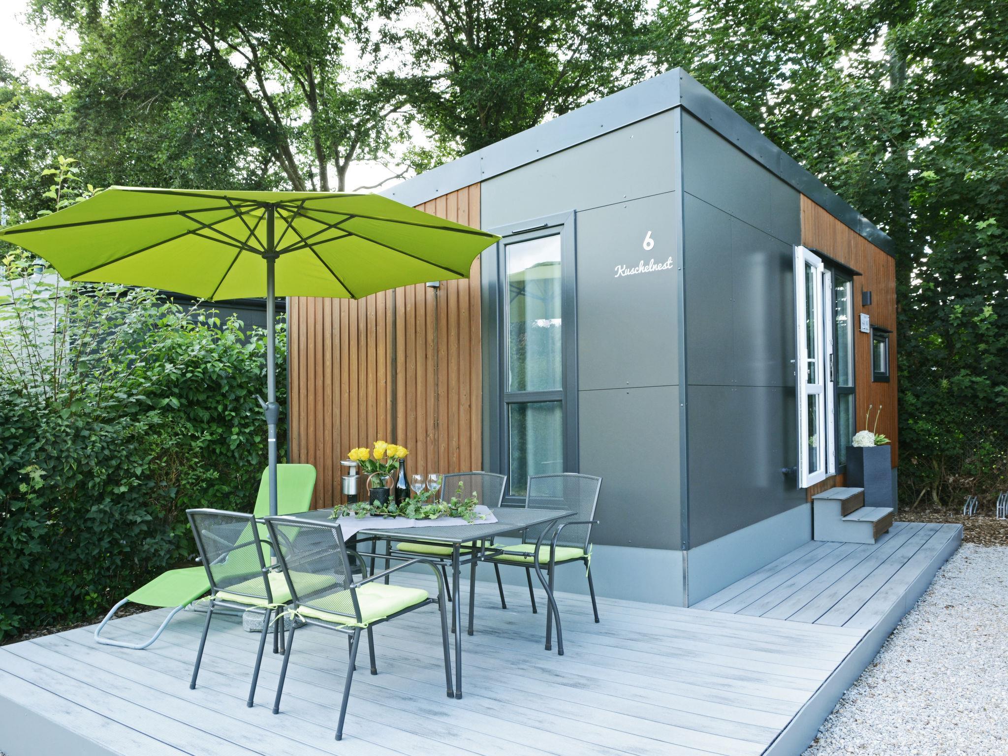 "Tiny Haus Kuschelnest", 2-room mobile home 25 m2. Object suitable for 2 adults + 2 children. Cosy furnishings: living/sleeping room with 1 sofabed (120 cm, length 170 cm), satellite TV. Exit to the terrace. 1 room with 1 french bed (140 cm, length 200 cm). Open kitchen (oven, Gas stove, 2 gas rings, kettle, electric coffee machine). Shower/WC. Gas heating. Terrace. Terrace furniture. Parking (1 car) at the house. Please note: non-smoking house. Maximum 1 pet/ dog allowed.