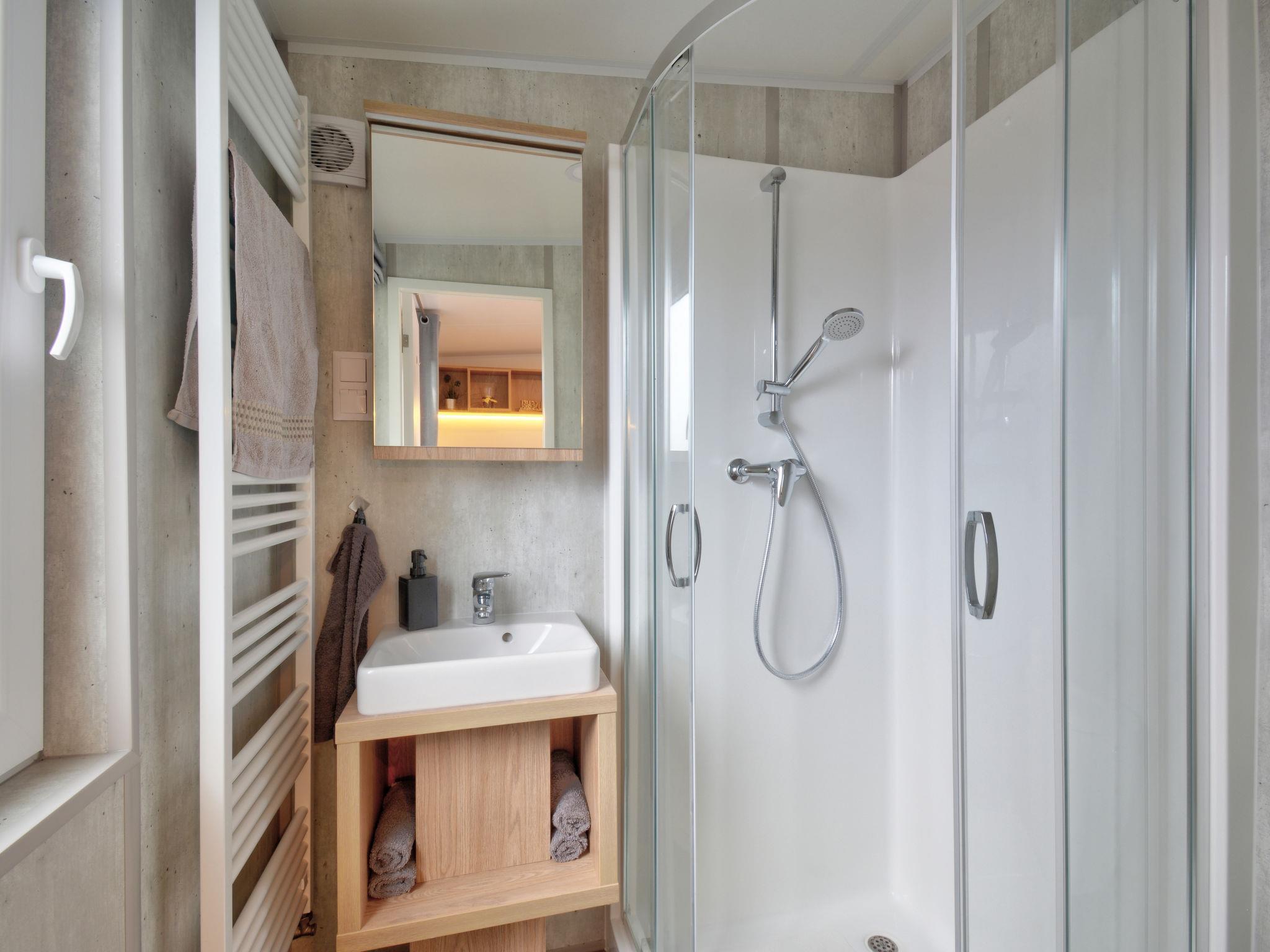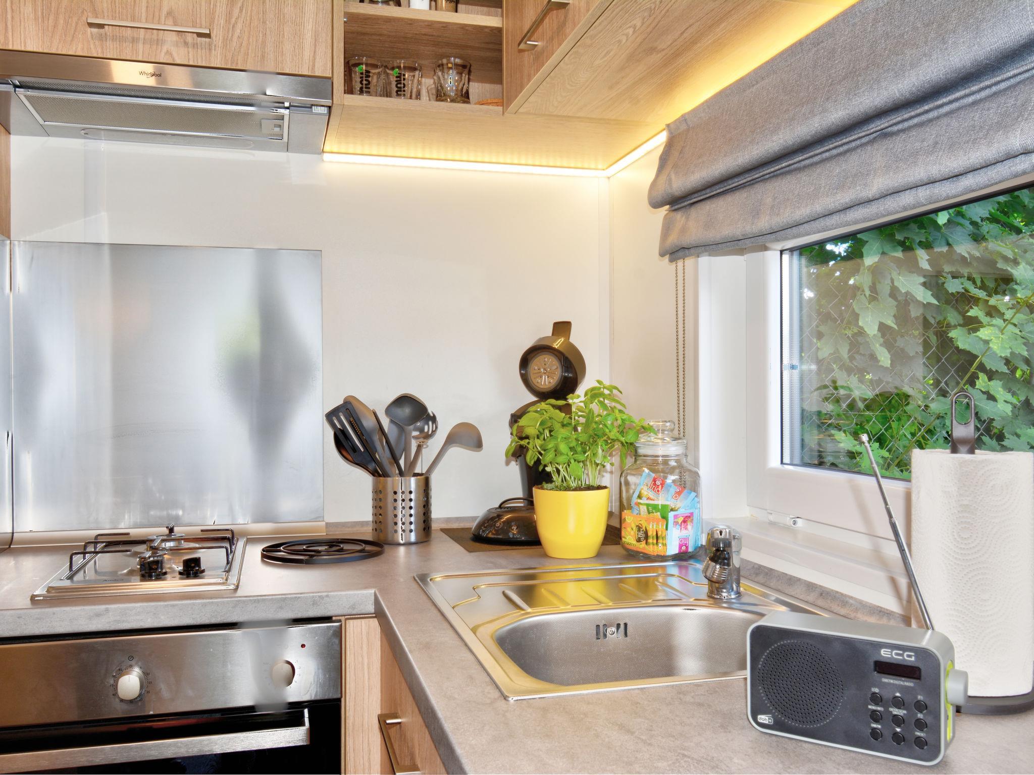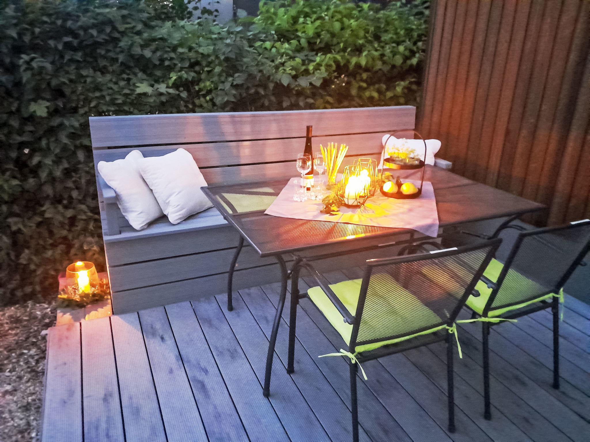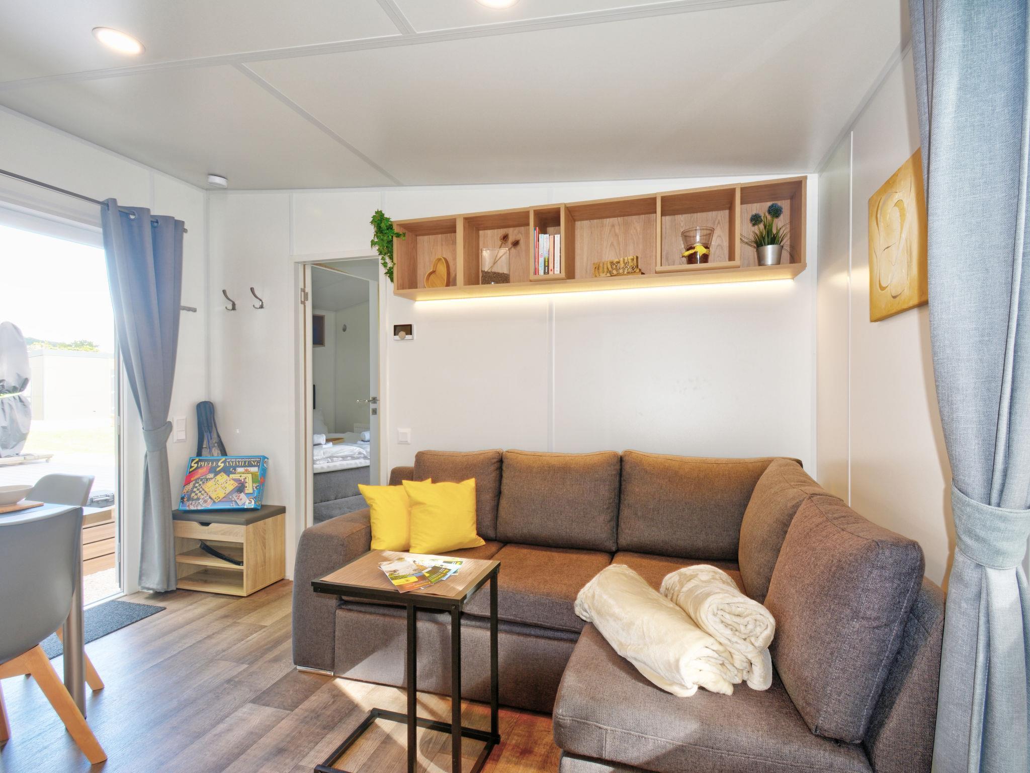"Tiny Haus Kuschelnest", 2-room mobile home 25 m2. Object suitable for 2 adults + 2 children. Cosy furnishings: living/sleeping room with 1 sofabed (120 cm, length 170 cm), satellite TV. Exit to the terrace. 1 room with 1 french bed (140 cm, length 200 cm). Open kitchen (oven, Gas stove, 2 gas rings, kettle, electric coffee machine). Shower/WC. Gas heating. Terrace. Terrace furniture. Parking (1 car) at the house. Please note: non-smoking house. Maximum 1 pet/ dog allowed.