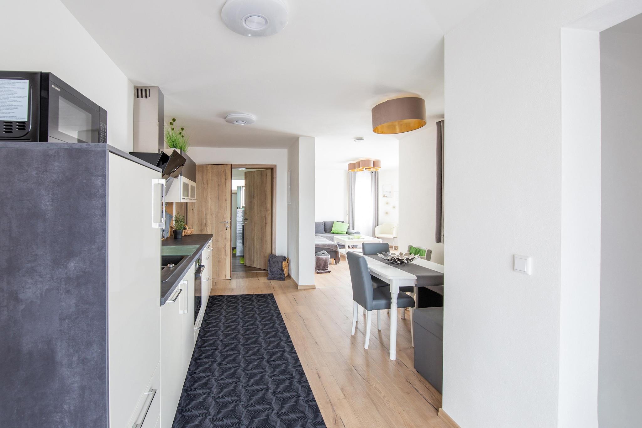 Denne kæledyrsvenlige lejlighed i stueetagen i Beilngries tilbyder et behageligt ophold for par eller små familier. Det har en lys stue med en enkelt sovesofa og fladskærms-tv, et veludstyret åbent køkken med ovn, mikroovn, opvaskemaskine og kaffemaskine samt et soveværelse med dobbeltseng og enkeltseng samt en børneseng. Badeværelset har bruser, og en privat terrasse med havemøbler inviterer gæster til at slappe af udendørs. Gæsterne kan nyde godt af gratis trådløs internetadgang, centralvarme, en høj stol og privat parkering. Indretningen er funktionel og familievenlig, ideel til både korte og længere ophold. Uanset om du nyder en stille aften indendørs eller spiser al fresco, forener denne lejlighed enkelhed med komfort. I nærheden kan du udforske det majestætiske Schloss Hirschberg, slentre langs den naturskønne Altmühl-flodpromenade eller besøge det interaktive Dinosaurier Museum Altmühltal. Historieelskere vil nyde det romerske og Baju Ware Museum i Kipfenberg. Til spisning kan du prøve Wirtshaus zur Mauth for bayerske klassikere, Der Millipp for regionale specialiteter eller Asia Landhaus for pan-asiatiske smagsoplevelser.
