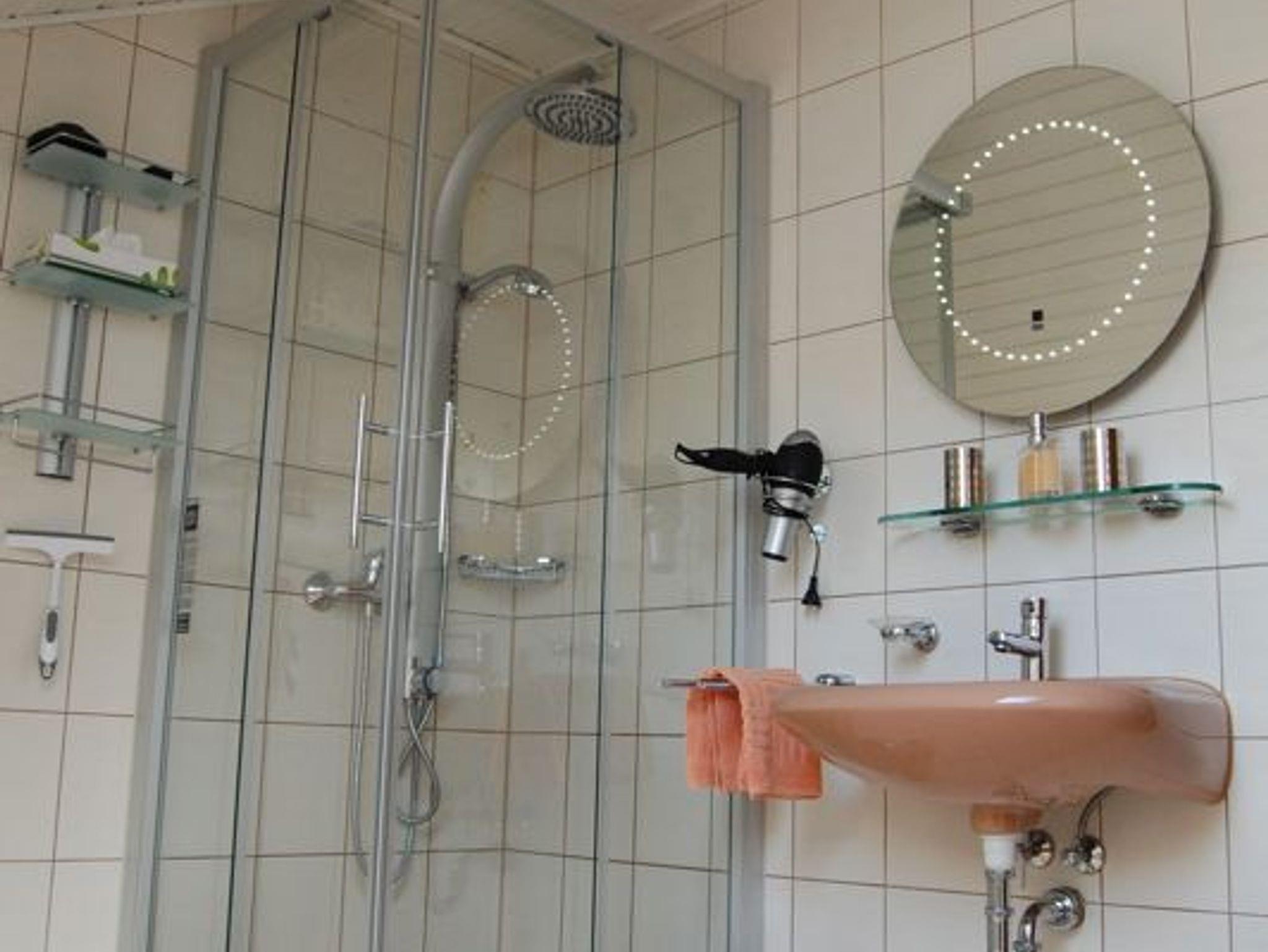 Die Wohnung besitzt ein schönes, großes Duschbad mit Dusche, WC und Waschbecken.