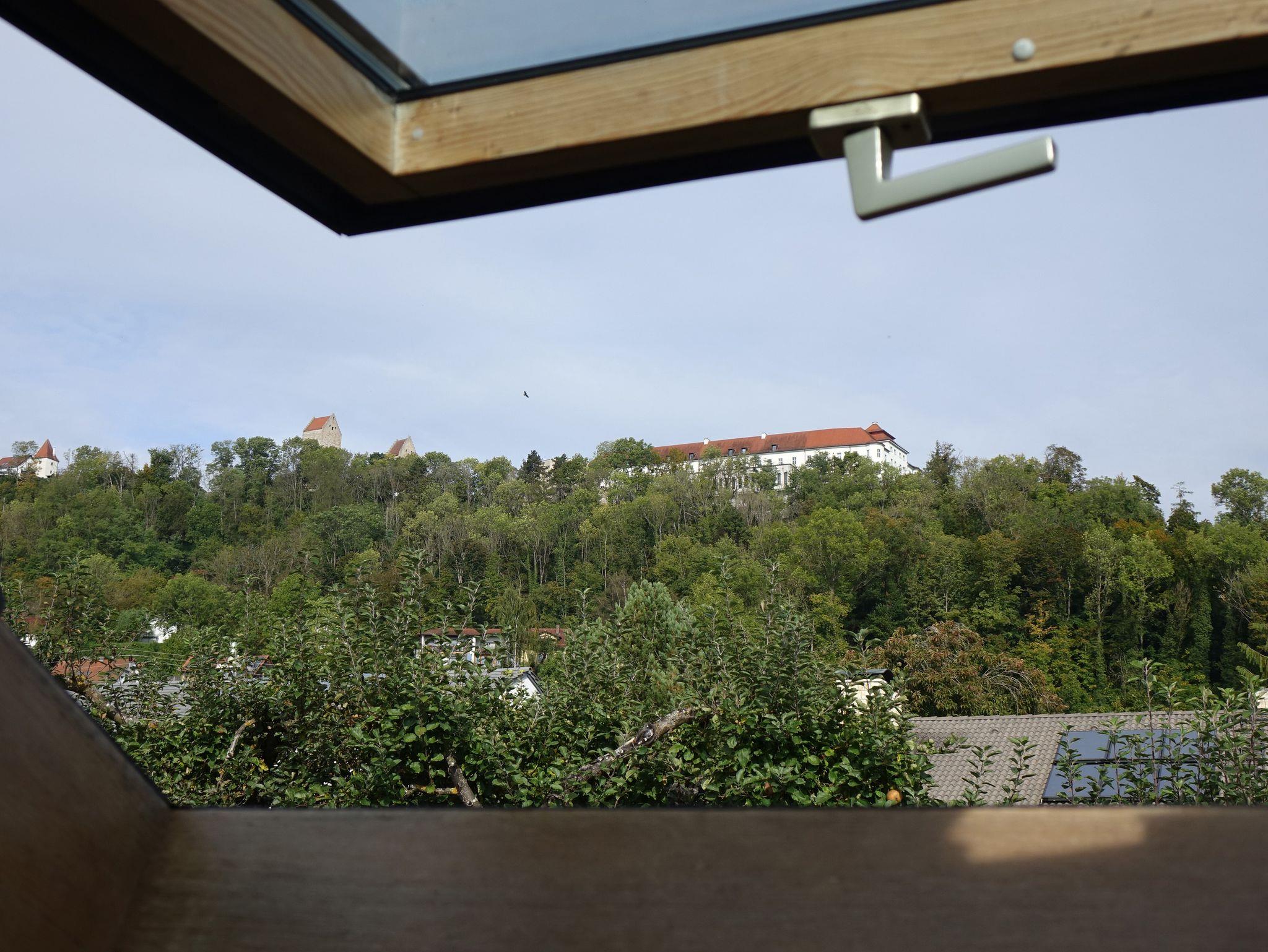 Genießen Sie das heimelige Flair eines Dachstudios. Vom Badfenster aus entdecken Sie Schloss Hirschberg, das hoch über Beilngries liegt. Aufgrund der leichten Hanglage können Sie vom Frühstückstisch aus bereits den Blick über die von Waldhängen umgebene Stadt schweifen lassen. Balkonliebhaber können den eingezogenen, weit überdachten und windgeschützten Freisitz zu jeder Jahreszeit nutzen. Frühstücken mit der Morgensonne impliziert die besondere Lage nach Osten.