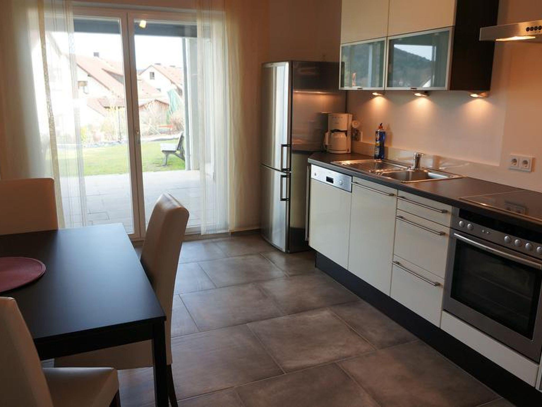 Die Küche ist neben dem Essbereich mit einer modernen Einbauküche ausgestattet. Ausreichend Geschirr, Besteck und Töpfe sowie eine Geschirrspülmaschine und eine große Kühlgefrierkombination sind vorhanden. Kaffeemaschine, Wasser- und Eierkocher sind ebenfalls vorhanden.
