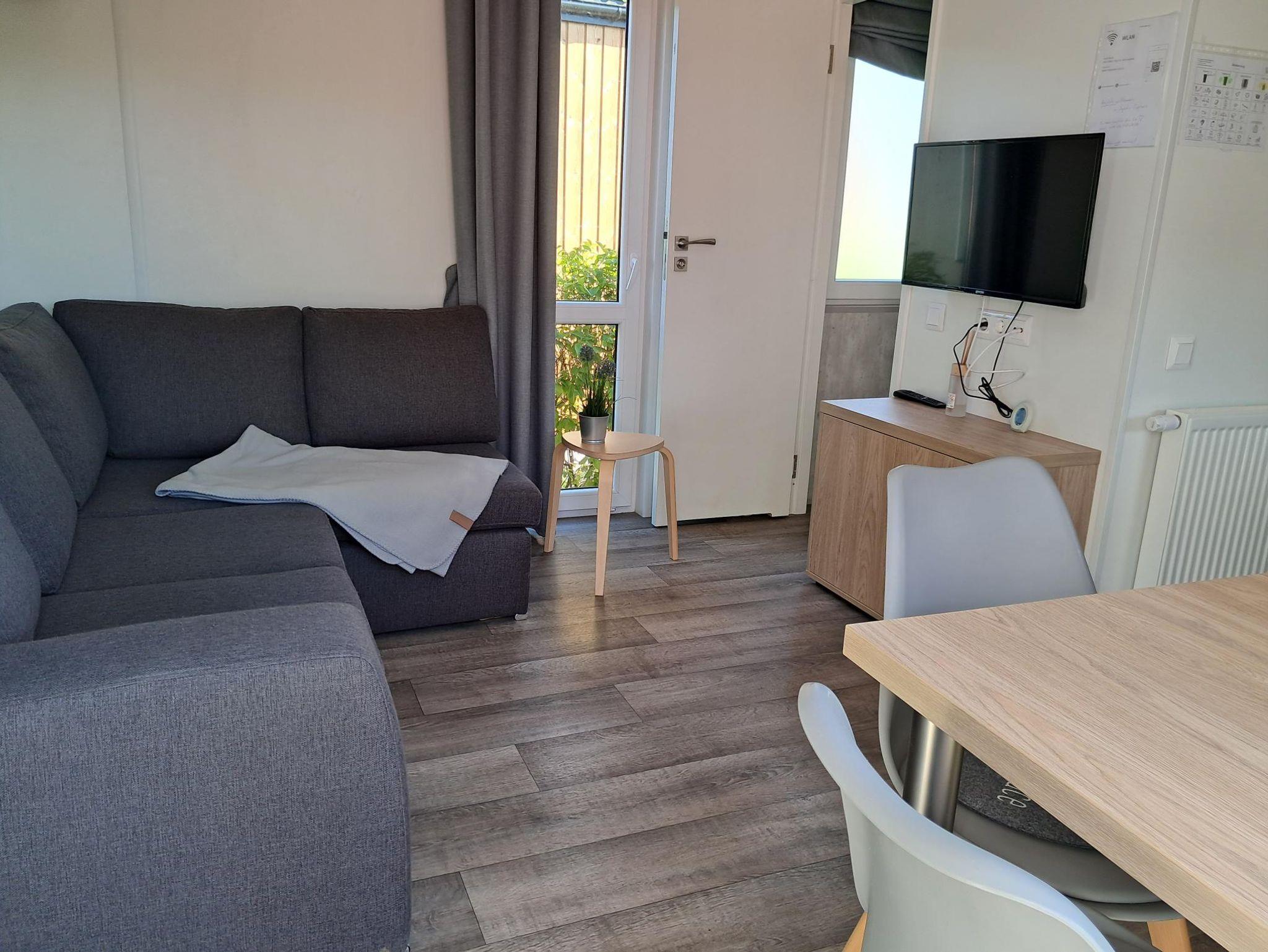 Unser Neues schönes Tinyhouse bietet Platz für 2 Erwachsene u. 2 Kinder. Das gemütliche Wohnzimmer mit Schlafsofa u. Flachbild TV lädt zum Verweilen ein. Die Küche ist komplett ausgestattet, mit Kühlschrank incl Gefrierfach, Gasherd mit Backofen, Microwelle, Wasserkocher, Toaster u. Kaffeemaschine