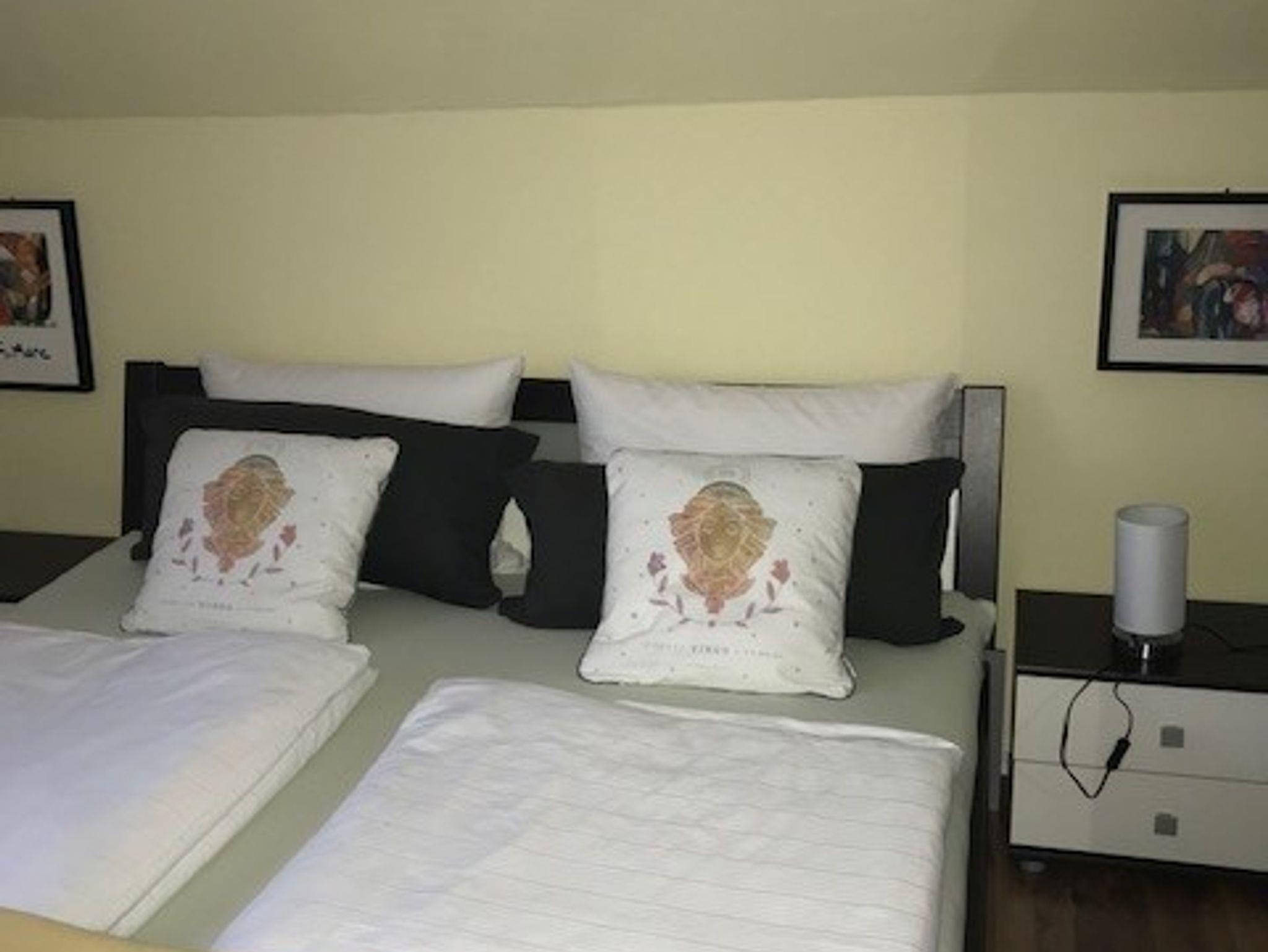 Die exklusiv ausgestattete, schöne Ferienwohnung in ruhiger und sonniger Lage bietet einen schönen Fernblick. Auf einer Fläche von 76m² bietet die Wohnung Platz für bis zu 4 Personen. Die zwei Schlafzimmer sind jeweils mit einem Doppelbett ausgestattet. Im großen Wohnzimmer befindet sich ein Essplatz, Sat-TV, 55 Zoll Fernseher, Radio und W-lane. Die voll ausgestattete Küche mit Waschmaschine, Spülmaschine, Backofen, Kühlschrank mit Eisfach und Kaffeemaschine, Eierkocher und elektrische Brotschneidemaschine lässt keine Wünsche offen. Das Badezimmer mit Dusche, Handtuchtrockner und WC rundet das Gesamtbild ab. In der eigene Gartenecke mitverschiedenen Gartenmöbeln und Gartenschirm, Grill sowie Liegewiese können Sie entspannte Stunden verbringen. Es handelt sich um eine Nichtraucherwohnung. Haustiere sind nicht erlaubt. Parkplätze befinden sich direkt vor dem Haus. Ein großes Gartenhaus mit Steckdosen für mehrere E-Biks und sonstige Räder ist vorhanden.