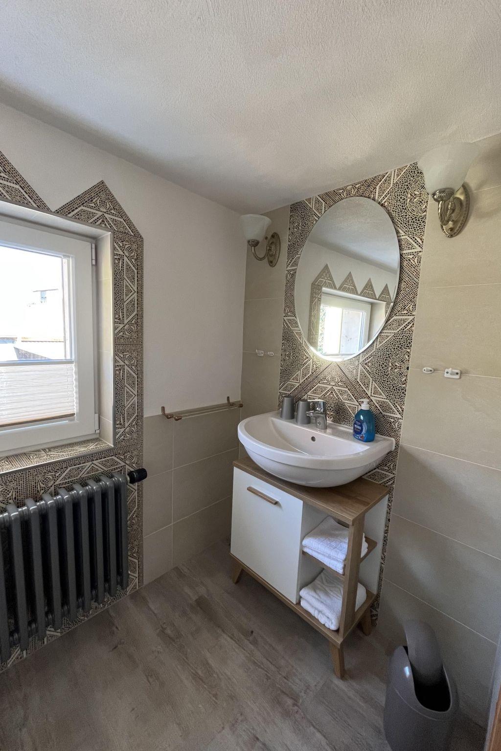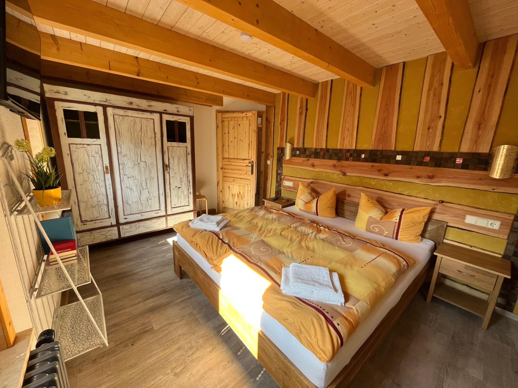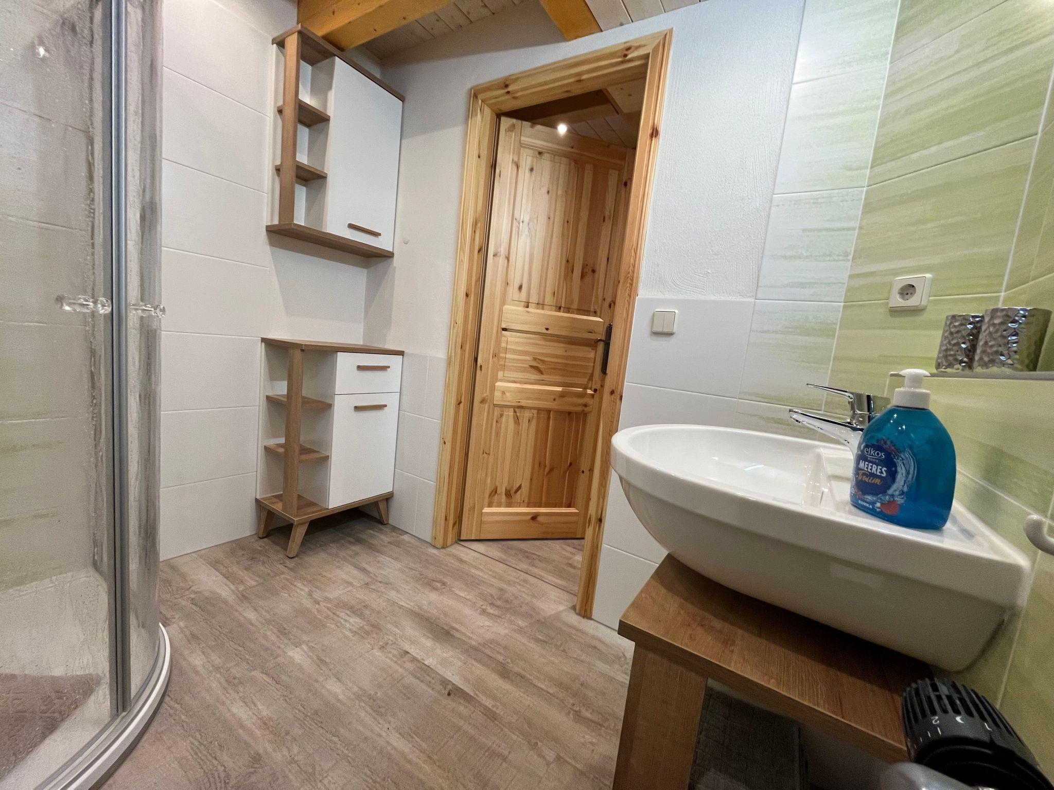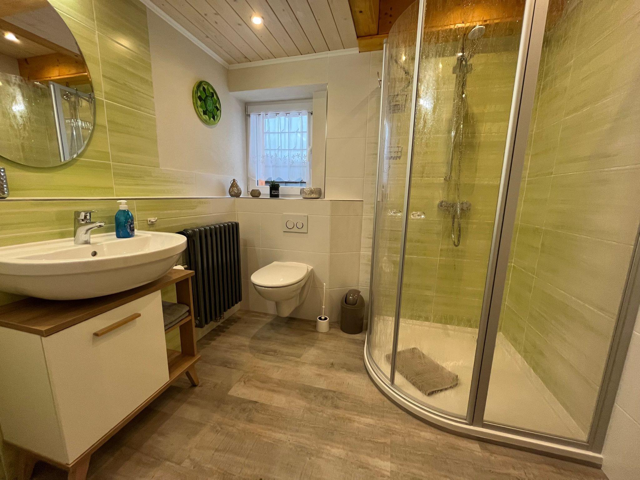There is only this one holiday flat in the house, so you will not be disturbed by any other guests and can use the house and property for yourself. The holiday flat has two floors. On the ground floor there is a living room, dining room, kitchen, shower/WC and hallway. The living and dining areas are open to the kitchen. The living room facing south or the street is dominated by a cosy sitting area with a couch, armchair and small table, the area is completed with satellite TV, radio and playback facilities for CDs and DVDs and a wood-burning stove, which is appreciated by guests in the winter months for cosy evenings. CDs, DVDs, books, board games and information material on the sights of the Harz are a welcome change on relaxing evenings, a rainy day or to get you in the mood for the next day of your holiday. A large dining table with comfortable chairs and a dining bench for 6 people and a restored vertico are located in the dining room, which is situated between the living room and kitchen. The open-plan kitchen includes a spacious kitchenette with a 4-burner ceramic hob and sink, as well as a fridge with freezer compartments, a microwave with baking function, dishwasher, coffee machine, toaster and kettle. Of course, you will also find plenty of crockery, glasses, cutlery, pots and pans, as well as tea towels and additional storage space for your food. On this level you will also find one of 3 bathrooms, which is equipped with a shower, washbasin, toilet and washing machine. Through the hallway you reach the upper floor (1st floor) via an equally new staircase. There are 3 bedrooms here. As this is a very old house, it was unfortunately not possible to raise all the ceilings as part of the refurbishment, so the ceiling heights vary between 2.00 m and 2.30 m. One bedroom is located on the south or street side and is furnished with a double bed (180 x 200), bedside cabinet and a 3-door wardrobe with built-in safe. A further bedroom with double bed (180 x 200) and 2-door wardrobe with built-in wardrobe safe, armchair and small table is located on the north or courtyard side. This bedroom has a separate bathroom with WC and washbasin. The third bedroom has two single beds and a small wardrobe. On this floor there is another bathroom with shower, toilet and washbasin, so that there are 2 showers and 3 toilets in the whole house. In the hallway there is another chest of drawers for your personal belongings and a small cupboard safe. There is satellite TV and WLAN in all three bedrooms.