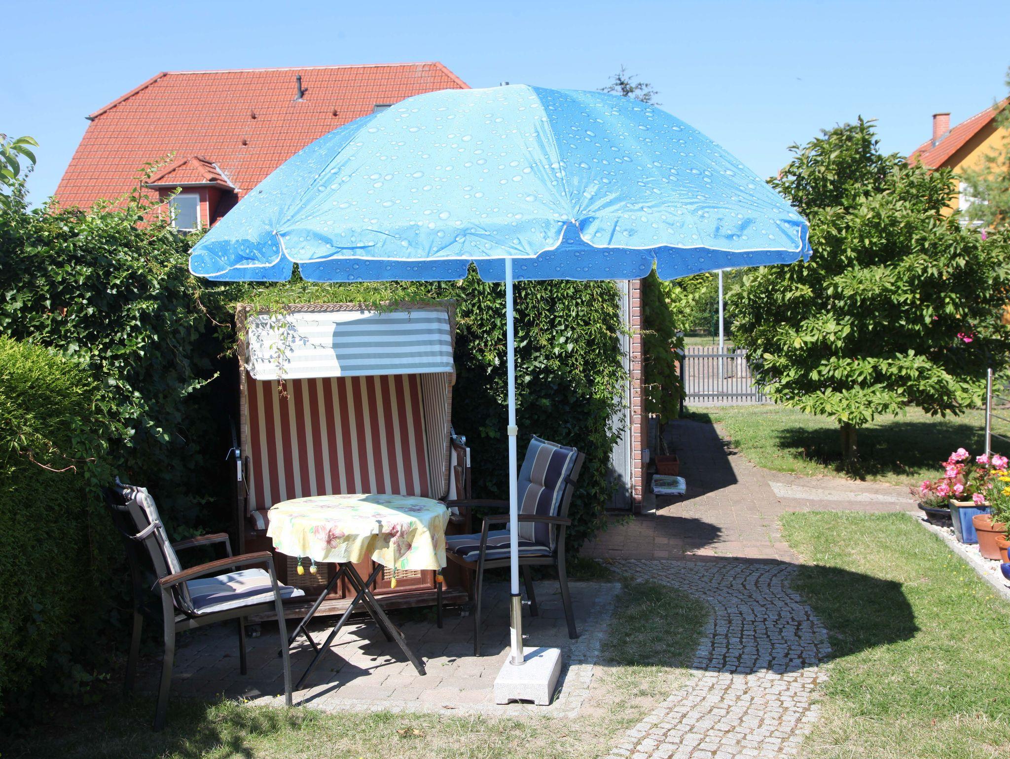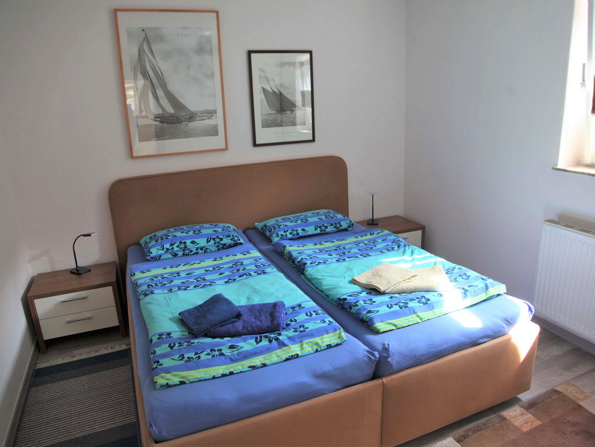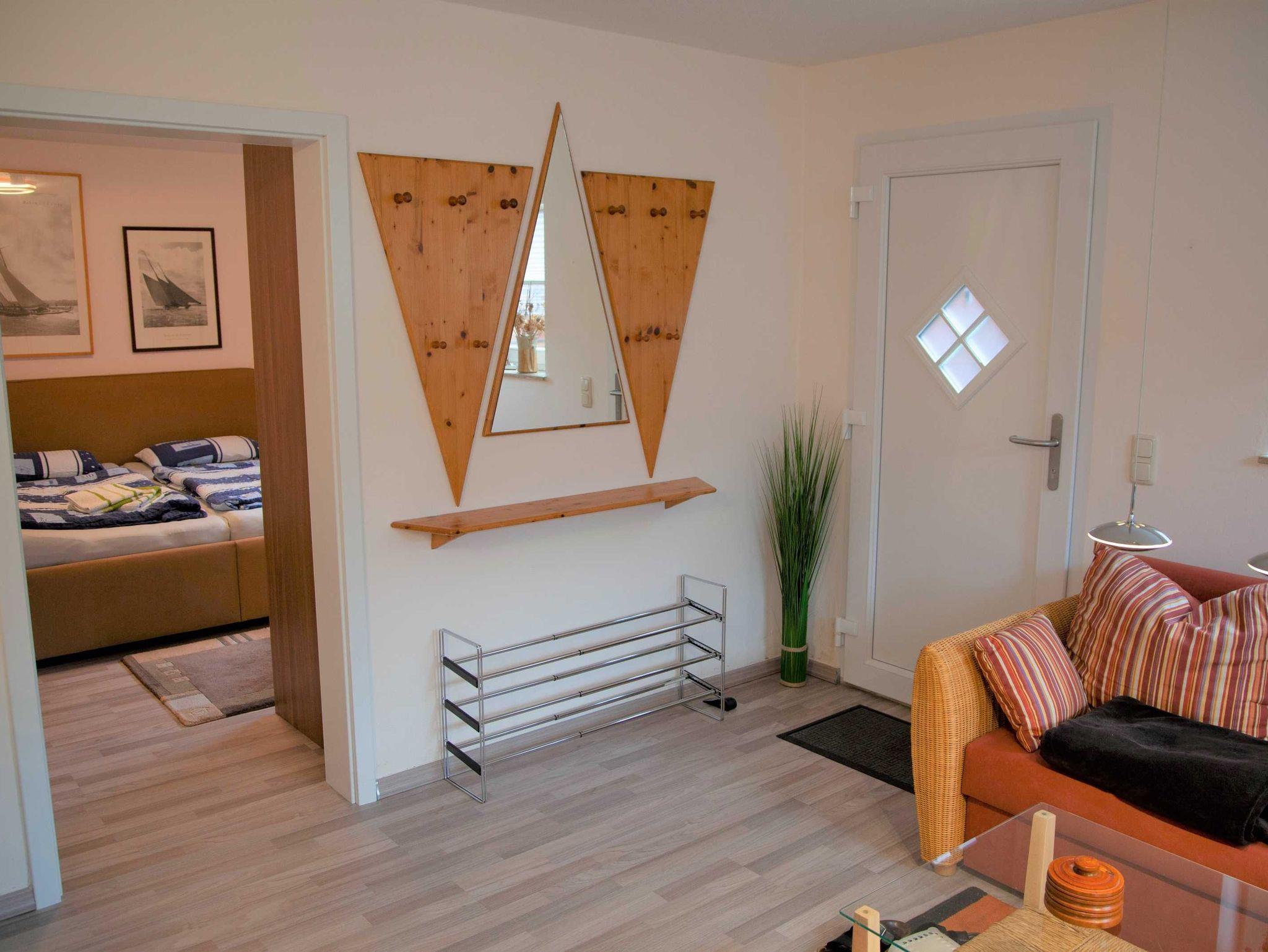 Die ruhige, moderne 2-Raum-Nichtraucherferienwohnung ist für bis zu 3 Personen geeignet. Sie verfügt über ein Wohnzimmer mit gemütlicher Couch (Aufbettungsmöglichkeit 3. Person), LED-Flat-TV, CD/DVD_Player, Radio und einem Hochtisch mit 3 Barstühlen als Essgelegenheit. Die offene Küche ist mit einem zweiflammigen Ceranfeld, Kühlschrank mit Tiefkühlfach, Kaffeemaschine, Wasserkocher, Mikrowelle und Toaster ausgestattet. Das separate Schlafzimmer erwartet Sie mit einem Doppelbett und einem großen Kleiderschrank für Ihre Urlaubsgarderobe. Das moderne Badezimmer ist mit Dusche/WC, Waschtisch und Haartrockner ausgestattet. Auf dem Grundstück steht Ihnen eine sonnige Terrasse mit eigenem Strandkorb, Gasgrill und Sonnenschirm zur Verfügung, um gemütliche Abende zu verbringen. WLAN ist kostenfrei vorhanden.