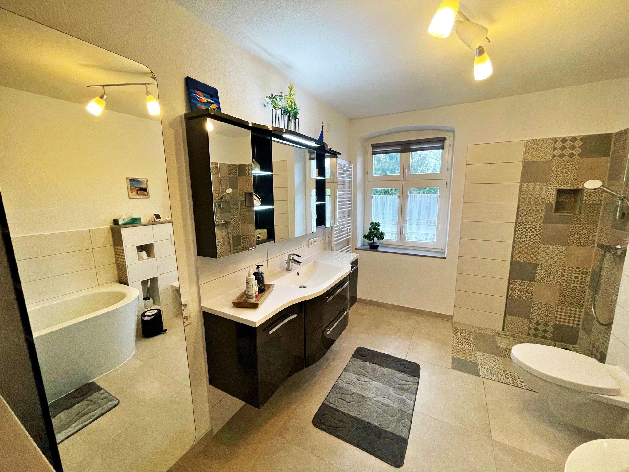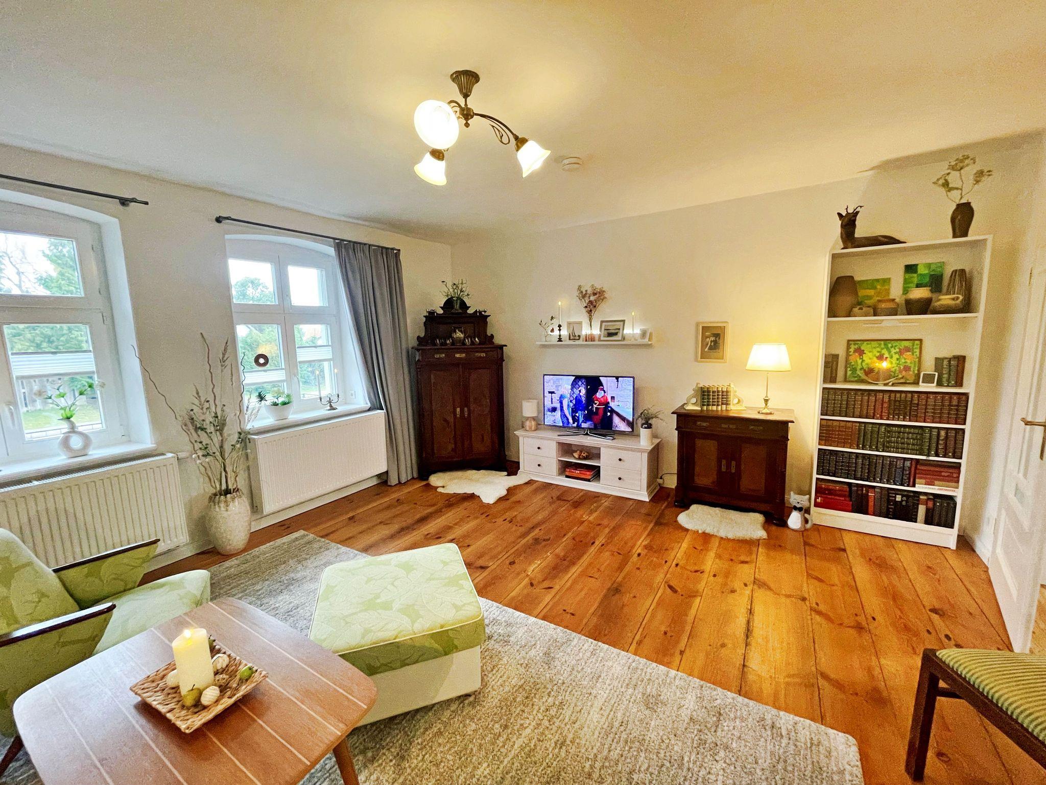 Herzlich willkommen in dieser charmanten Doppelhaushälfte! Die ca. 70 qm große Unterkunft bietet Platz für maximal 2 Personen und befindet sich auf einem großzügigen 2000 qm großen Grundstück, das Ihnen zur alleinigen Nutzung zur Verfügung steht. Das ehemalige Bauernhaus aus dem 19. Jahrhundert wurde im Jahr 2021 liebevoll kernsaniert und hochwertig ausgestattet, um Ihnen einen komfortablen Aufenthalt zu ermöglichen. Die Ferienwohnung verfügt über ein separates Schlafzimmer, ein gemütliches Wohnzimmer, eine voll ausgestattete Küche sowie ein Badezimmer mit Dusche, Badewanne und WC. Über den Flur gelangen Sie direkt in die einladende Küche, die mit einem großen Essplatz, einem Kamin und einem Fernseher ausgestattet ist. Von hier aus haben Sie Zugang zu den weiteren Räumen. Das großzügige Wohnzimmer lädt mit einer behaglichen Sitzecke und einem Kachelofen zum Entspannen ein. Das Schlafzimmer bietet Ihnen nicht nur ein komfortables Doppelbett und einen großen Kleiderschrank, sondern auch einen direkten Zugang zur Terrasse und zum Garten. Im Badezimmer finden Sie eine Waschmaschine, eine Dusche und eine Badewanne - ideal für entspannte Momente. Genießen Sie die überdachte und möblierte Terrasse, nutzen Sie die Grillmöglichkeiten oder parken Sie bequem auf dem bereitgestellten Parkplatz. WLAN steht Ihnen ebenfalls zur Verfügung. Für Ihre Erkundungstouren in der Umgebung stehen zwei Fahrräder kostenfrei zur Verfügung. Die Erstausstattung mit Bettwäsche und Handtüchern ist selbstverständlich ebenfalls kostenfrei.