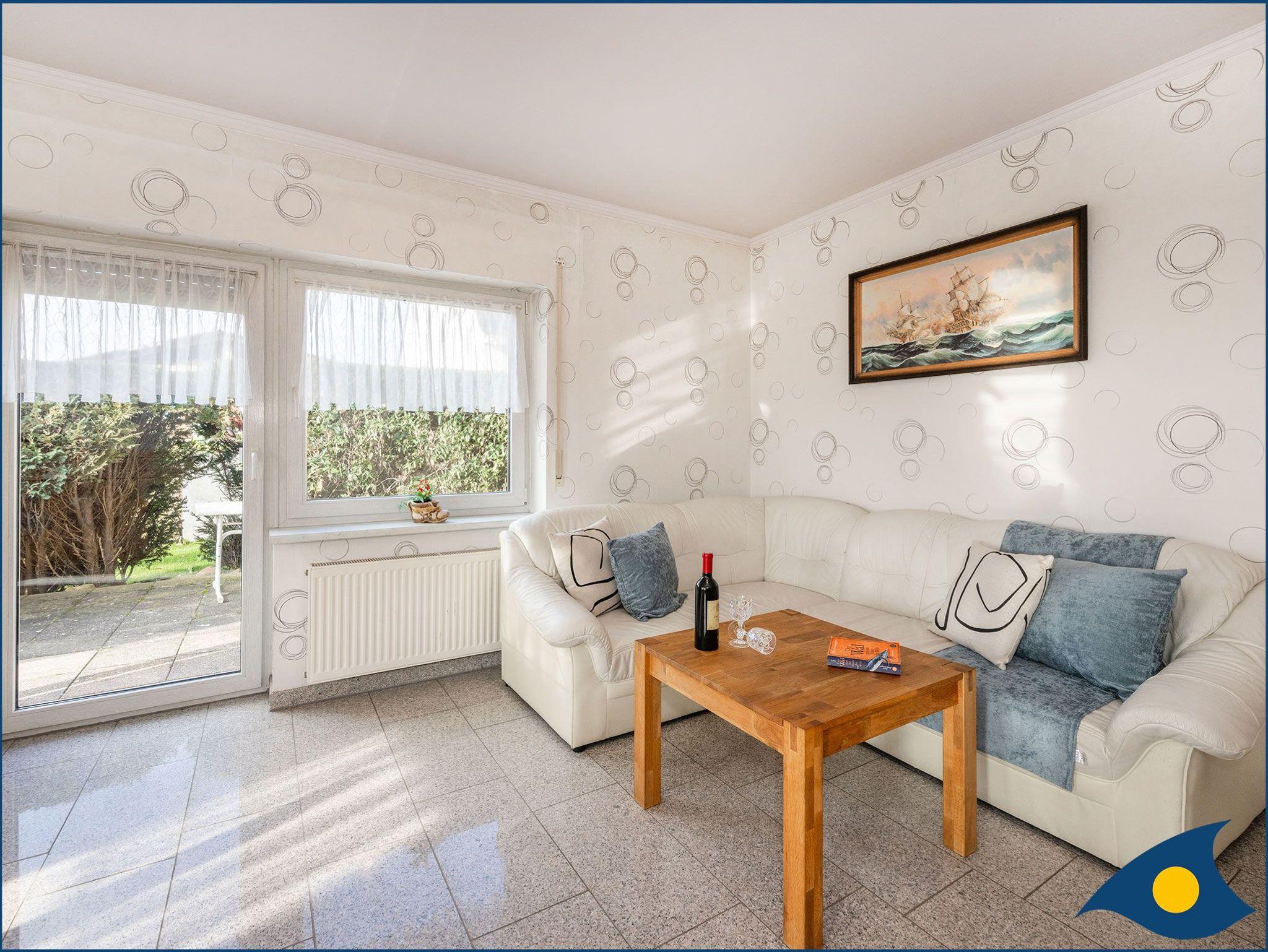 Neben dem großzügigen Eingangsbereich, begrüßt Sie ein großes lichtdurchflutetes Wohnzimmer mit einer gemütlichen Couchecke und einem Essbereich. Von hier aus gelangen Sie auf die Sonnenterrasse mit Strandkorb, auf der Sie den Tag verbringen und die Abende ausklingen lassen können.