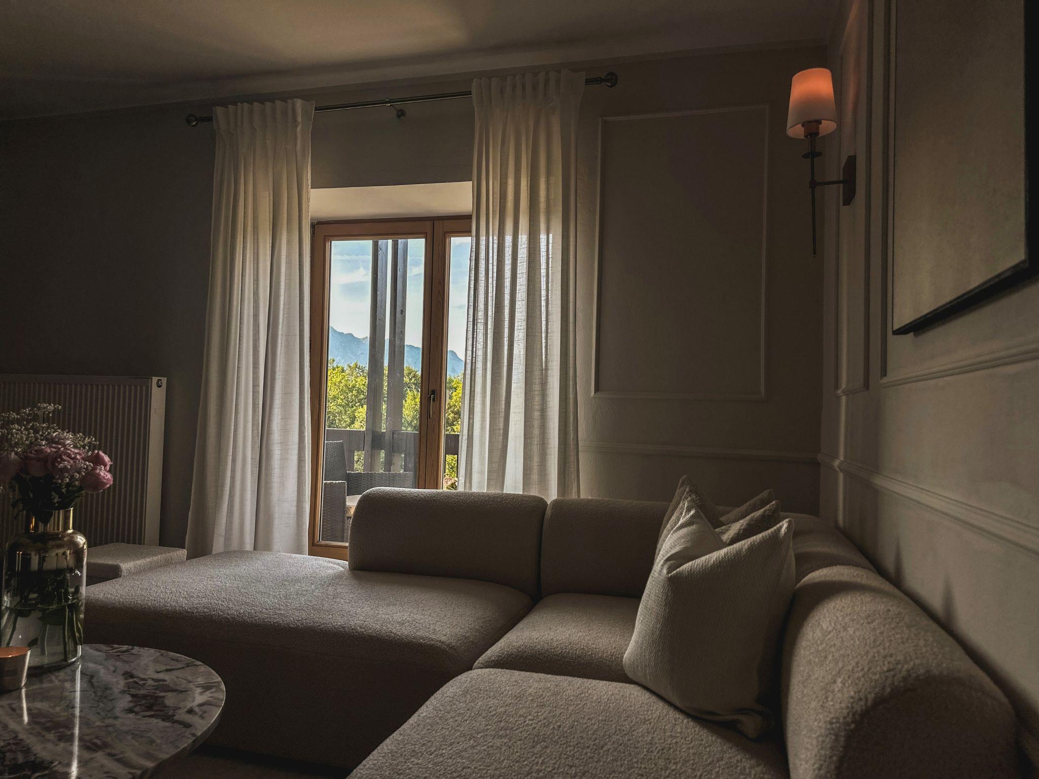 "Am Obersalzberg", 2-room apartment 70 m2 on 1st floor. Luxurious and stylish furnishings: living/dining room with dining table and digital TV. Exit to the balcony. Kitchen (dishwasher, 4 ceramic glass hob hotplates, toaster, kettle, microwave, electric coffee machine) with small dining table. Shower/WC. Heating. Balcony. Balcony furniture. Very beautiful panoramic view of the mountains. Facilities: washing machine. Internet (WiFi, free). Parking (1 car) at the house. Please note: non-smokers only. Smoke alarm, fire extinguisher. Internet Smart-TV.