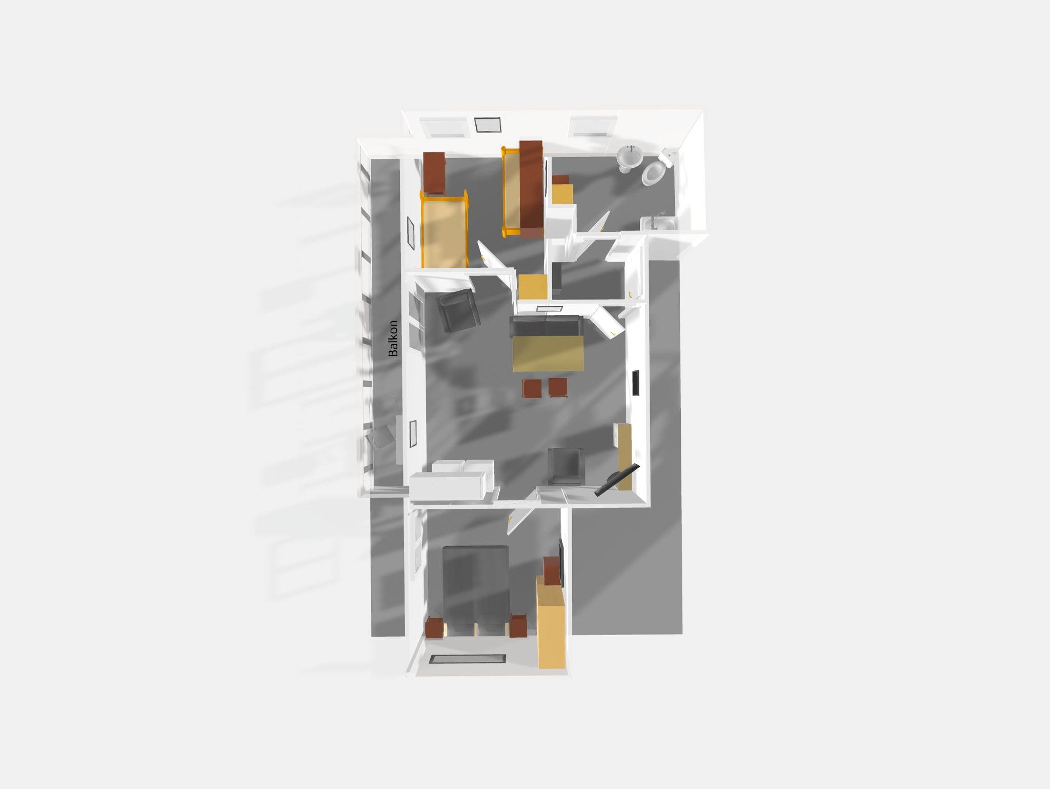 Diese komfortable Ferienwohnung verfügt über zwei getrennte Schlafzimmer und einem Balkon in ruhiger Lage. Das angenehme Ambiente der Ferienwohnung lädt dazu ein den Aufenthalt zu genießen und sich richtig wohl zu fühlen. Die hochwertige Ausstattung bestehend aus Koch- und Essgeschirr, Besteck, Gläser, Bettwäsche und Handtücher sind in ausreichender Zahl vorhanden. Kaffeemaschine (Filter), Wasserkocher, Eierkocher, Toaster und Putzutensilien runden das Angebot ab. Babybett und Hochstuhl auf Anfrage möglich. Nichtraucherwohnung; Rauchen am Balkon gestatett. Keine Haustiere möglich.