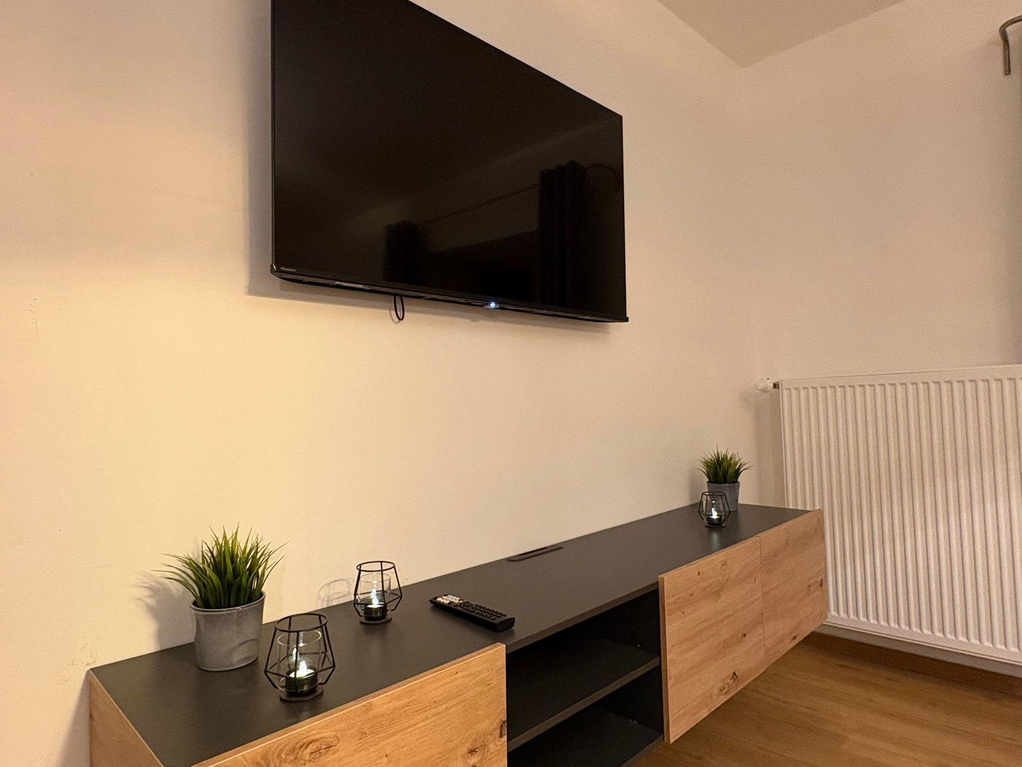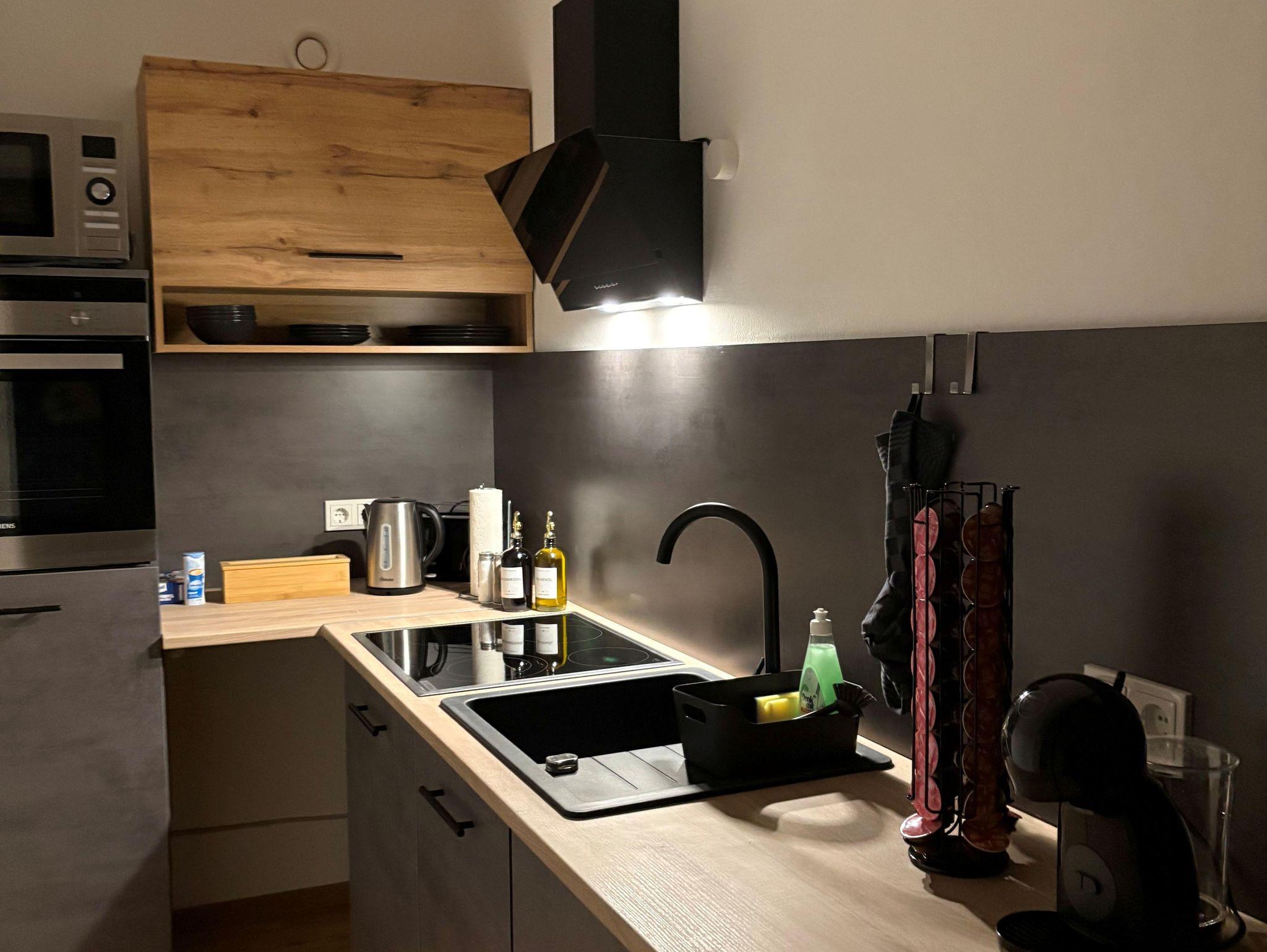 Unser modernes Serviced Apartment besteht aus einem Wohn-, Schlaf- und Essbereich mit Boxspringbett 180x200, einem großen Smart-TV, einem Badezimmer mit Dusche, WC, inkl. Hygieneartikeln, einer vollausgestatteten Küchenzeile, sowie einem geräumigen Sonnenaufgangs-Balkon der zum Verweilen einlädt.