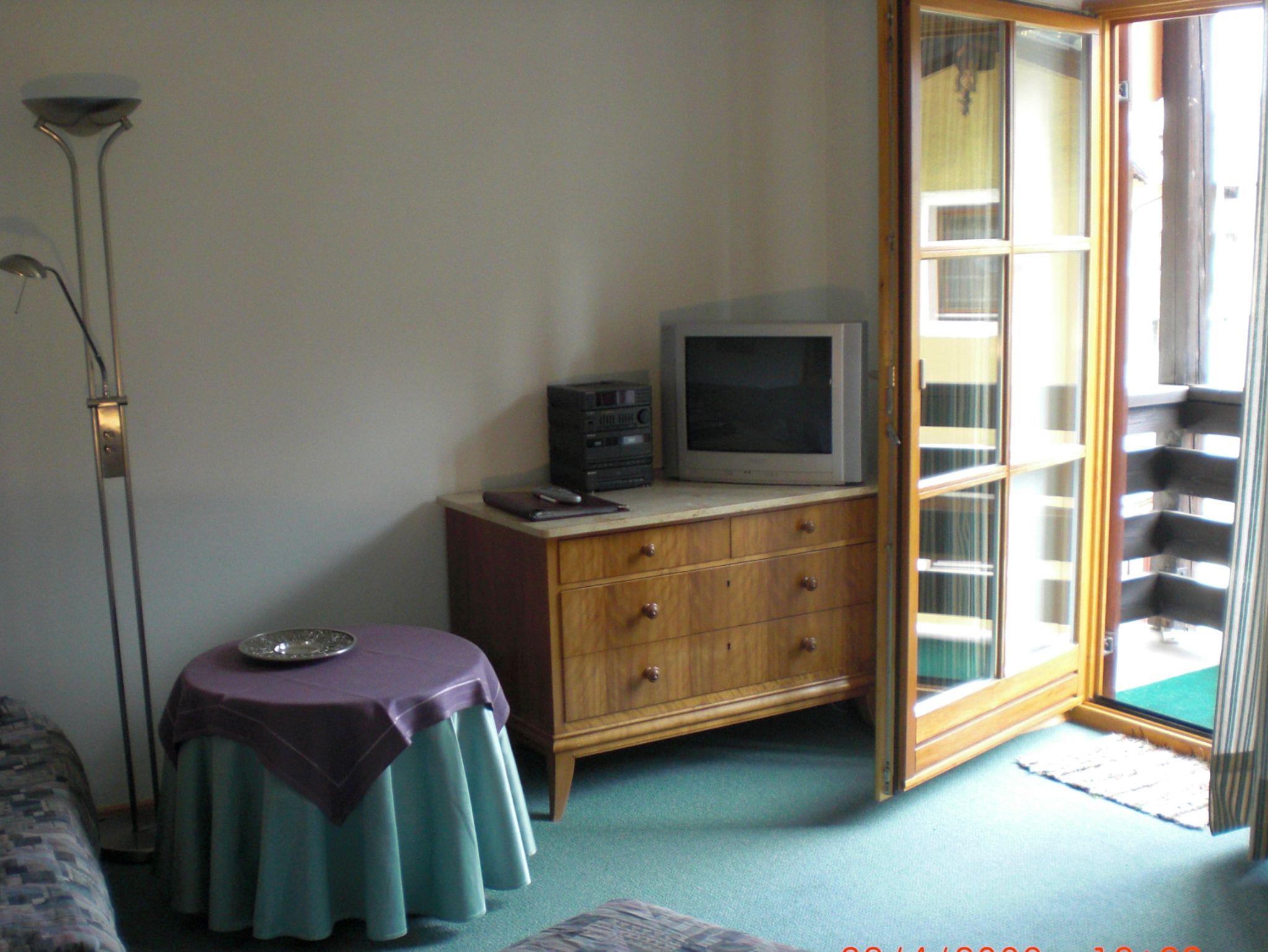 Helle, freundliche Nichtraucherzimmer (gesamt ca. 50qm): Wohnzimmer mit Balkon (ostseitig), eingerichtet mit Couchgarnitur, Esstischgarnitur, Kabel- TV/Radio, Schlafzimmer rückseitig (absolut ruhig) gelegen mit Doppelbett (Matratze aus Naturlatexschaumstoff) im rustikalen Stil. Kleine Küche mit 2-Platten Elektroherd, Kühlschrank mit Gefrierfach, Mikrowelle, Kaffeemaschine, Wasserkocher und Eierkocher, Bad mit WC und Duschkabine. Die beiden Wohnräume sind mit Teppichboden ausgelegt, die Küche hat einen Parkettfußboden und das Bad ist voll gefließt. Alle Zimmer sind über die zentrale, moderne Erdgasheizanlage thermostatgesteuert beheizbar. Kostenloses WLane vorhanden.