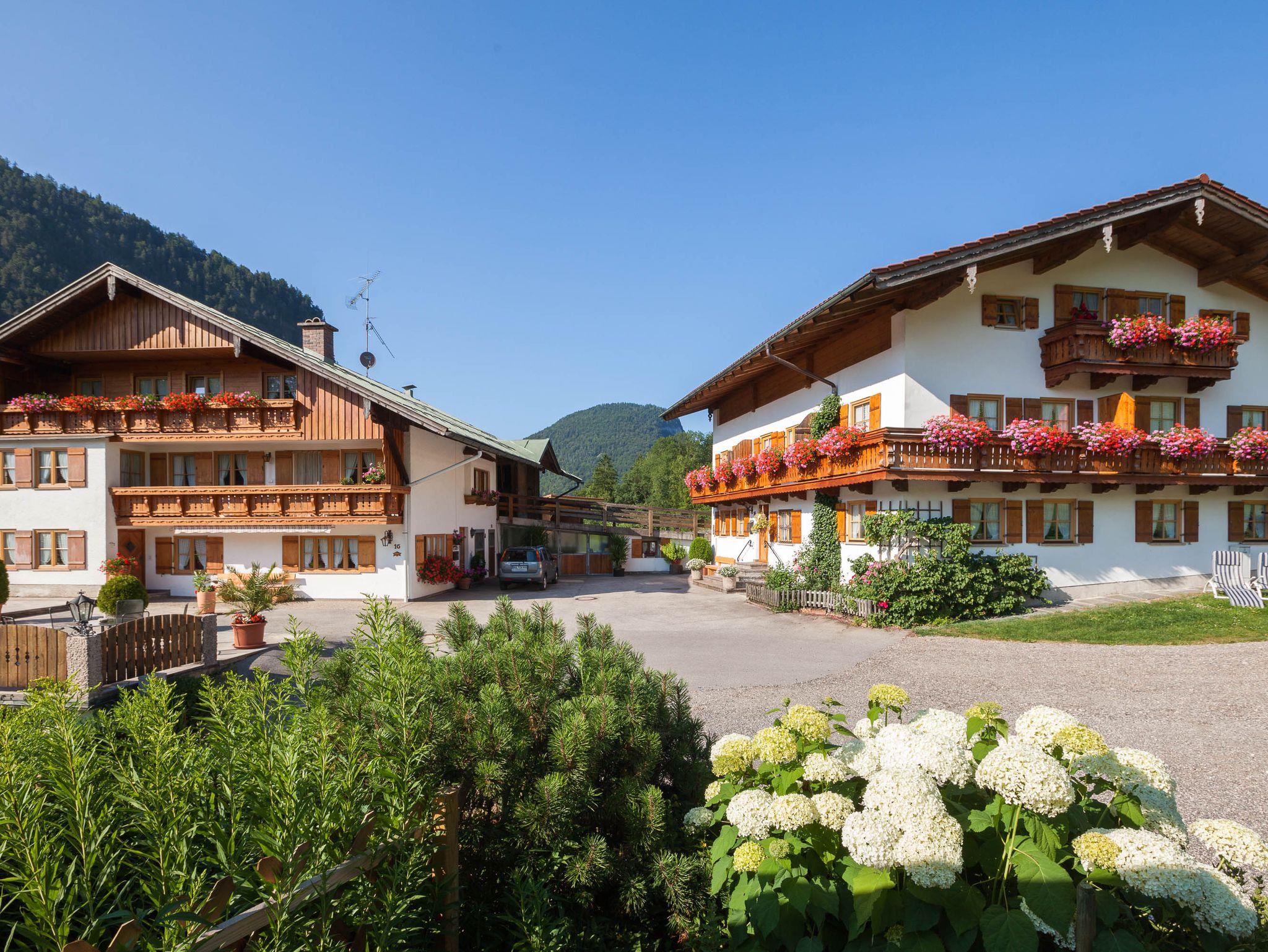Sehr gepflegter Bauernhof, in sonniger, ruhiger Alleinlage mit Blick zum Watzmann. Komfortable Ferienwohnung mit zwei Schlafzimmern mit SAT-TV , Separater Küche und Wohnzimmer ebenfalls mit SAT-TV, Rundum Balkon. Sonnenterrasse mit Freisitz und Parkplatz direkt am Haus. Unser Haus liegt auf 600 m Meereshöhe, schöne Wanderwege führen in unmittelbarer Nähe vorbei.