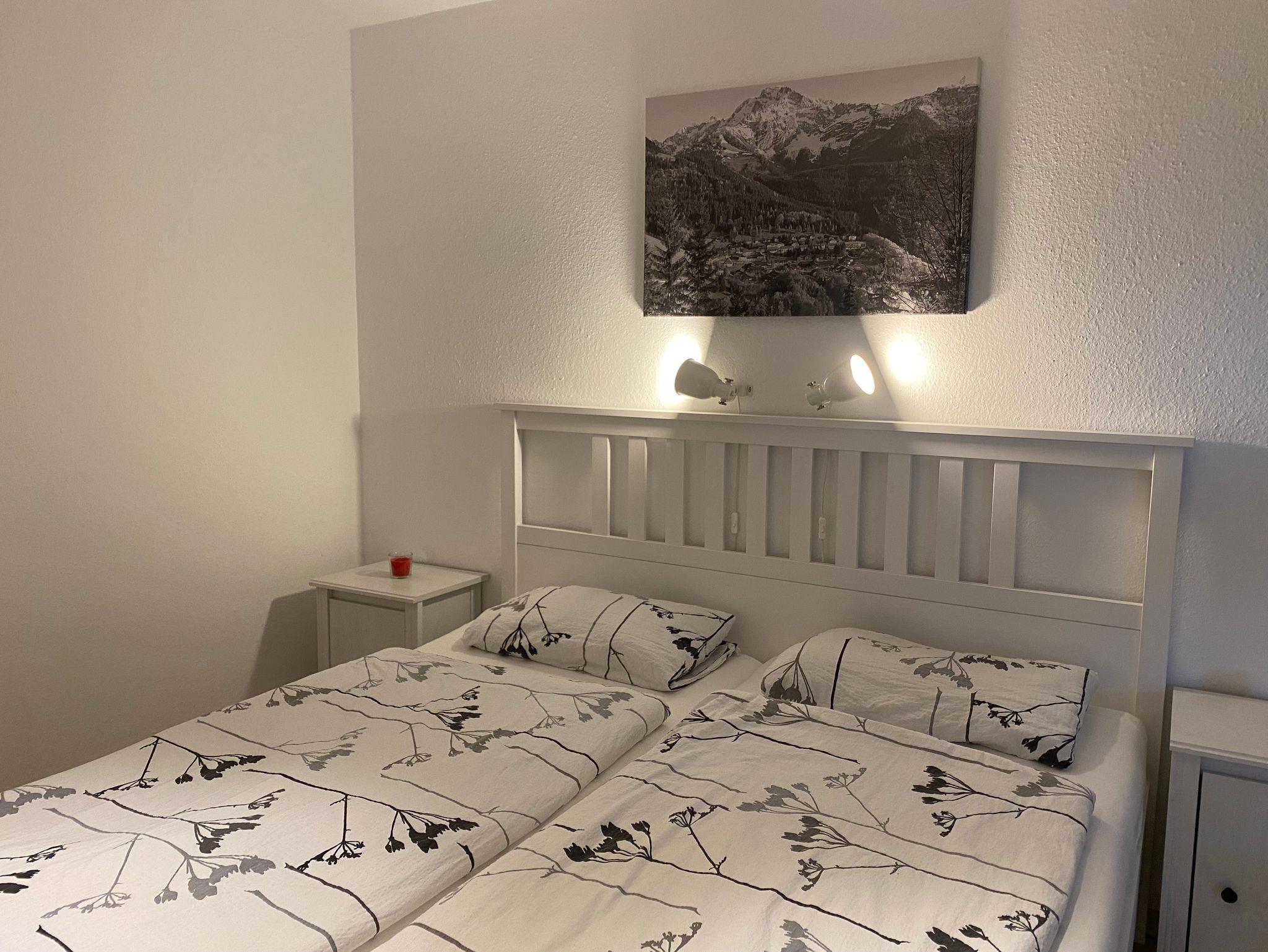 Unsere schöne Ferienwohnung befindet sich in einer kleinen Anlage( mit eigenem Parkplatz)auf der Buchenhöhe am Obersalzberg in ca. 1000 Meter Höhe .Die Ferienwohnung ist etwa 56 qm groß und hat einen Balkon mit herrlichem Ausblick auf die Bergeund eine große Terrasse mit Gartenanteil. Sie haben jeweils vom Schlafzimmer und Wohnzimmer Zugang auf die Terrasse. Die Terrasse ist mit einem Grill und Gartenmöbeln ausgestattet. Im Waschkeller befindet sich eine Waschmaschine.