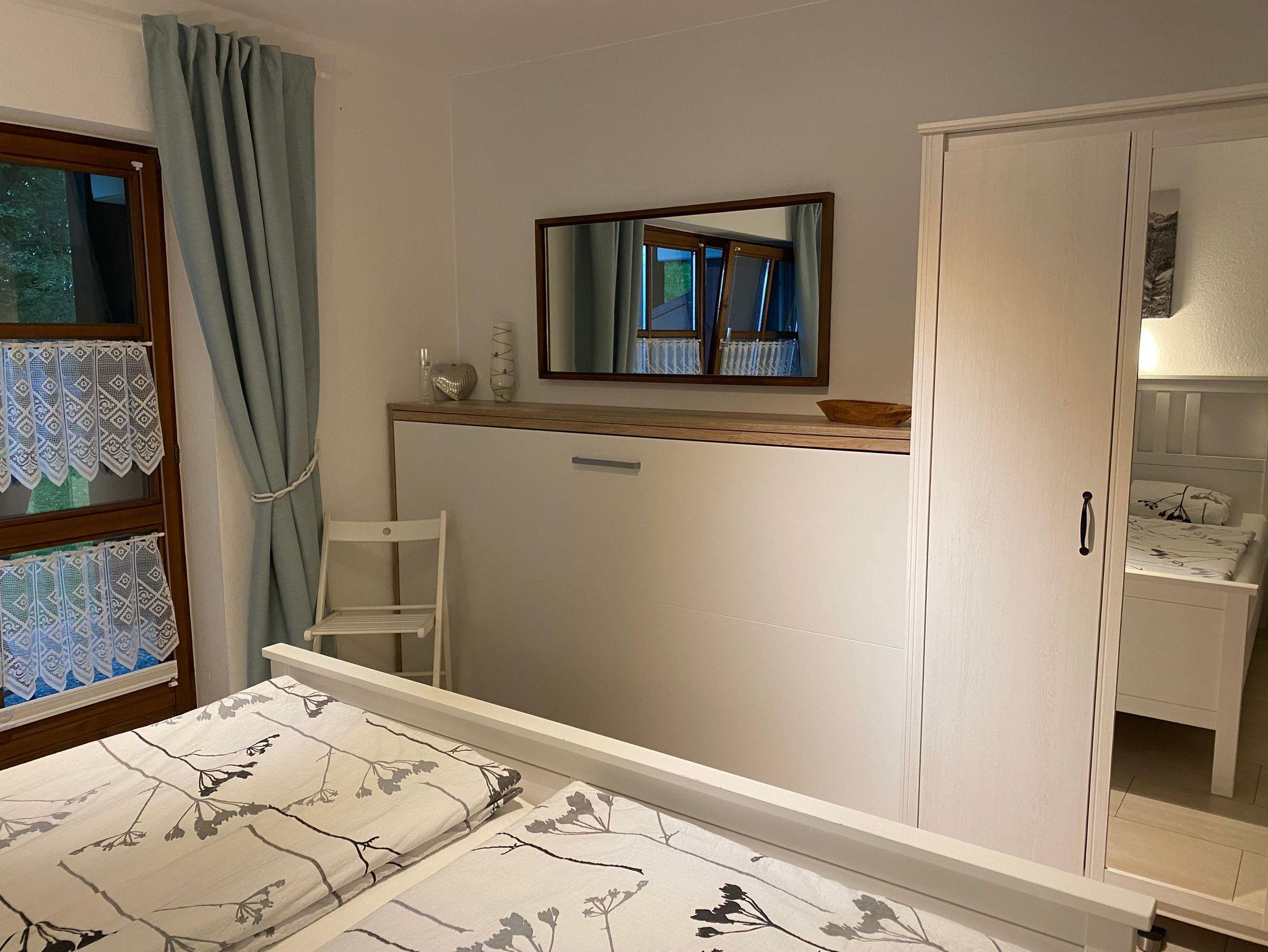In unserer Ferienwohnung steht 1 Schlafzimmer mit Doppelbett 180 cm x 200cm und einem Schrankbett. Im Wohnzimmer befindet sich eine großzügige Eckbank und einem Schlafsofa für 2 Personen In der Schrankwand steht ein Flachbildfernseher, DVD -Player, Radio, Brettspiele, Bücher Wandermaterial und Geschirr.Im Badezimmer haben wir eine Badewanne inklusiv Handtücher.Für unseren kleinen Gäste stellen wir Ihnen ein Babybett und 1 Kinder zur Verfügung. In der ganzen Unterkunft stellen wir Ihnen kostenloses Wlan zur Verfügung.
