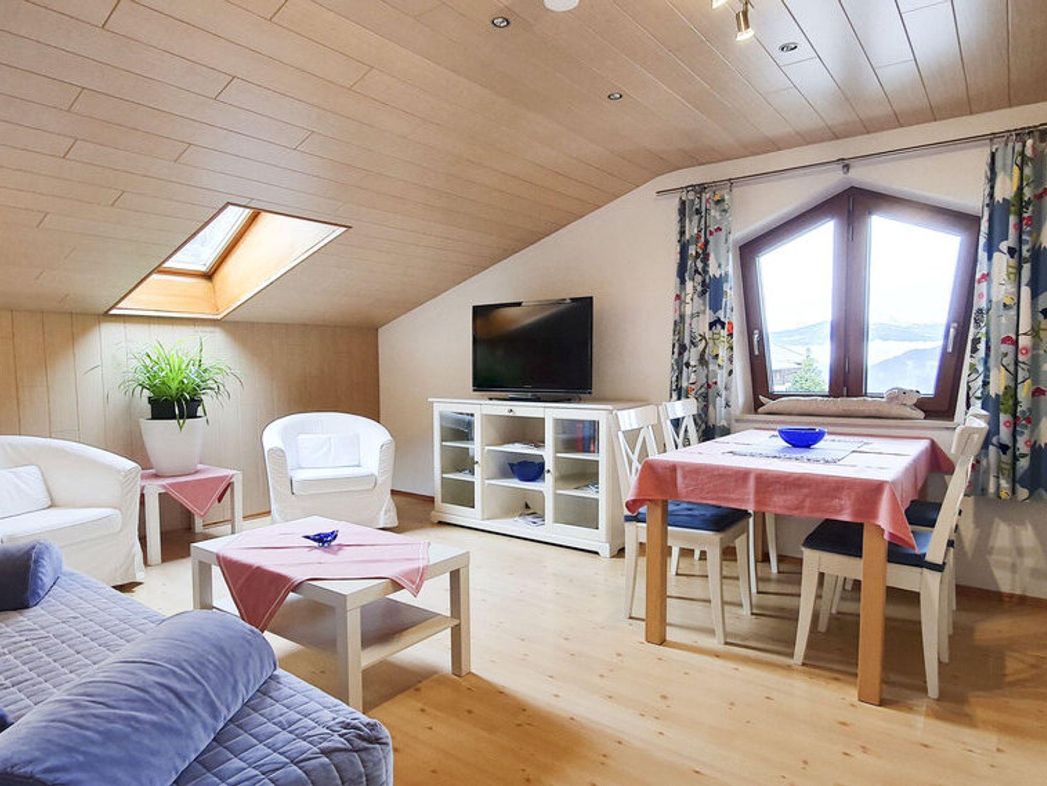 Unserer gemütlichen Mansardenwohnung, bestehend aus einem kleinen Vorraum, Schlafzimmer mit Ehebett, 2 Nachtkästchen, Kleiderschrank. Badezimmer mit Badewanne, Waschbecken und WC. Wohnschlafzimmer mit Doppelbett, Schlafcouch, Essplatz, SAT-TV, Küche mit Kaffeemaschine, Toaster und Herd. Sie haben hier einen wunderschönen Ausblick auf die Berchtesgadener Berge. Es besteht die Möglichkeit, auf Anfrage, ein Babybett und ein Hochstuhl in die Ferienwohnung zustellen. Die Wohnung ist ca. 50 m² groß und bietet Platz für 2 bis 4 Personen.