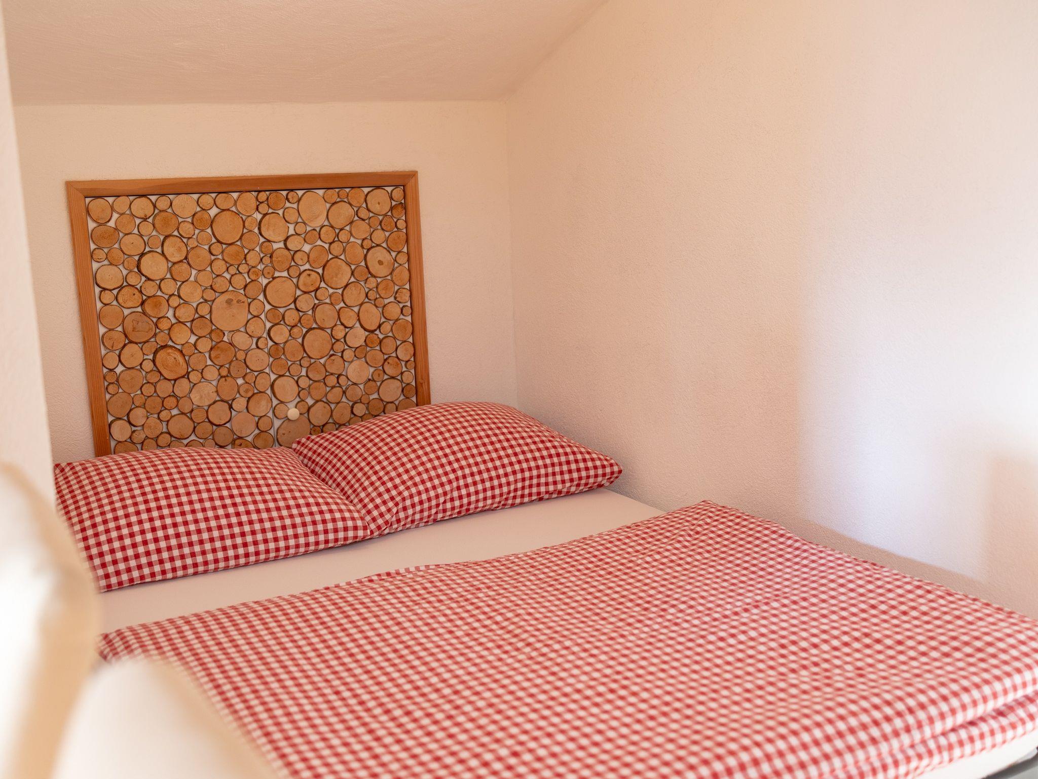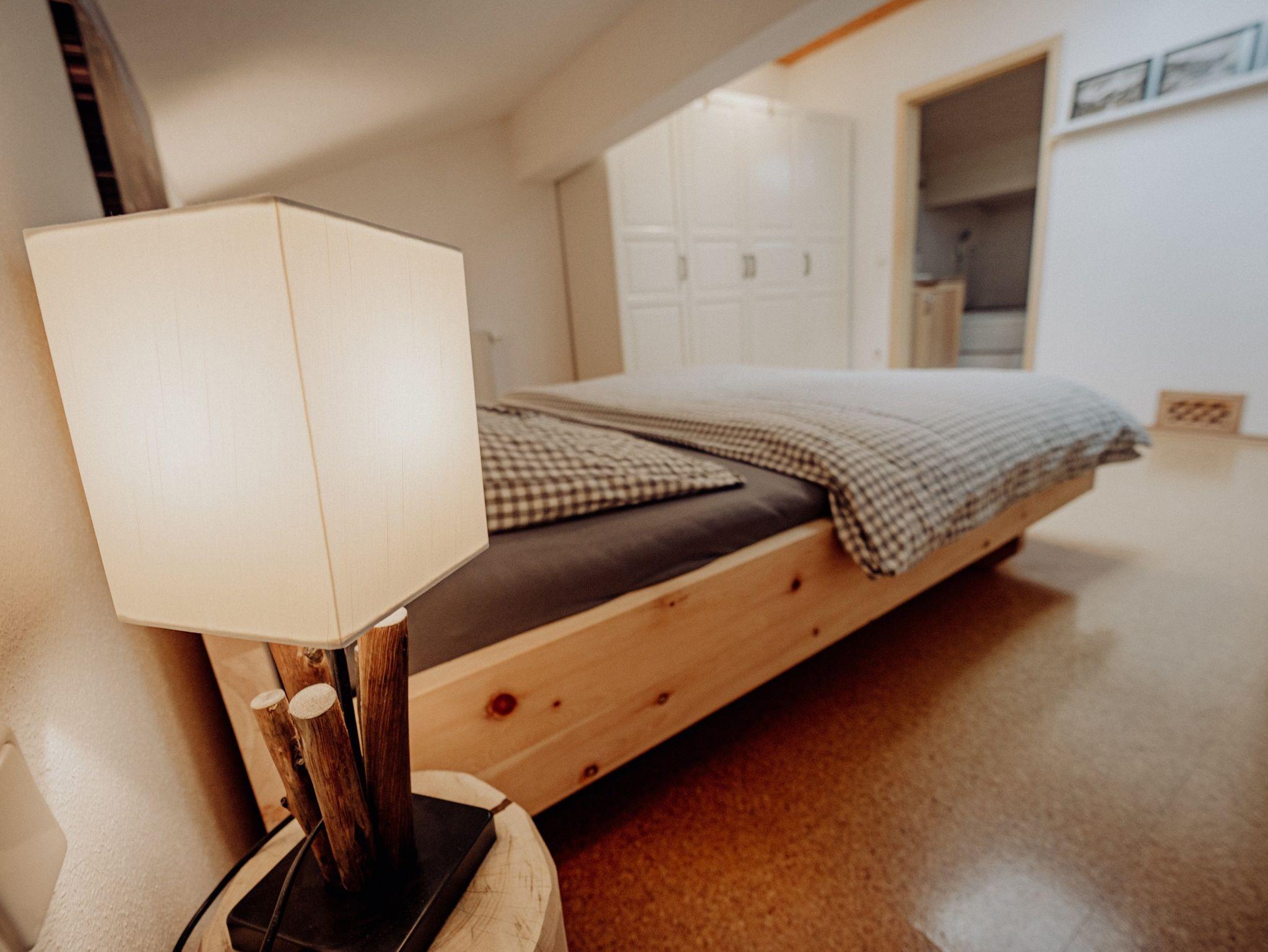 Sie bietet ein geräumiges Schlafzimmer mit traumhaften Zirbenholzbett für besonders erholsamen Schlaf.