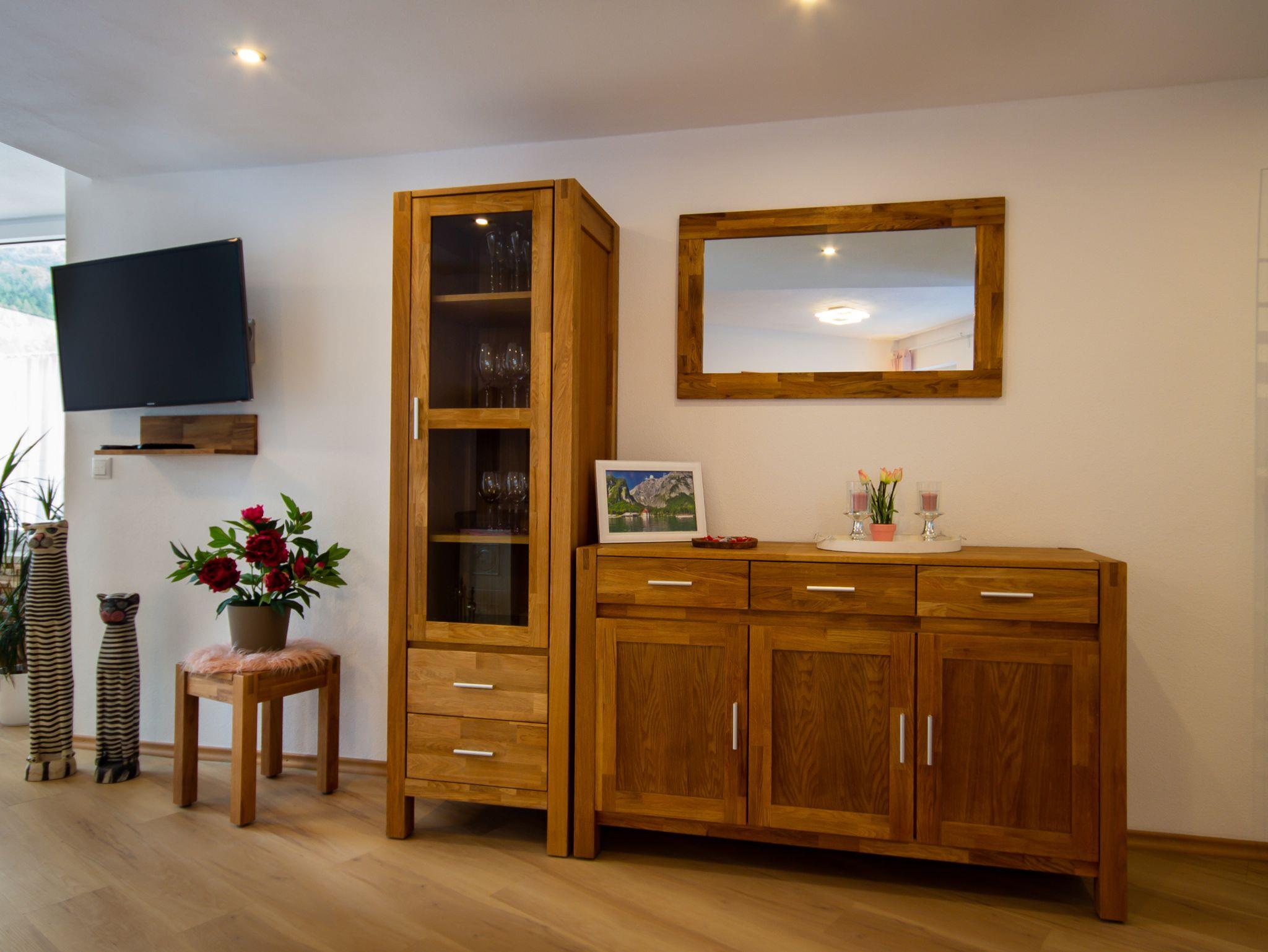 Unsere modern eingerichtete Wohnung für 2 bis 4 Personen, verfügt über einen geräumigen Wohn- und Essbereich mit Kaminofen und einem herrlichen Ausblick auf den Kehlstein, einer separaten, großzügigen Küche, ausgestattet mit einer Kochinsel, Barhocker und mit allem was für eine Küche dazu gehört.Die zwei gemütlichen Schlafzimmer, mit handgefertigten Boxspringbetten sorgen für erholsame Nächte.Das moderne Tageslichtbadezimmer, kombiniert mit begehbarer Dusche und Badewanne ist ausgestattet mit Handtüchern und einem Haartrockner.Zusätzliche Ausstattung der Ferienwohnung: Fußbodenheizung in der gesamten Wohnung. Alle Fenster sind mit elektrischen Rollos versehen. Über einen Gastzugang kann das W-LAN genutzt werden. Die Wohnung ist ebenerdig. (Von Garage, Wohnbereich bis hin zum Badezimmer) Wohn- und Schlafräume sind mit Flachbild-TV und DVD ausgestattet. Babybett und Hochstuhl stehen auf Anfrage zur Verfügung.