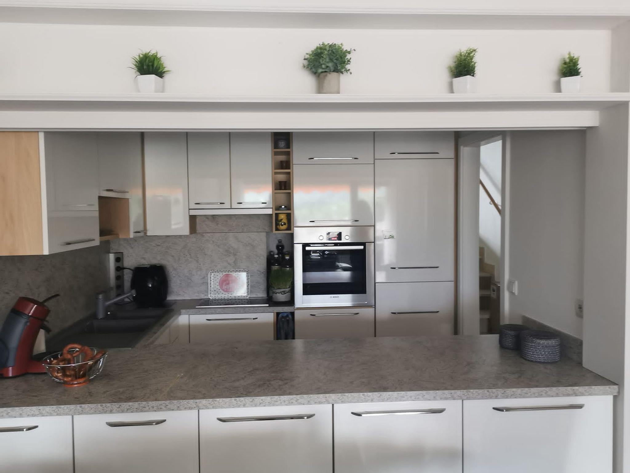 Sie ist geeignet für 4 Personen (2 davon auf einem Schlafsofa).Das offene Wohnzimmer ist kombiniert mit dem Essbereich.