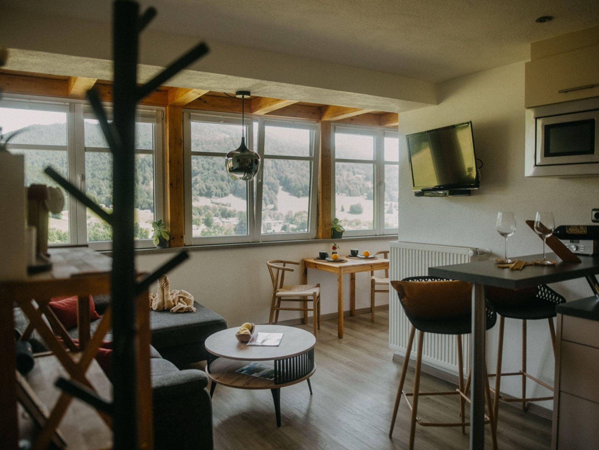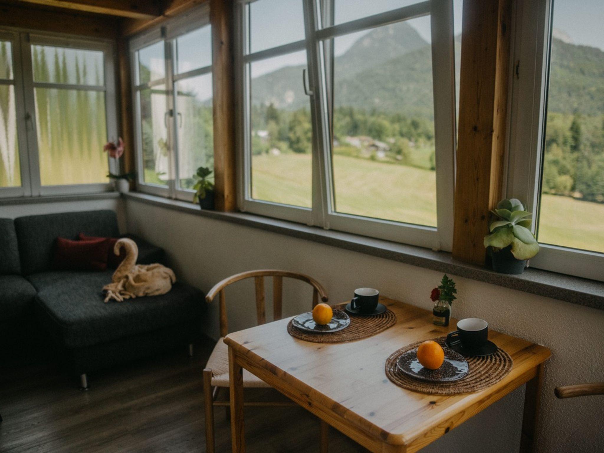 Unsere beiden Ferienwohnungen bieten Ihnen einen atemberaubenden Blick auf die umliegenden Berge und Wiesen – ein wahrer Augenschmaus, der Sie jeden Tag aufs Neue verzaubern wird. Die 80 m² große, private Terrasse lädt dazu ein, die frische Bergluft zu genießen, während Sie entspannen und die Natur um sich herum auf sich wirken lassen. Ob beim Frühstück in der Morgensonne oder beim abendlichen Glas Wein unter dem Sternenhimmel – hier wird jeder Moment zum besonderen Erlebnis.