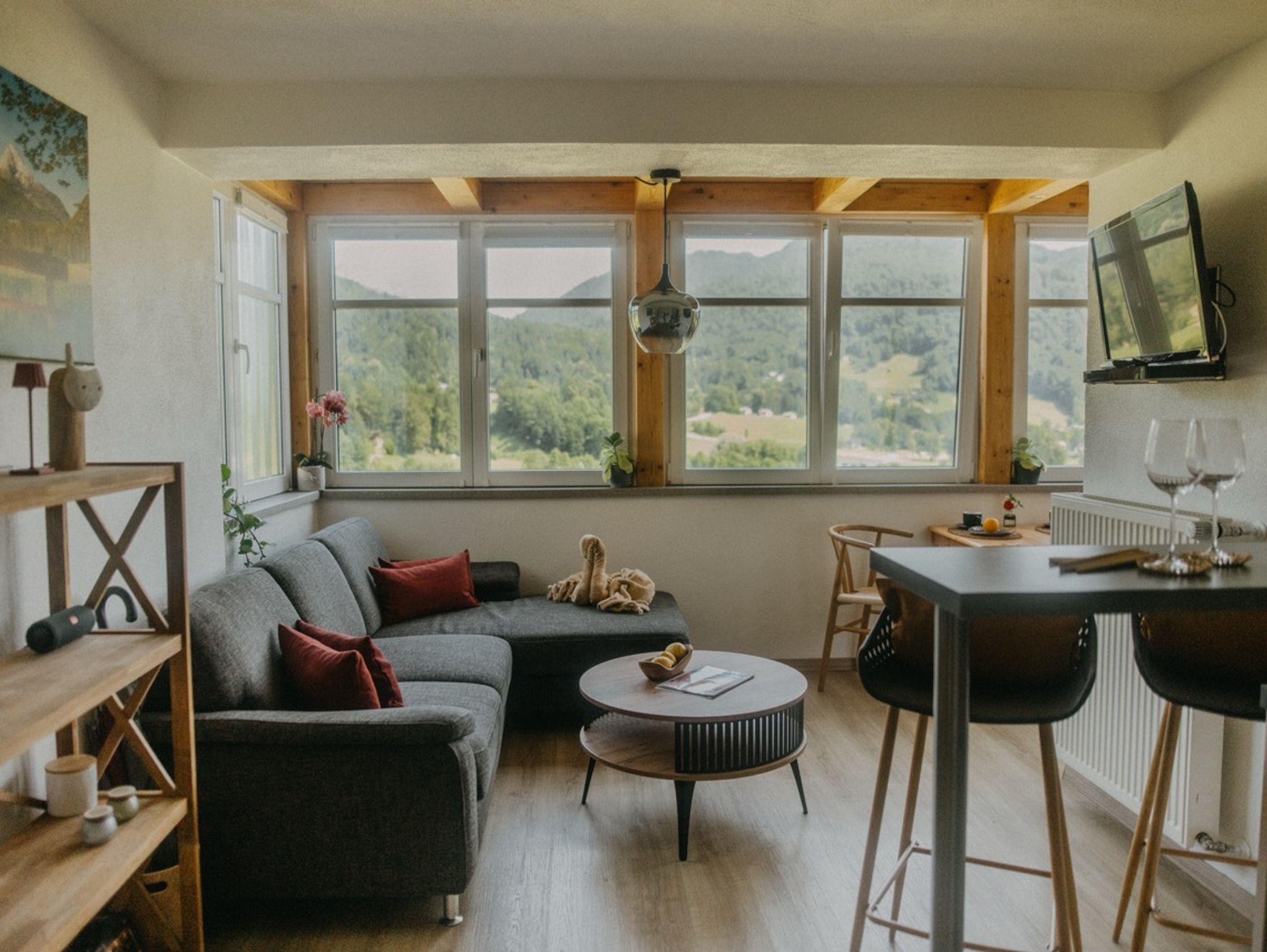 Unsere helle und freundliche Ferienwohnung wurde 2024 neu eingerichtet und liegt in ruhiger, zentraler Lage über dem Markt Berchtesgaden. Von Ihr aus haben sie einen sagenhaften Blick auf die umliegenden Berge und Wiesen.Das Wohnzimmer ist mit dem Wintergarten verbunden.Moderne, hochwertig und funktionale Ausstattung u.a. mit LED-TV und W-Lan.